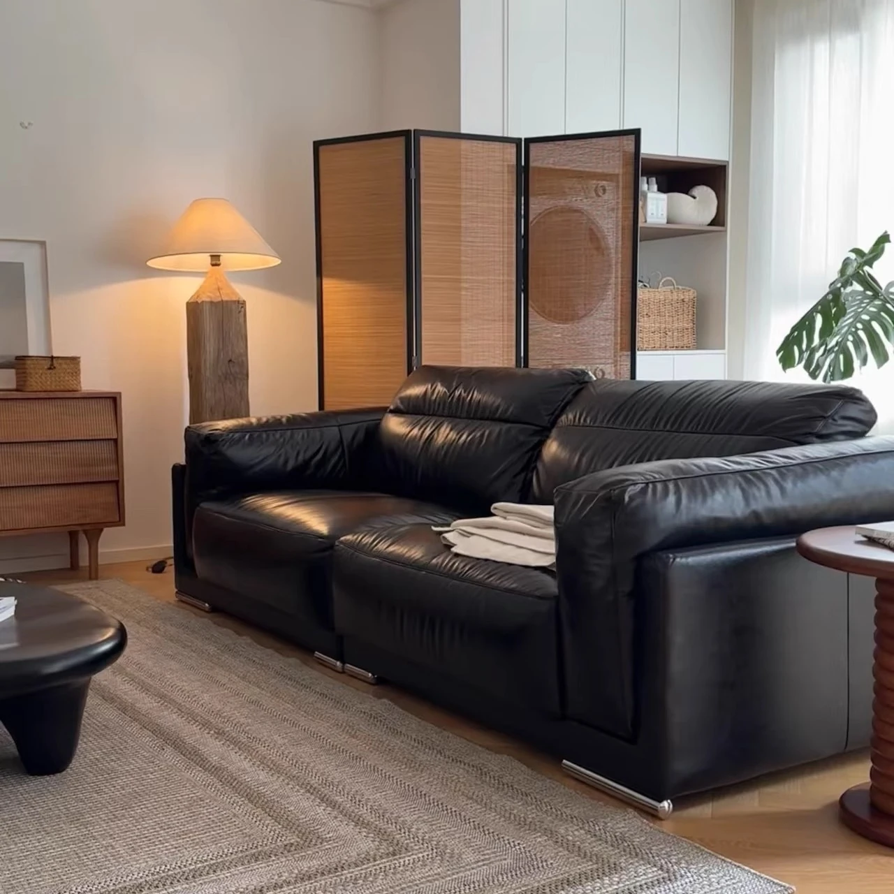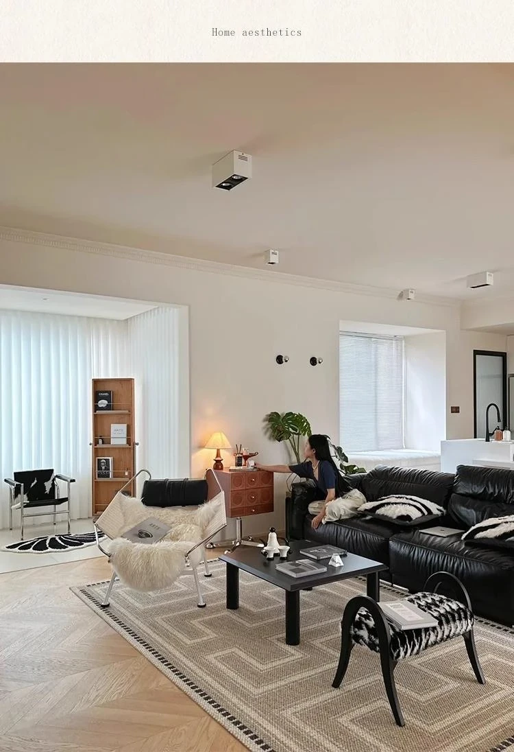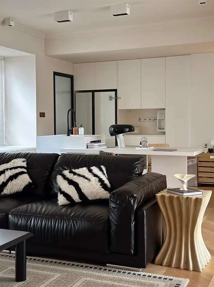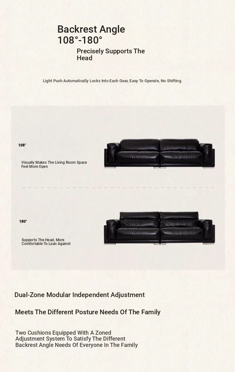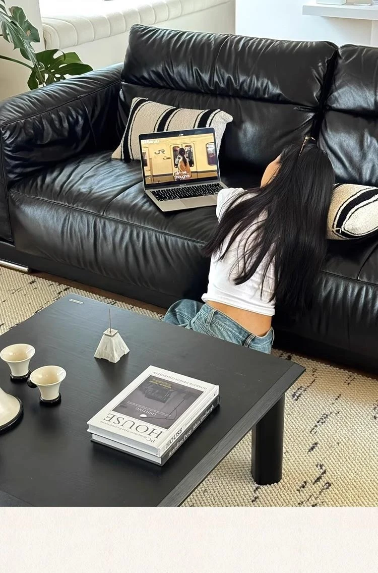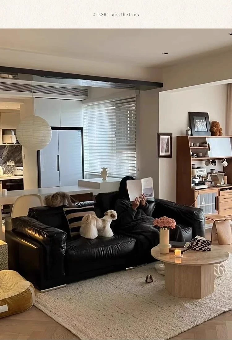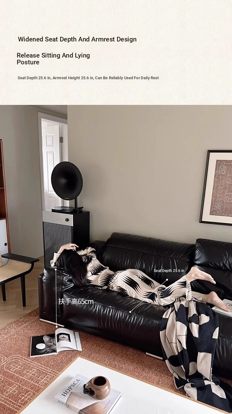 Vintage Black Obsidian Leather Sofa Set - Adjustable Duck Down Combination in Retro Style with Waxed Black Leather for Your Living Room
