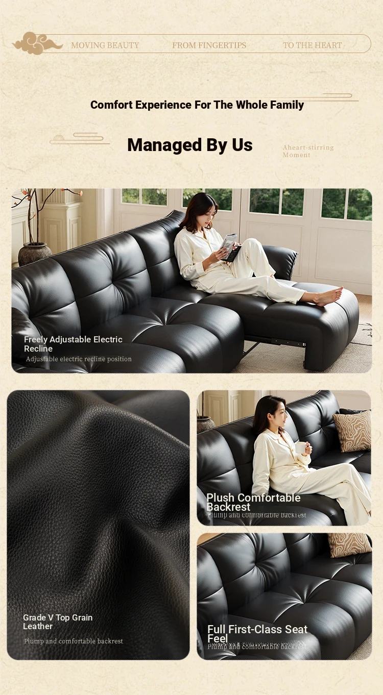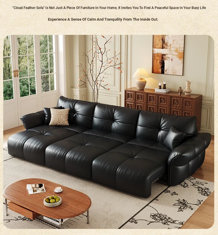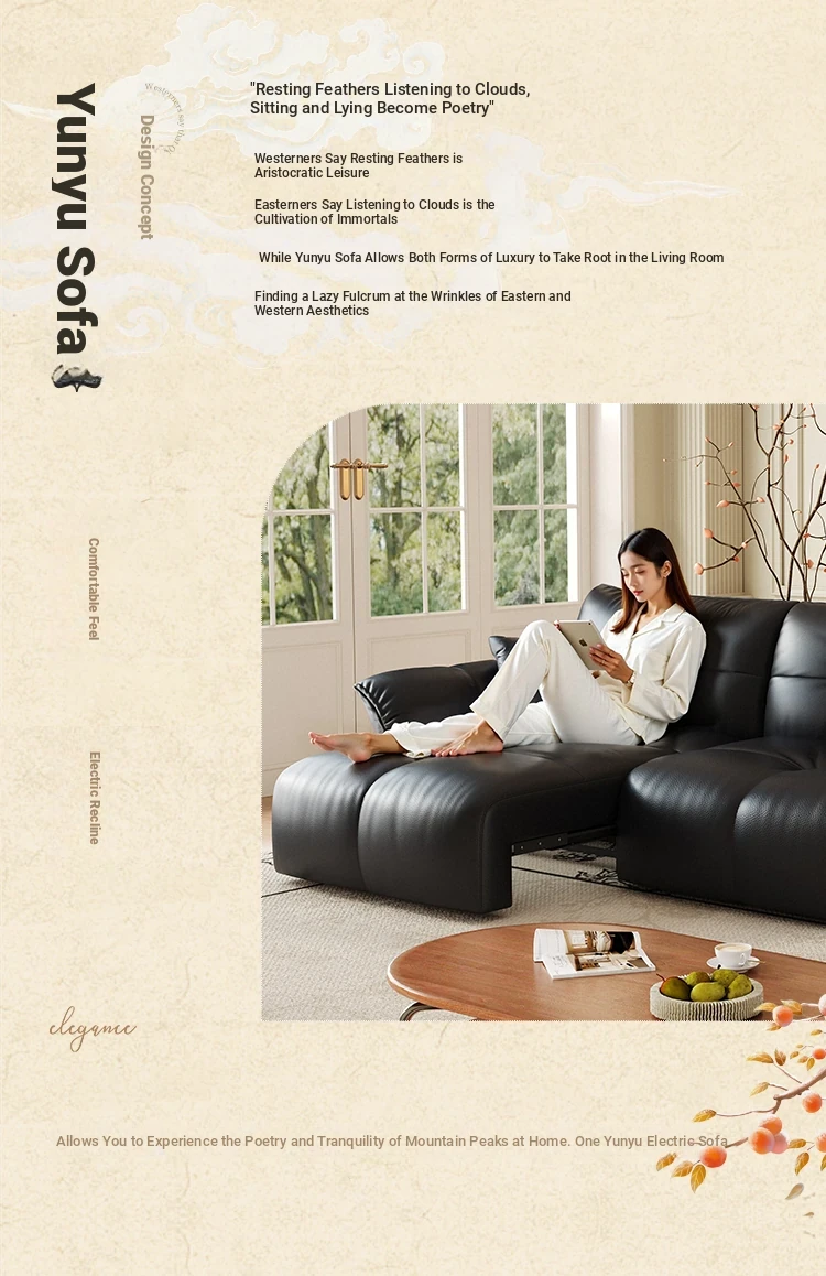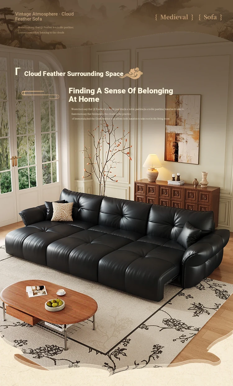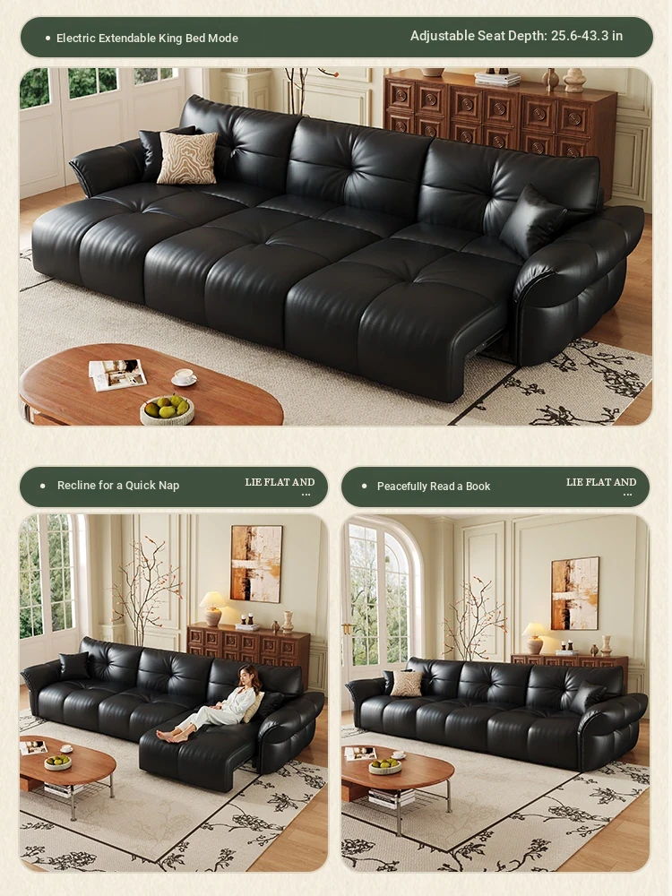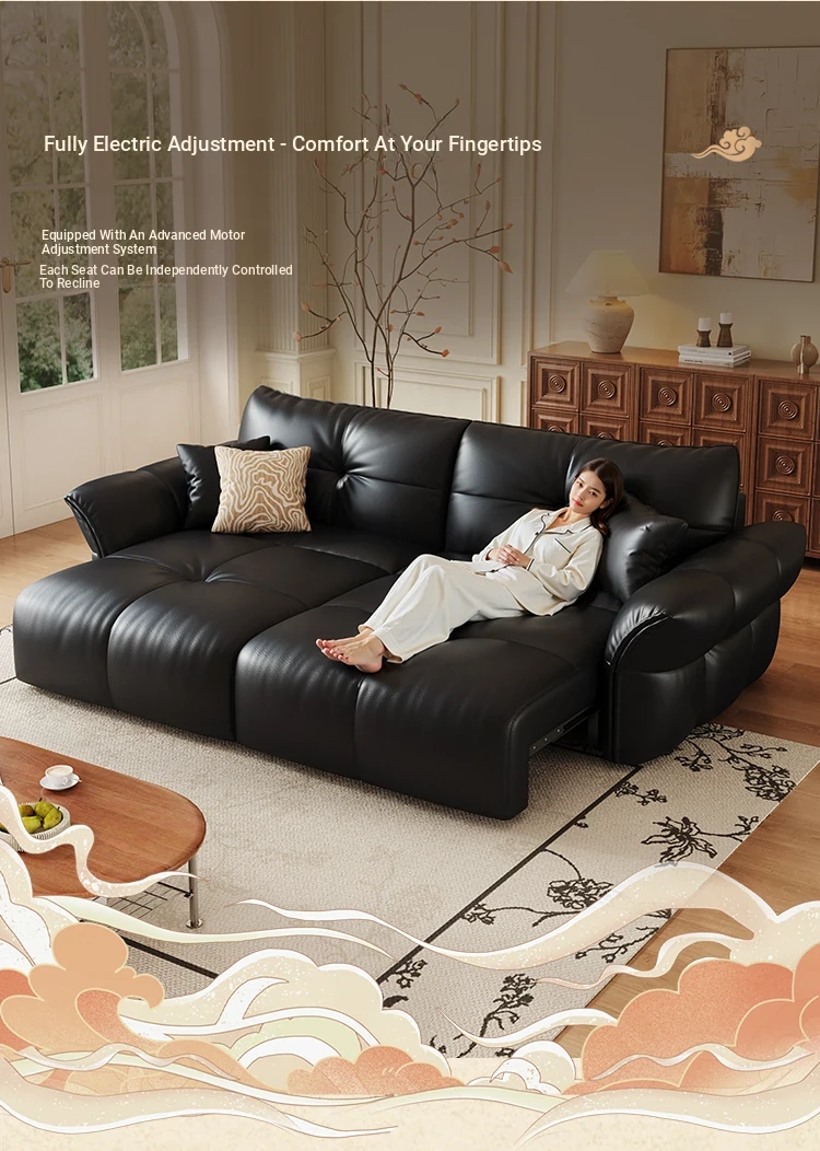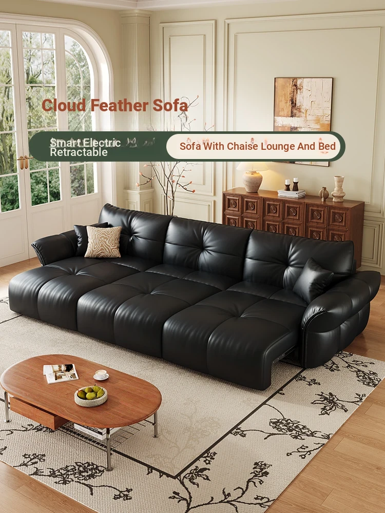 Yunting Cloud Feather Top-Grain Leather Electric Sofa - Vintage Multi-Functional Adjustable Sofa Bed for Living Room & Study