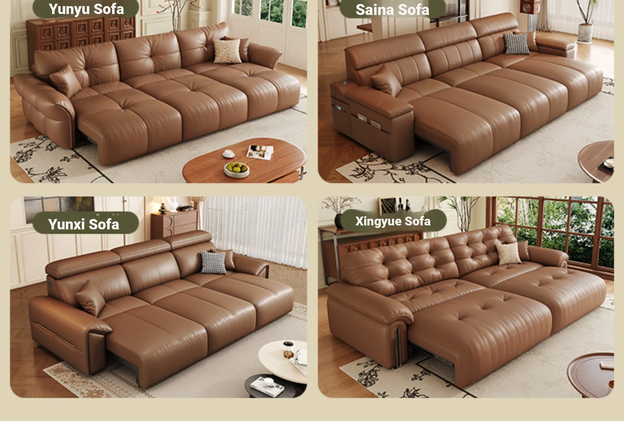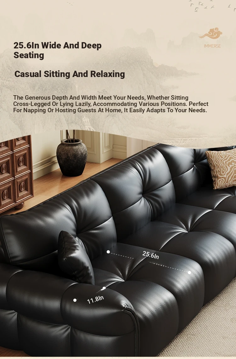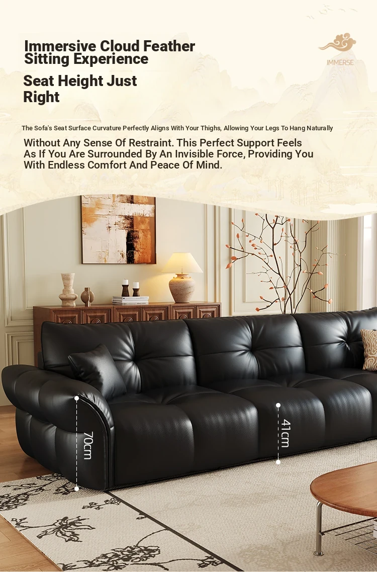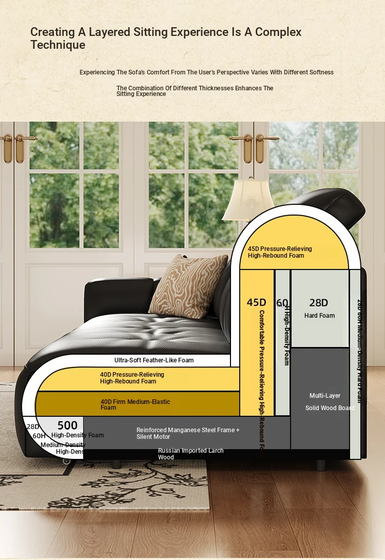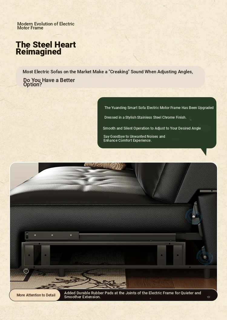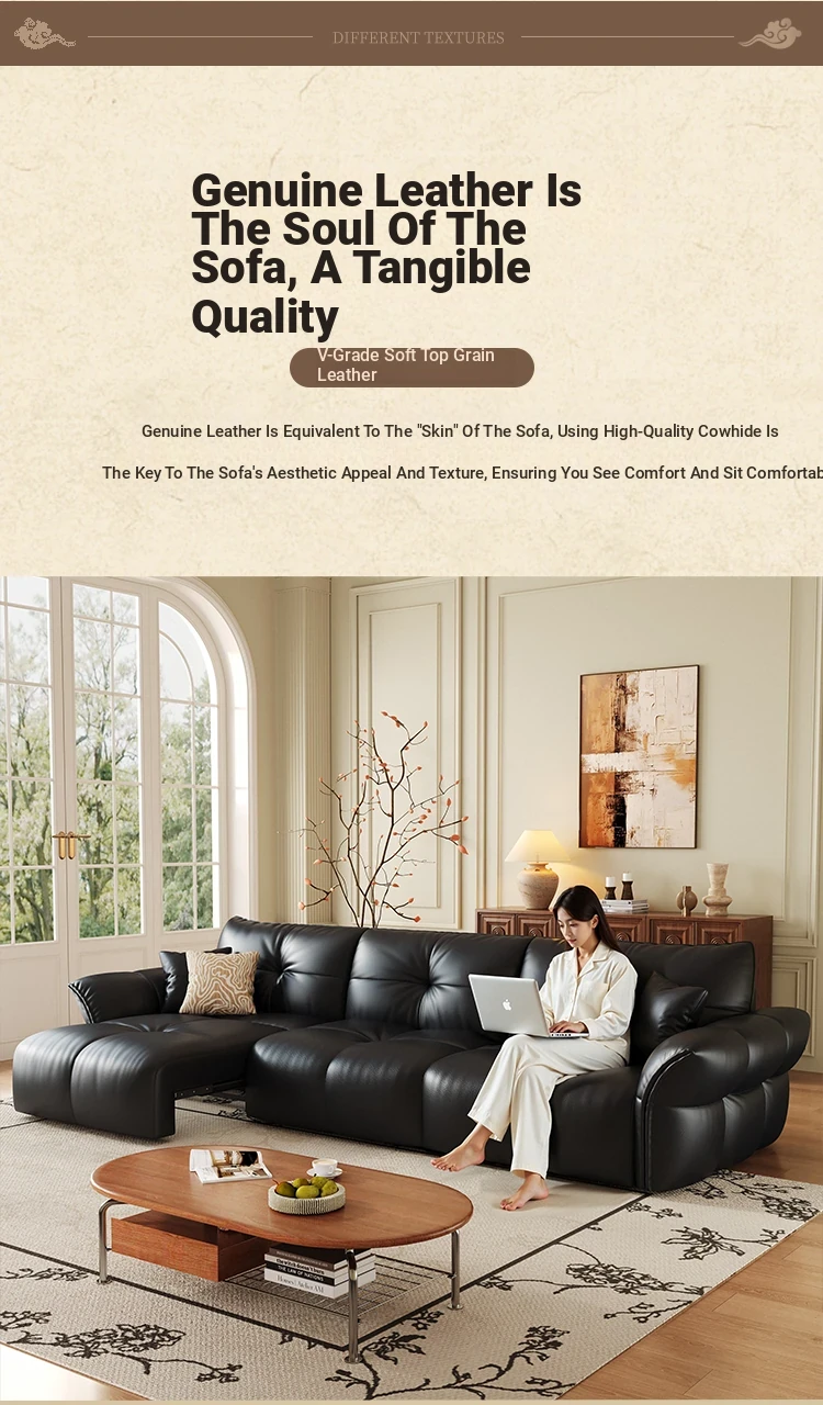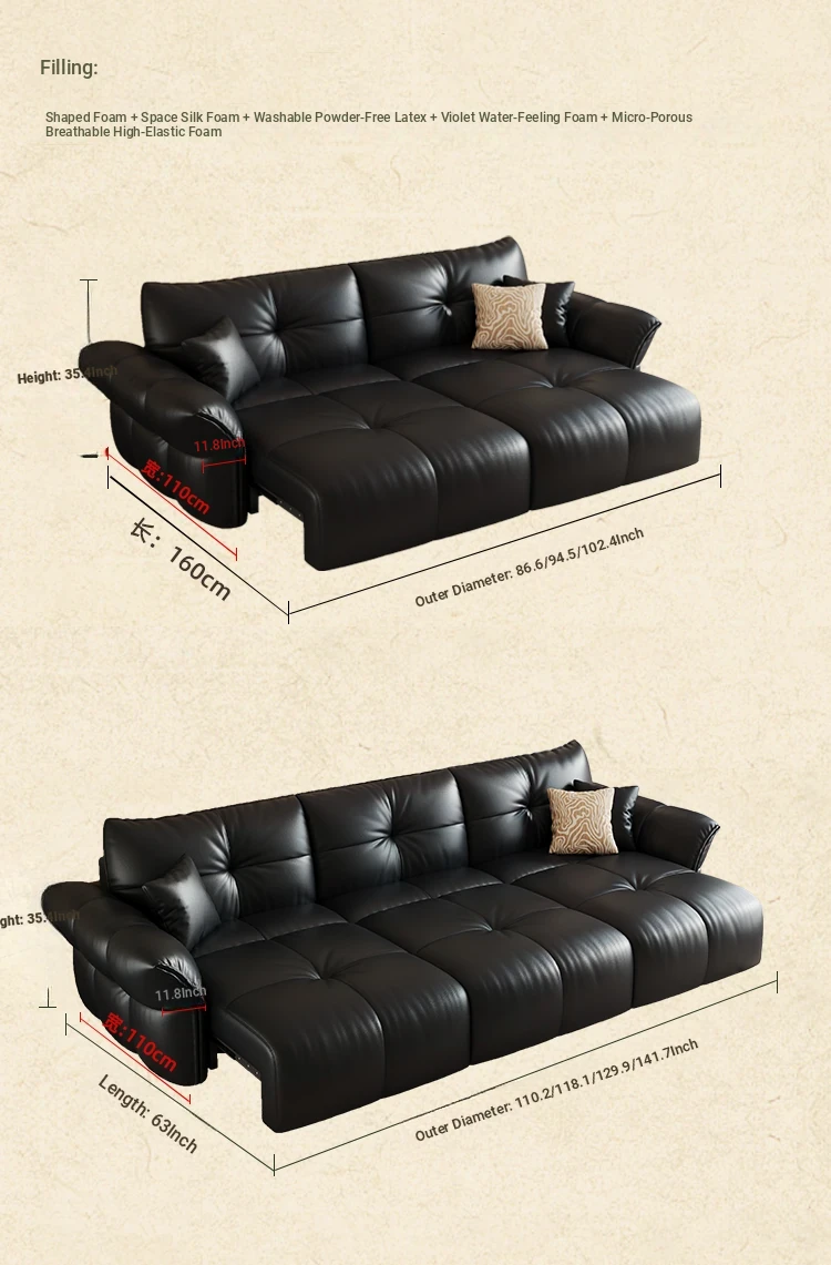 Yunting Cloud Feather Top-Grain Leather Electric Sofa - Vintage Multi-Functional Adjustable Sofa Bed for Living Room & Study