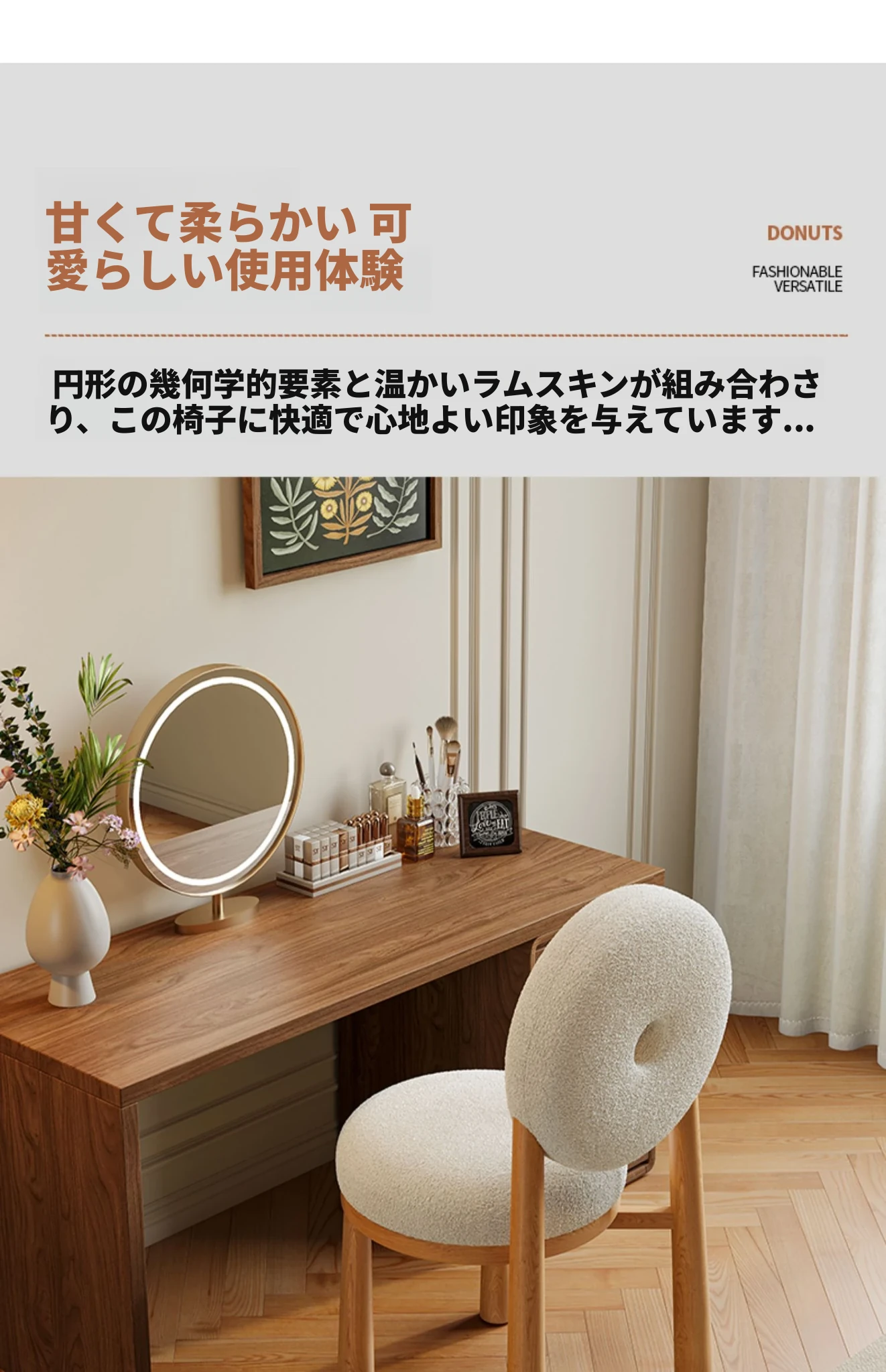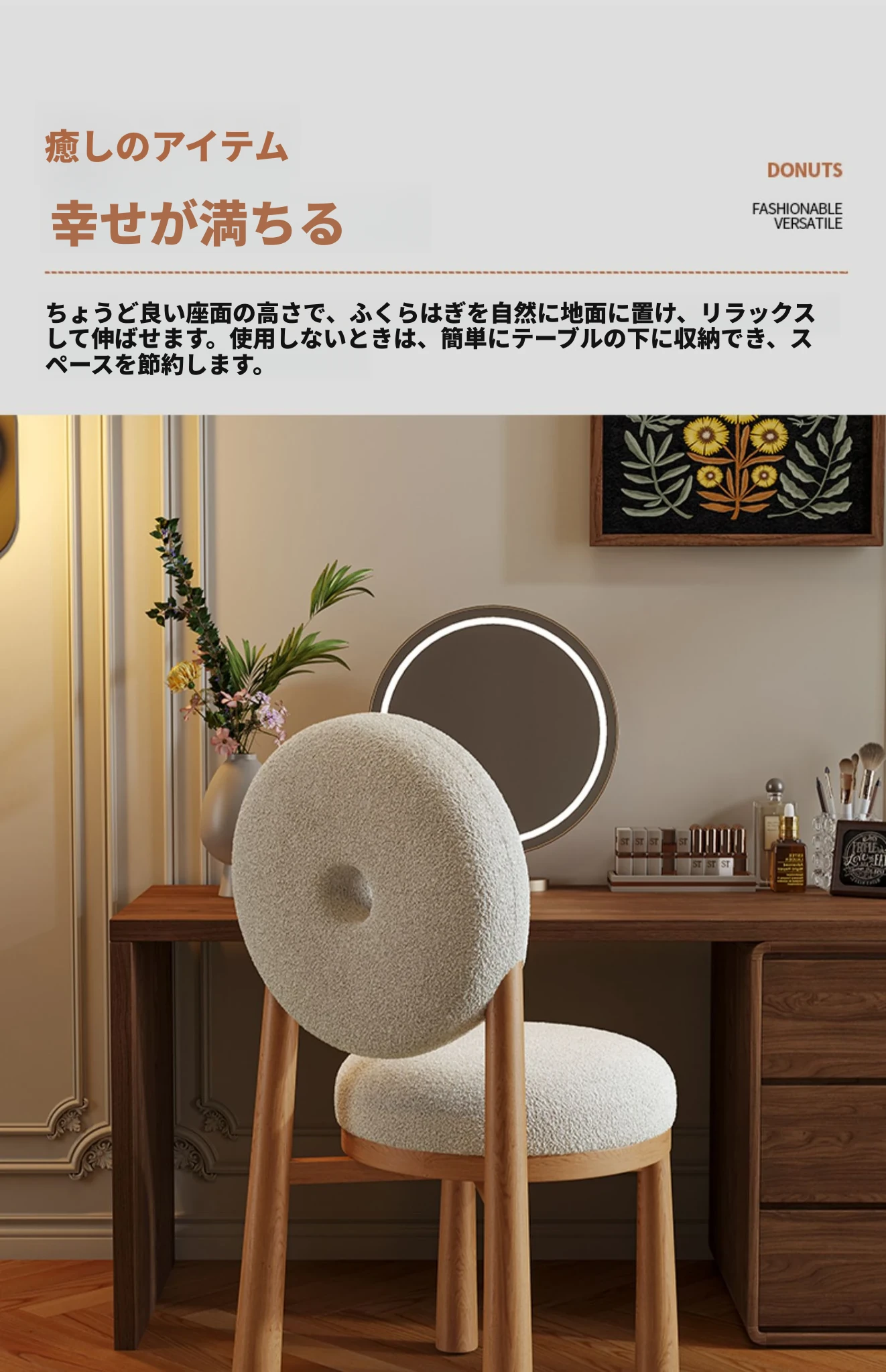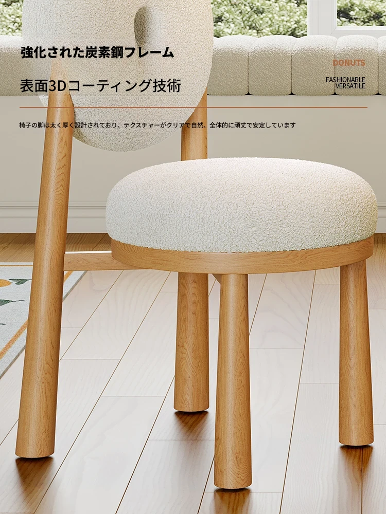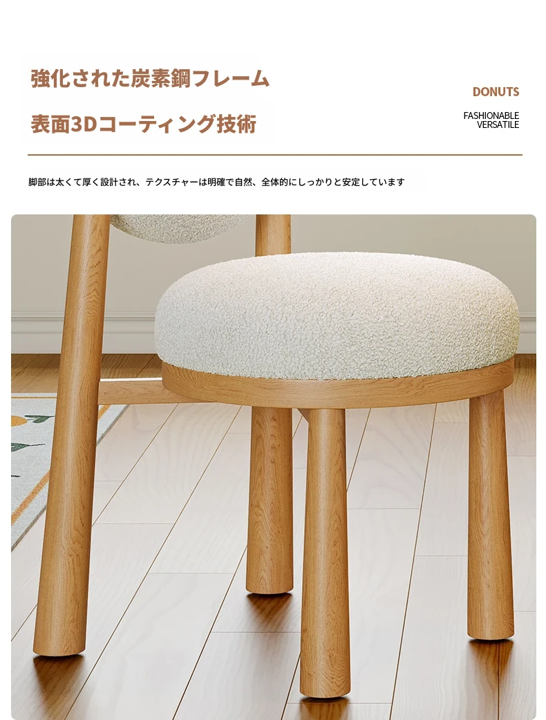 クリーム風のラムファー化粧スツール 2024年新モデル!女性のための寝室用ドレッサーチェア、衣装部屋にもぴったりなスタイリッシュなデザインで、毎日のメイクアップを楽しく!