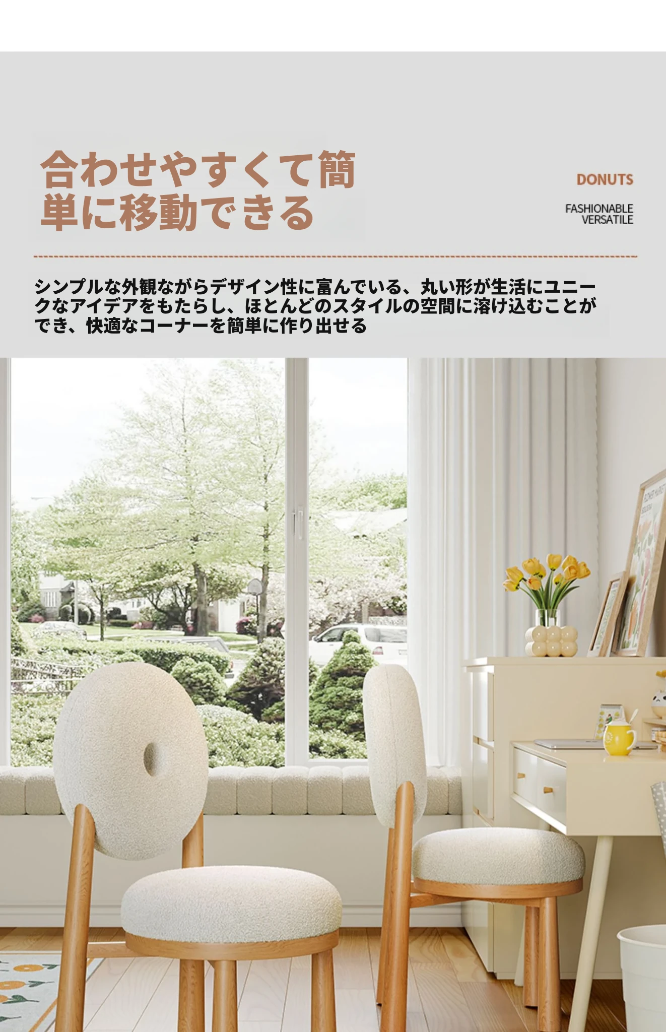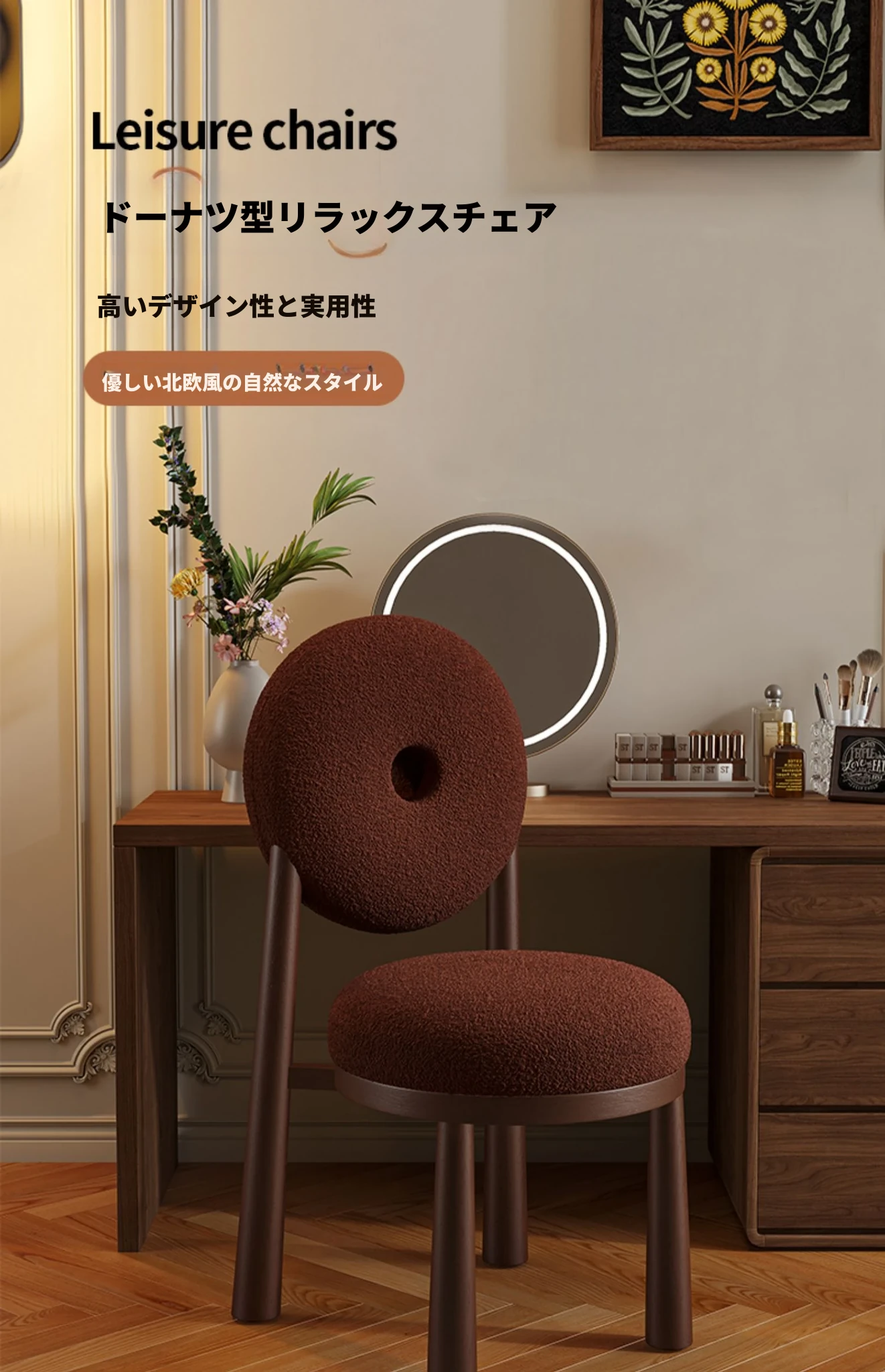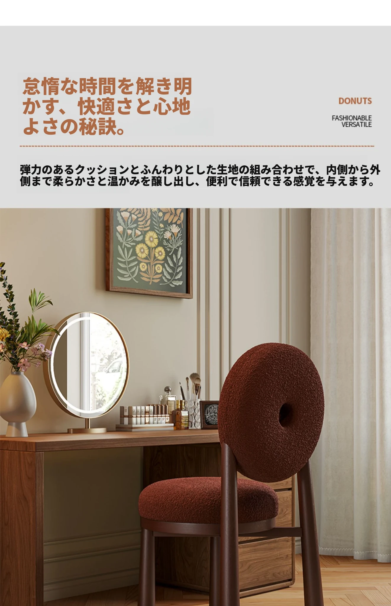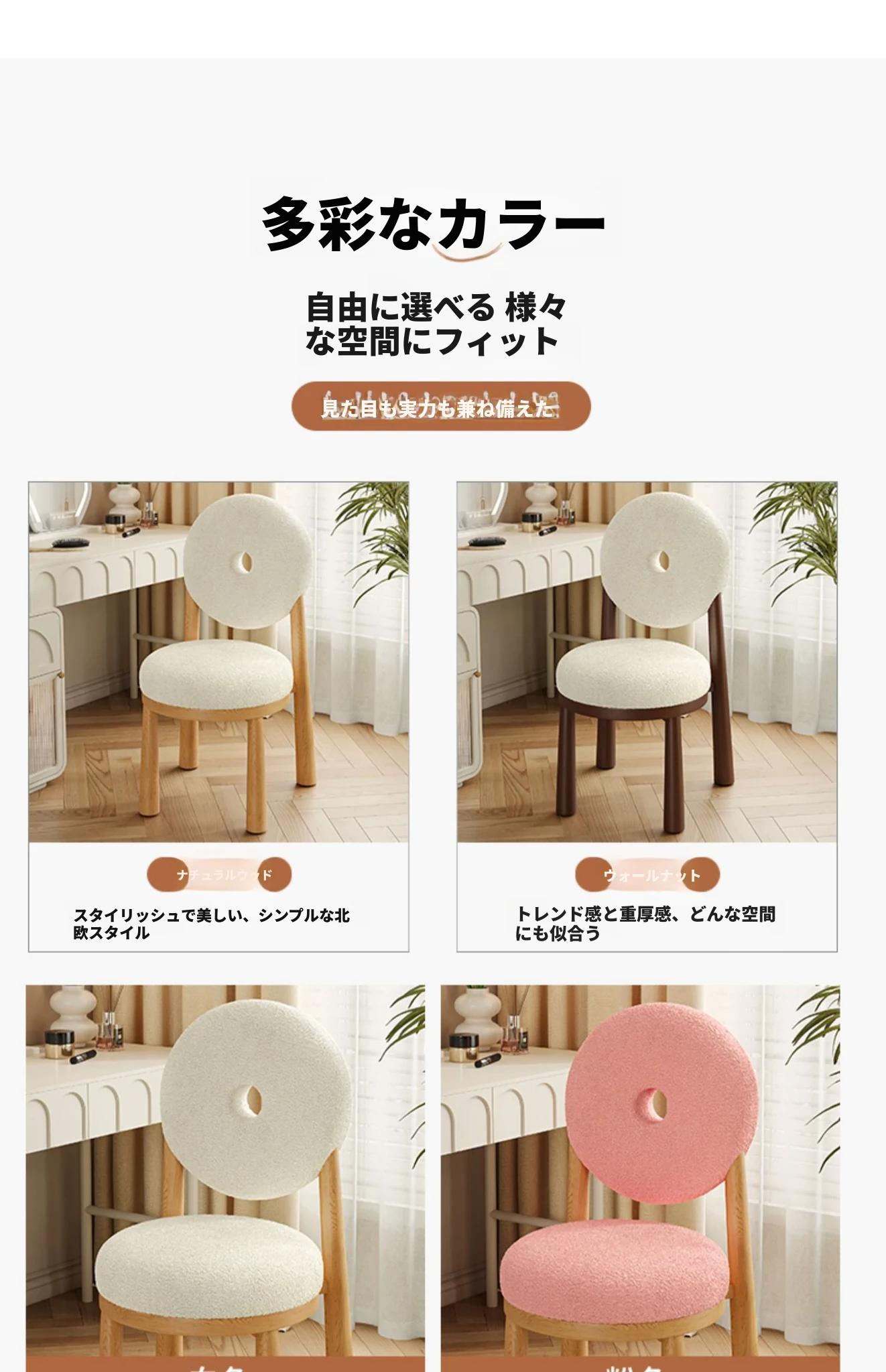 クリーム風のラムファー化粧スツール 2024年新モデル!女性のための寝室用ドレッサーチェア、衣装部屋にもぴったりなスタイリッシュなデザインで、毎日のメイクアップを楽しく!