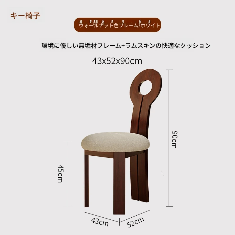 胡桃色|キー椅子【白色ラムフェルトクッション】FAS全実木フレーム