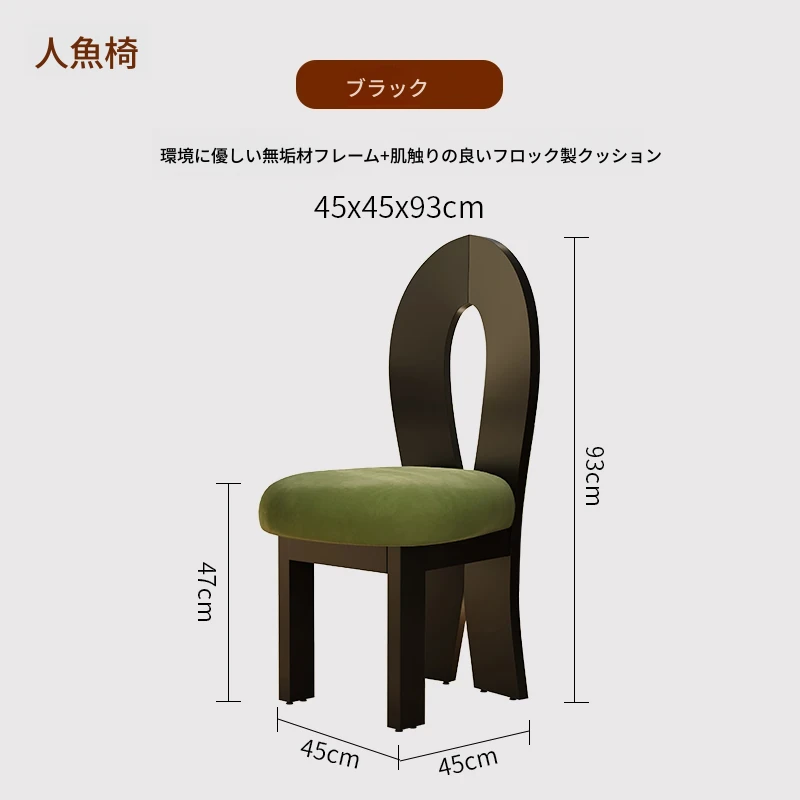 黒色|人魚椅子【緑色ベルベットクッション】FAS全実木フレーム