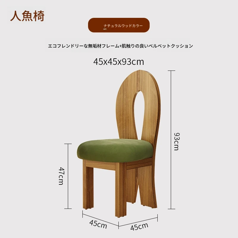 ナチュラル色|人魚椅子【緑色ベルベットクッション】FAS全実木フレーム