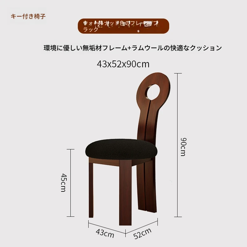 胡桃色|キー椅子【黒色ラムフェルトクッション】FAS全実木フレーム