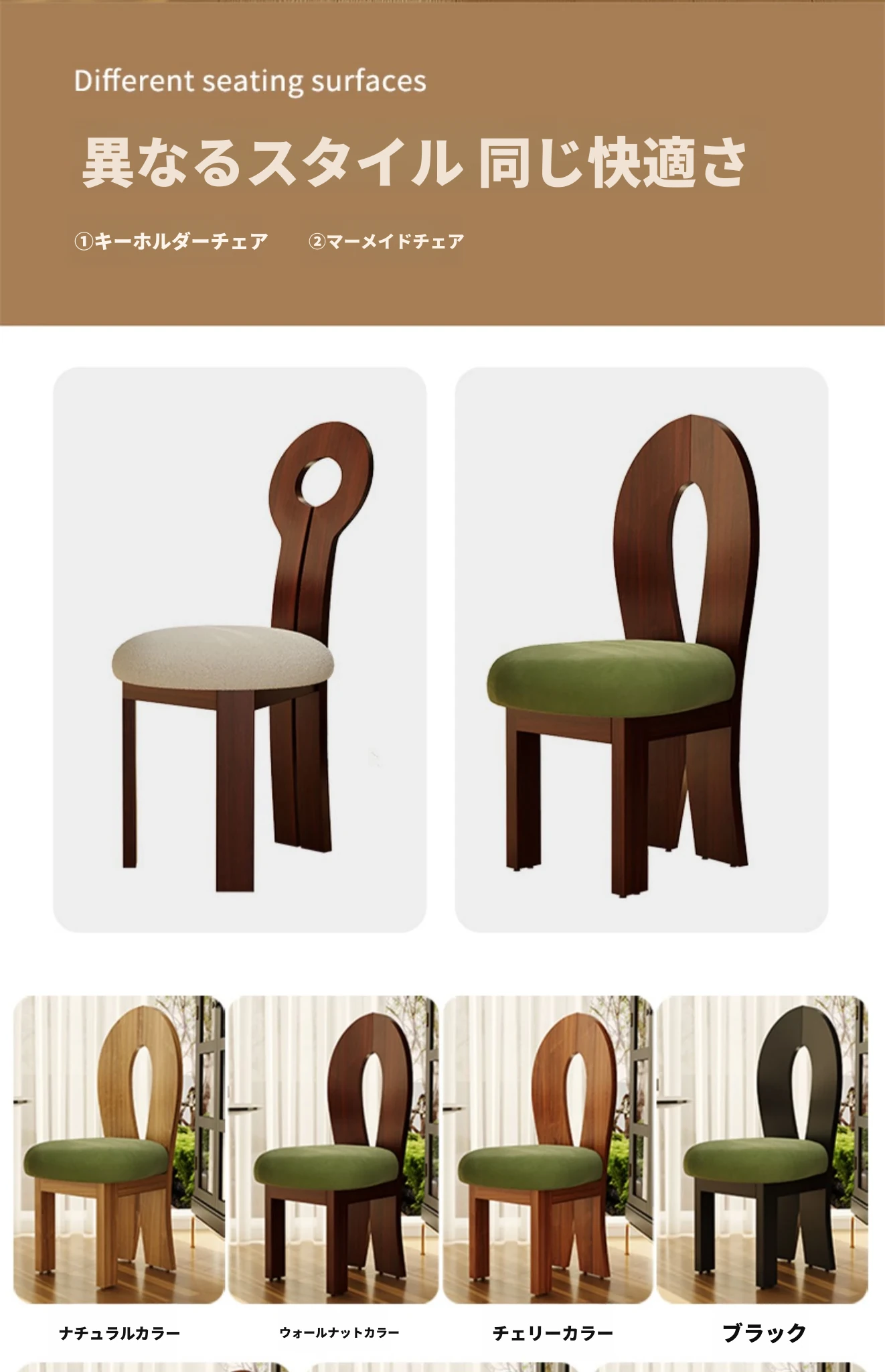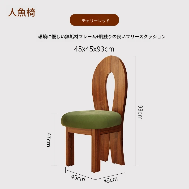 チェリー色|人魚椅子【緑色ベルベットクッション】FAS全実木フレーム