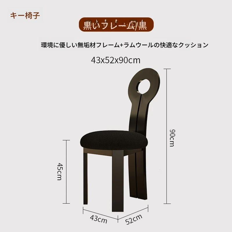 黒色|キー椅子【白色ラムフェルトクッション】FAS全実木フレーム品質実木 広々とした座面 適切な座高 安定した耐荷重【バイヤーズショー募集】