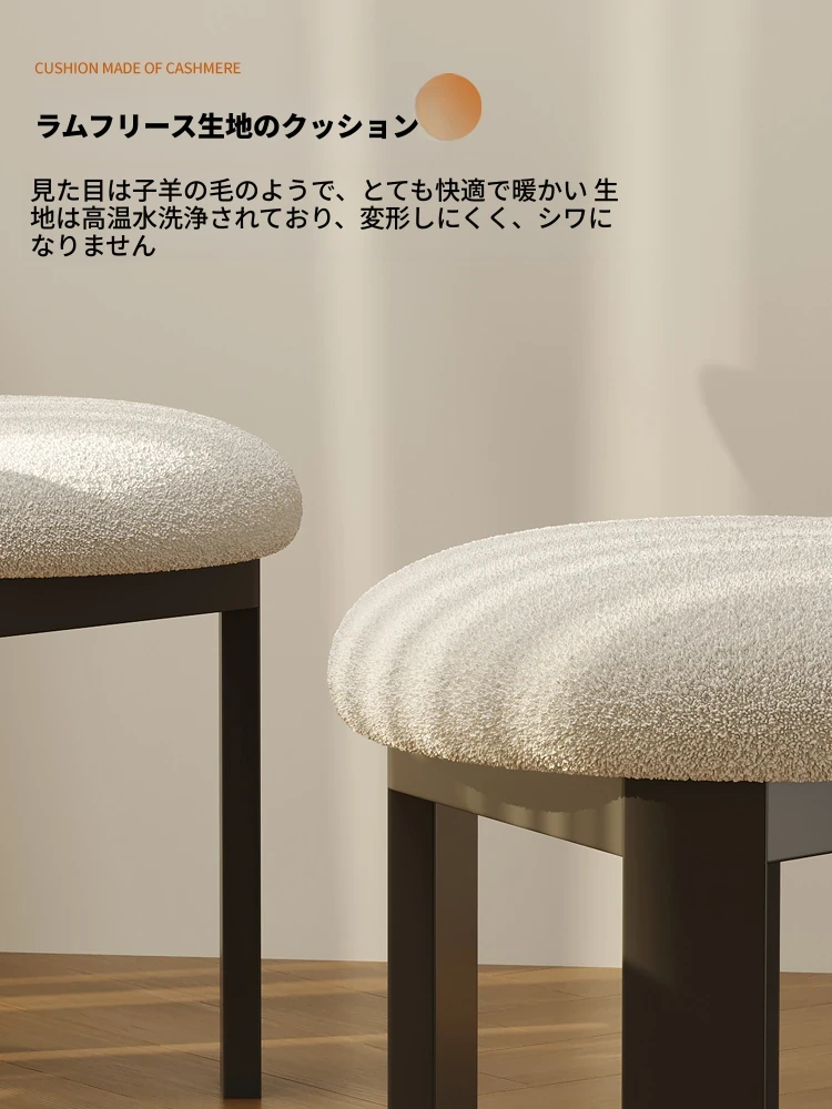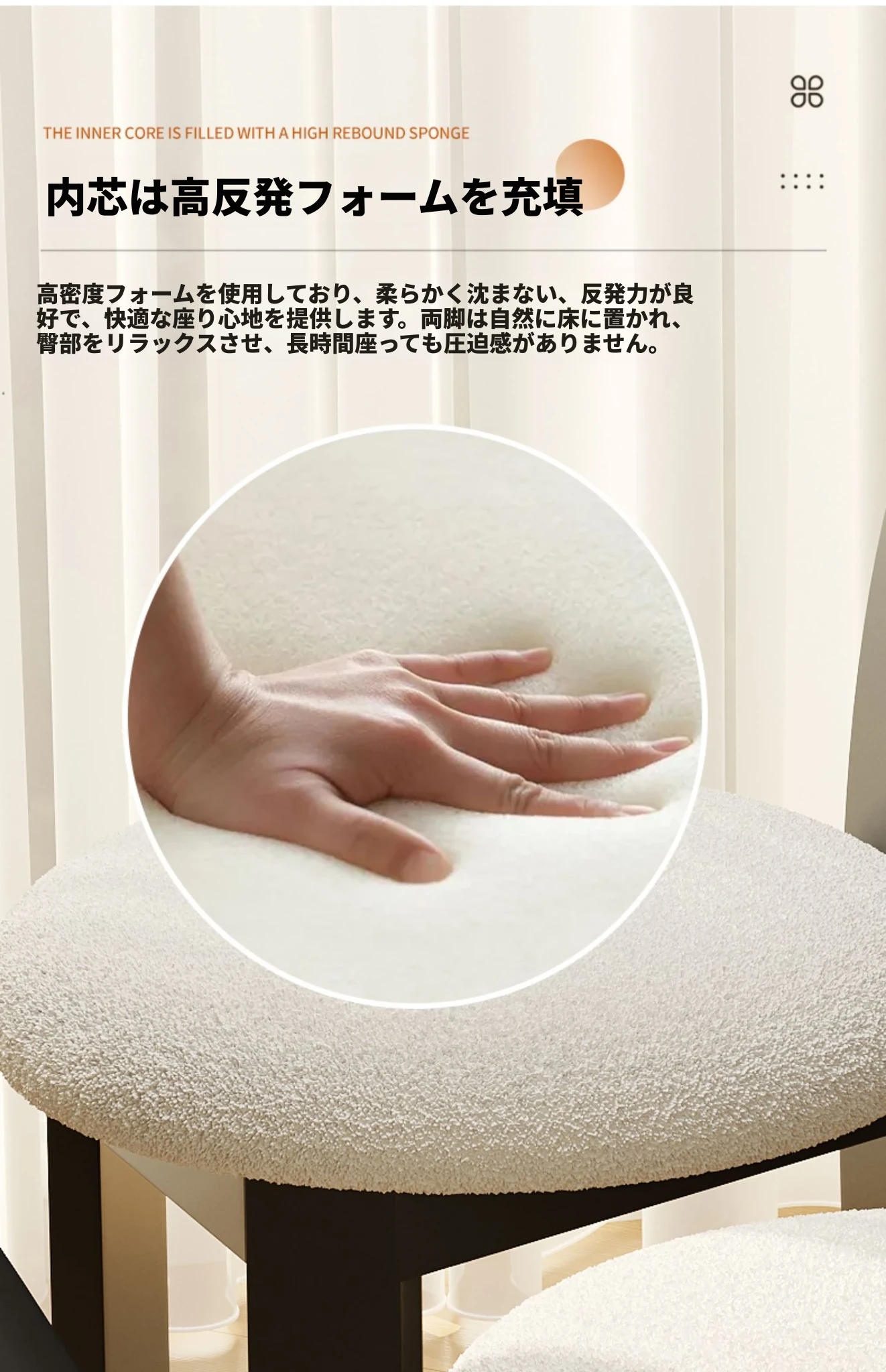 2024年新作!ふわふわ羊毛ファーの化粧台スツール。背もたれ付きで快適!おしゃれな実木製のデザインで、女性の寝室にぴったり。メイクアップタイムを特別なものにする、上質な化粧椅子です。