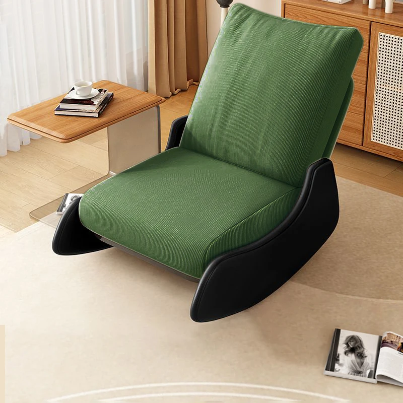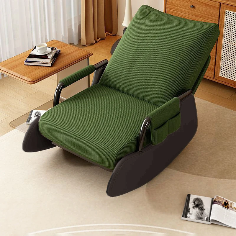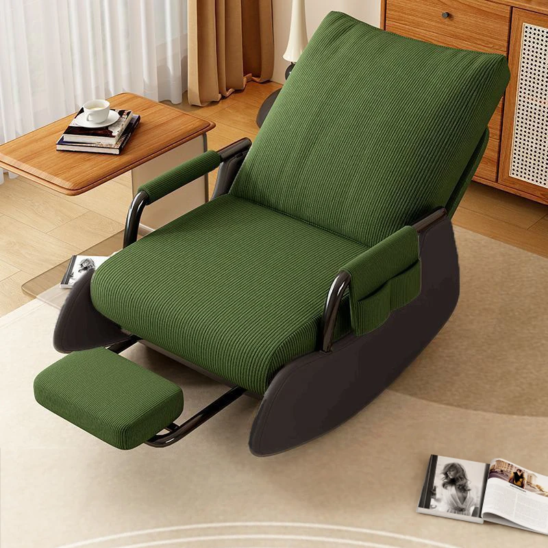 【ブラック猫爪皮★洗える★多段階調整背もたれ】ダークグリーンコーデュロイ+アームレスト+スライド式フットレスト