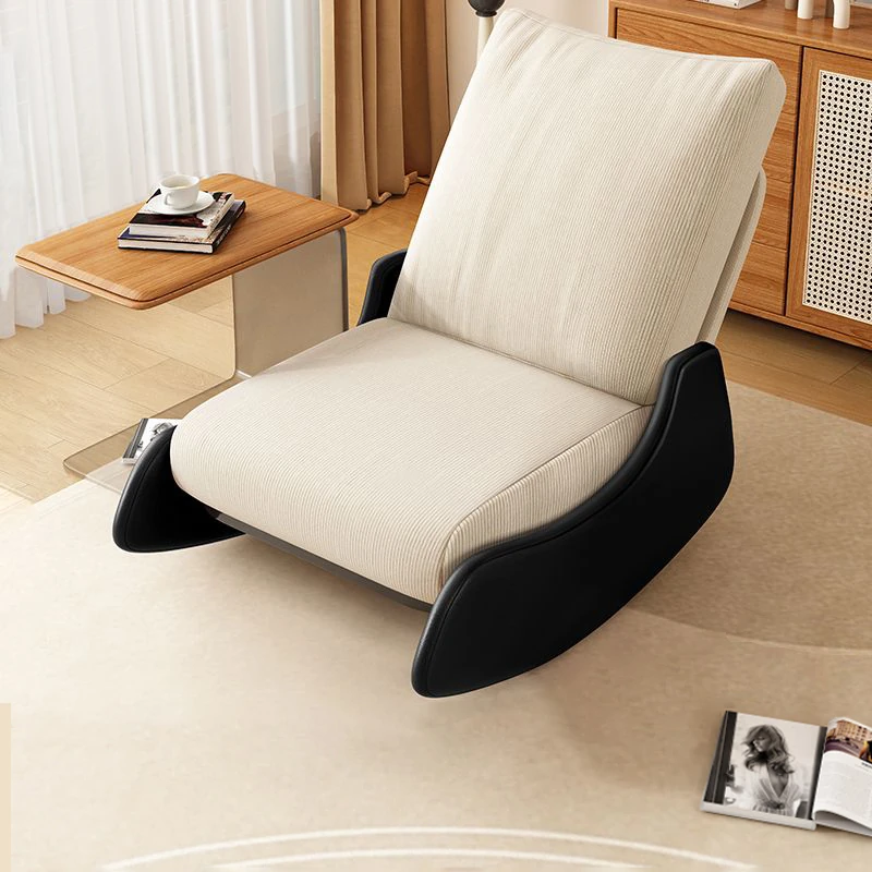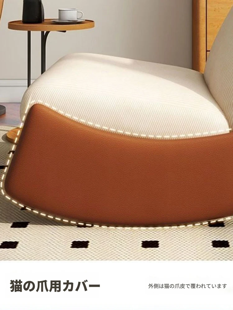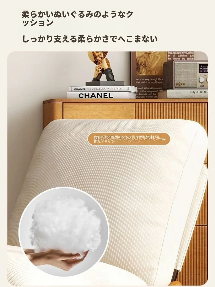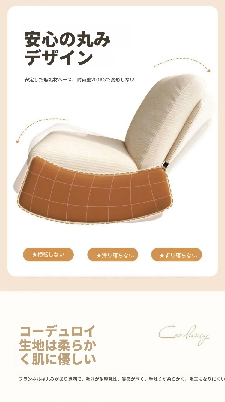 【ブラック猫爪皮★洗える★多段階調整背もたれ】アイボリーコーデュロイ+アームレスト+スライド式フットレスト