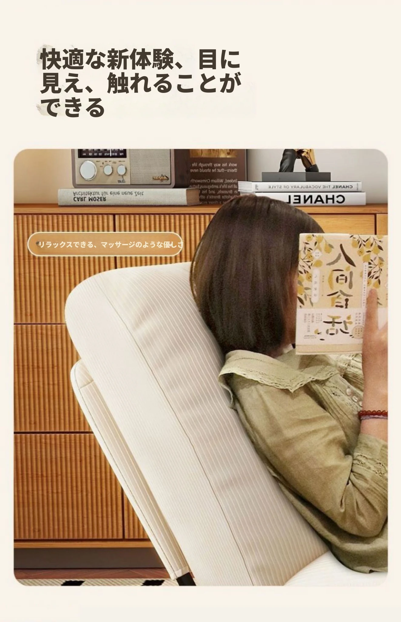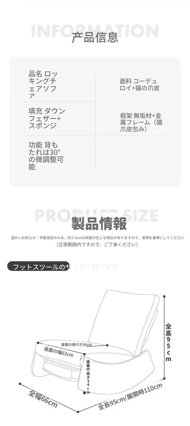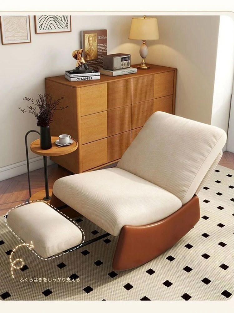 【ブラック猫爪皮★洗える★多段階調整背もたれ】アイボリーコーデュロイ+アームレスト+スライド式フットレスト