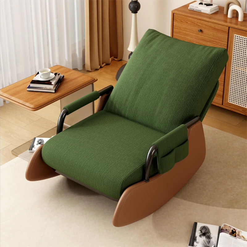 【ブラウン猫爪皮★洗える★多段階調整背もたれ】ダークグリーンコーデュロイ+アームレスト+スライド式フットレスト
