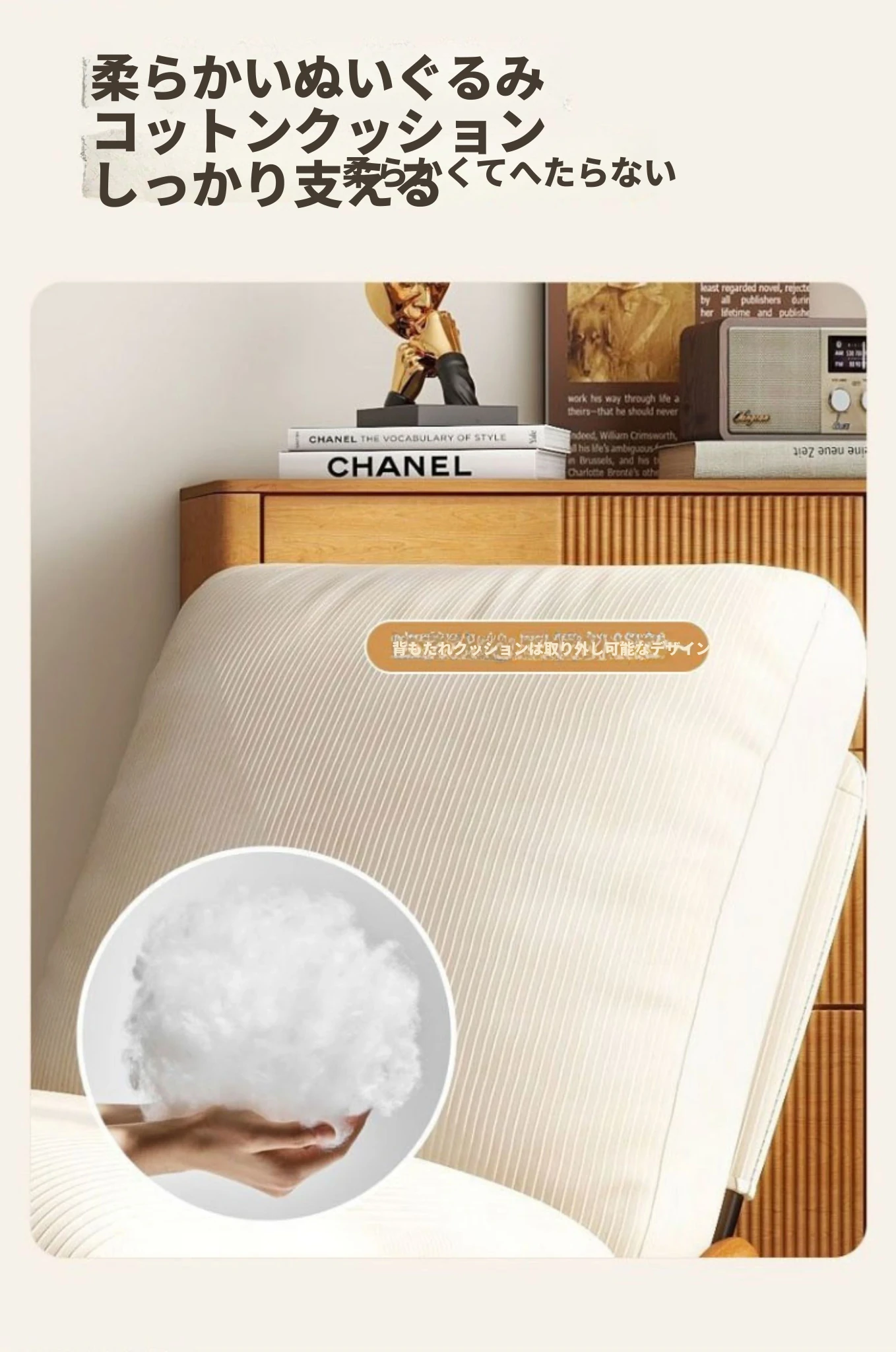【ブラック猫爪皮★洗える★多段階調整背もたれ】アイボリーコーデュロイ+アームレスト