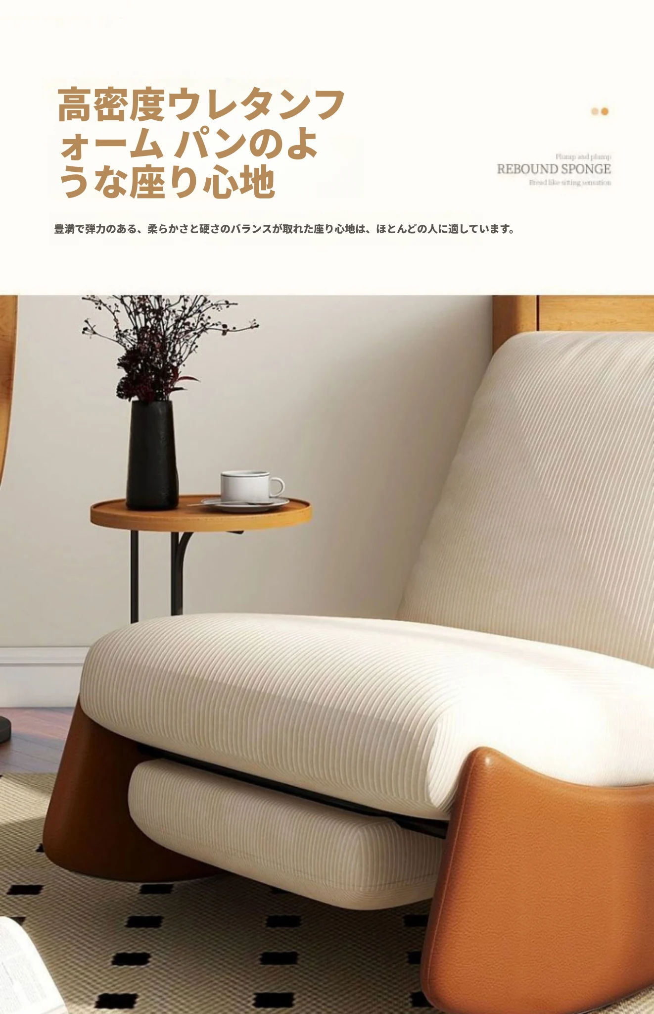 【ブラウン猫爪皮★洗える★多段階調整背もたれ】アイボリーコーデュロイ+アームレスト