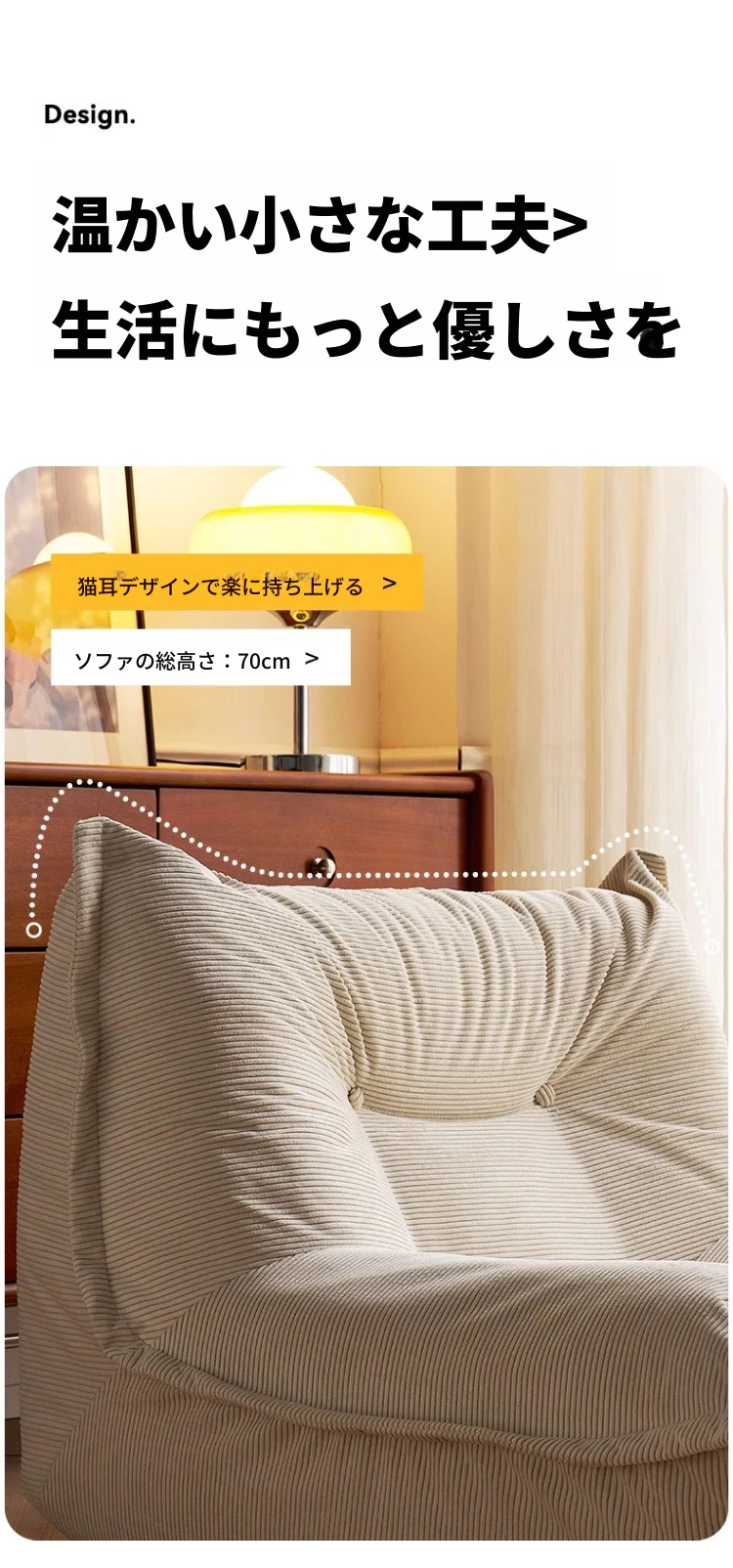 ⭐宅配サービス⭐アップグレード版★肌触りの良い通気性のあるコーデュロイ【アイボリー】50D高密度メモリ一体型スポンジ★洗濯可能