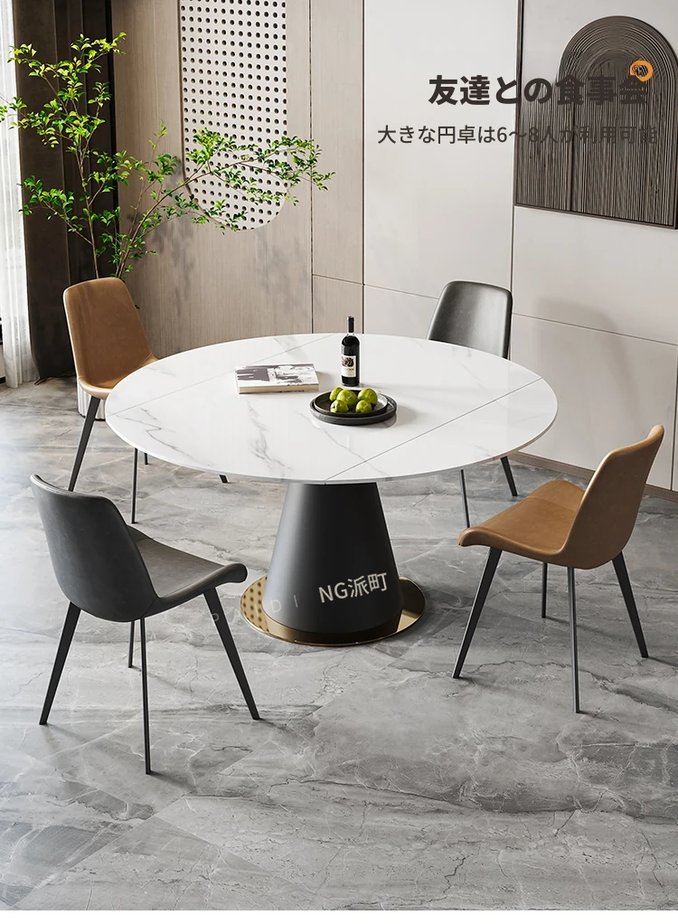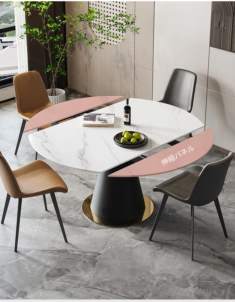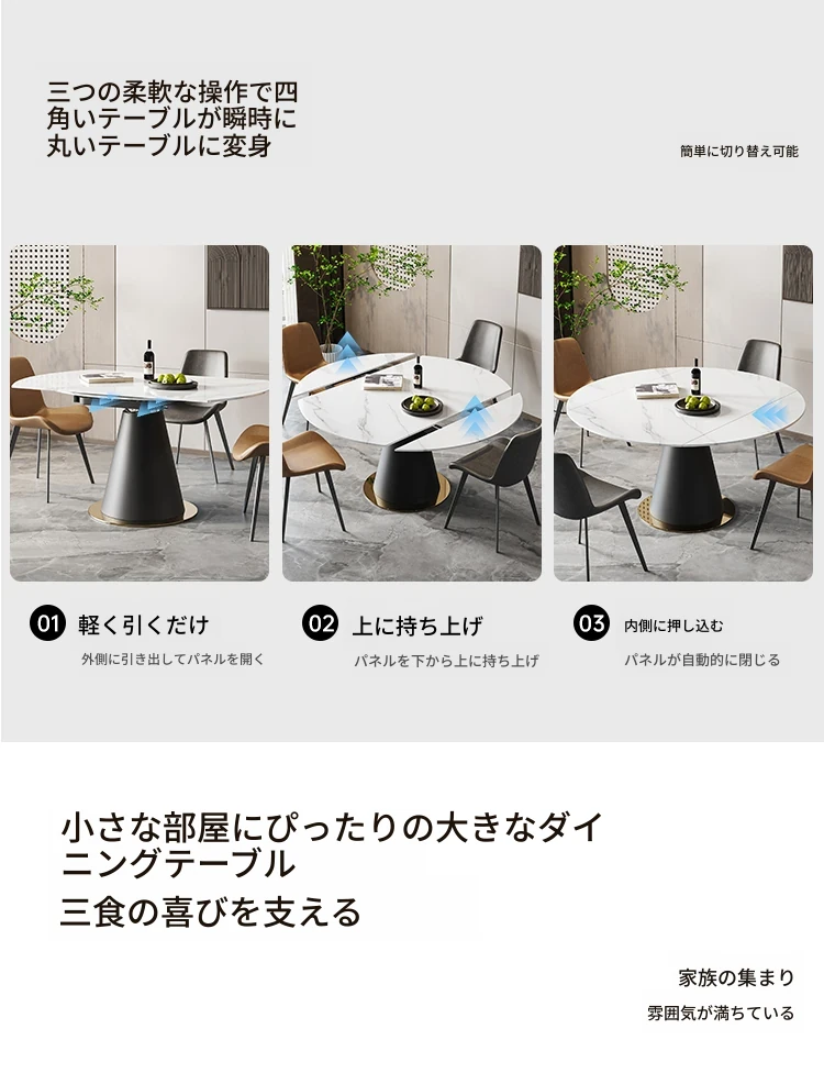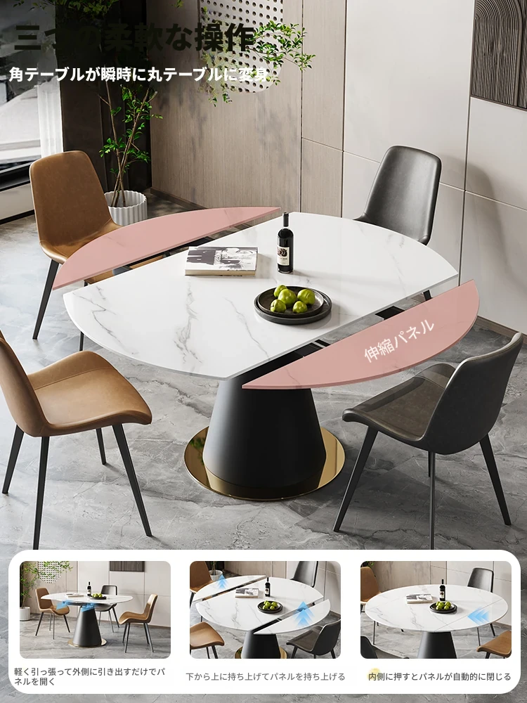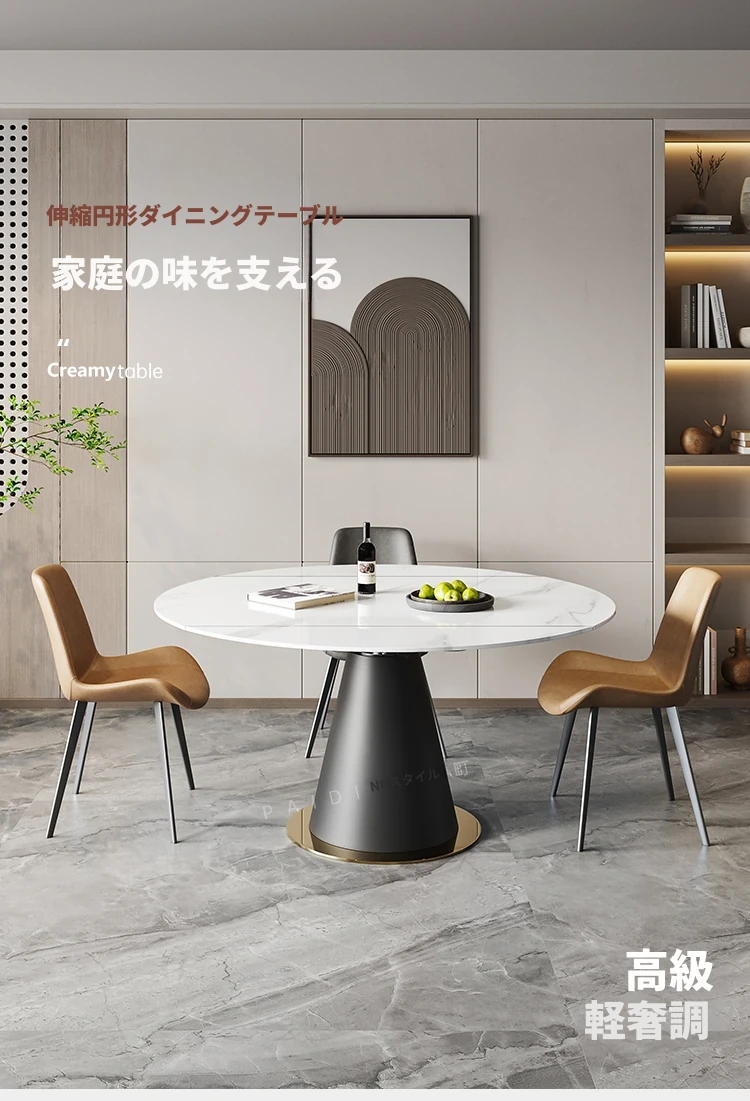 2025年新作!軽やかでモダンなデザインの家用ダイニングテーブル&チェアセット。小さなリビングにもぴったりな、変形可能なラウンドテーブルで、贅沢なひとときをお楽しみください!