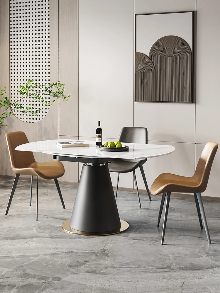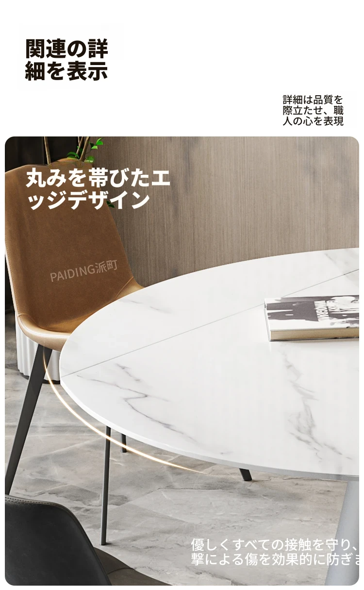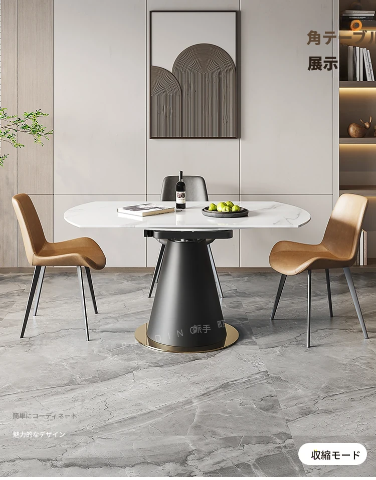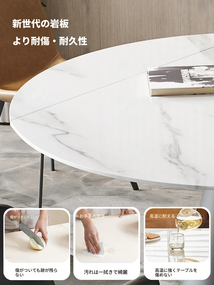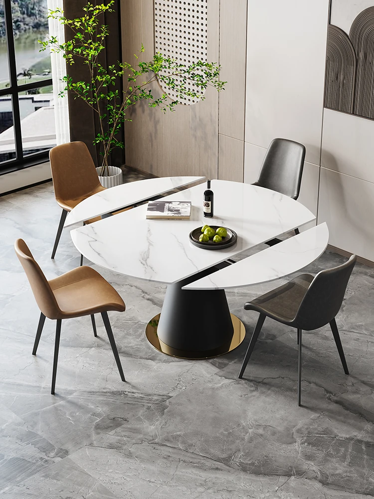 2025年新作!軽やかでモダンなデザインの家用ダイニングテーブル&チェアセット。小さなリビングにもぴったりな、変形可能なラウンドテーブルで、贅沢なひとときをお楽しみください!