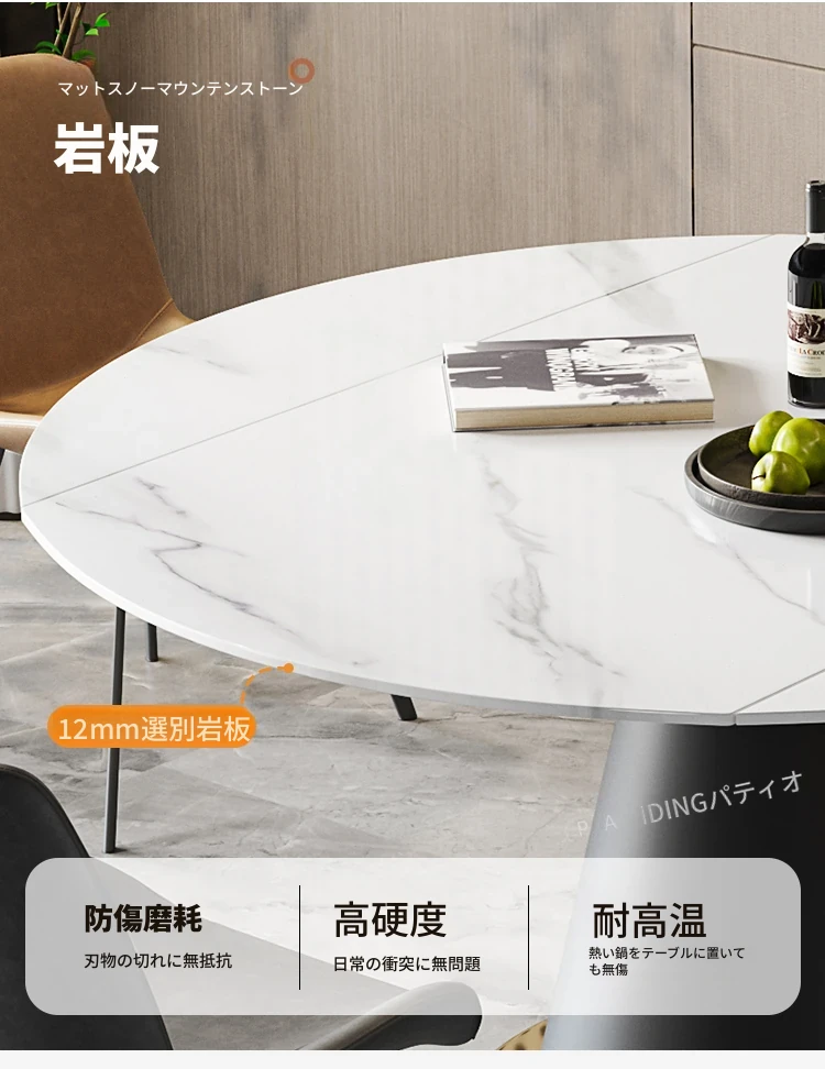1.2メートルの岩板ダイニングテーブル(椅子なし)