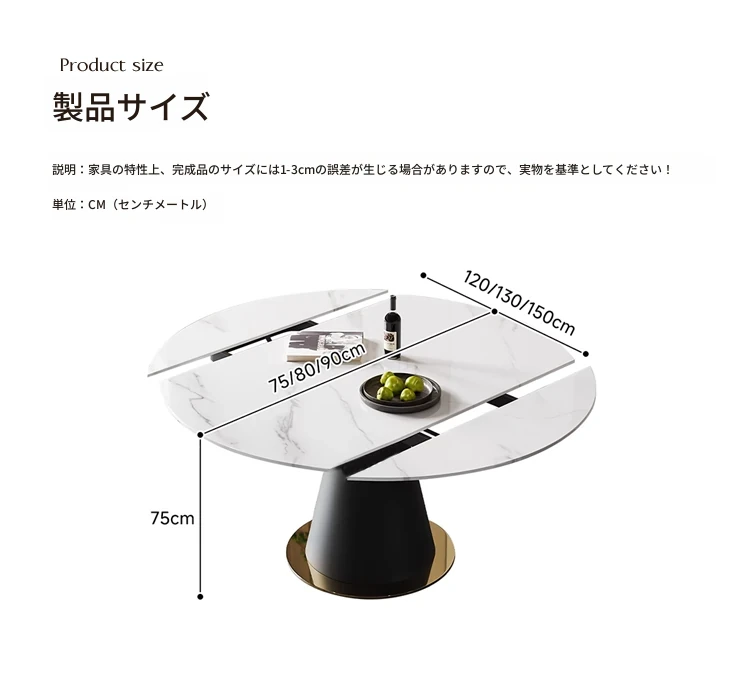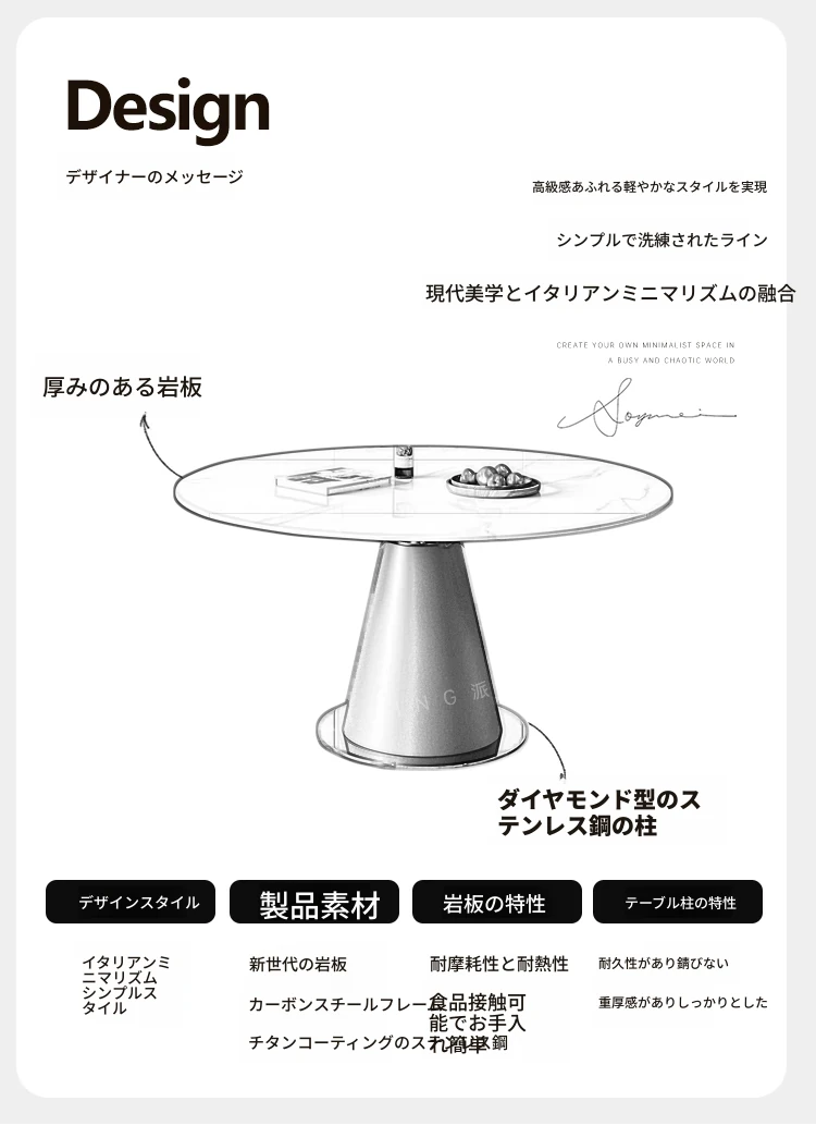 1.3メートルの岩板ダイニングテーブル(椅子なし)