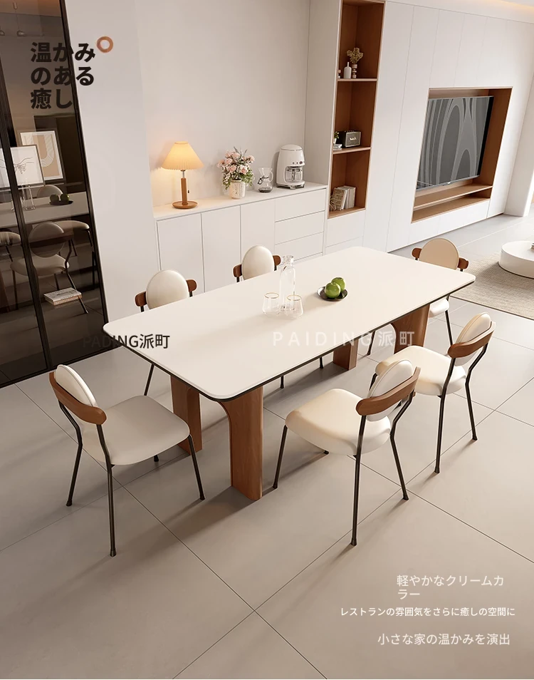 2025年新作!高級感あふれるクリーム風デザインのダイニングテーブル&チェアセット - スペースを取らない小型住宅向け、広々とした食事空間を実現!佛山製で品質も安心。