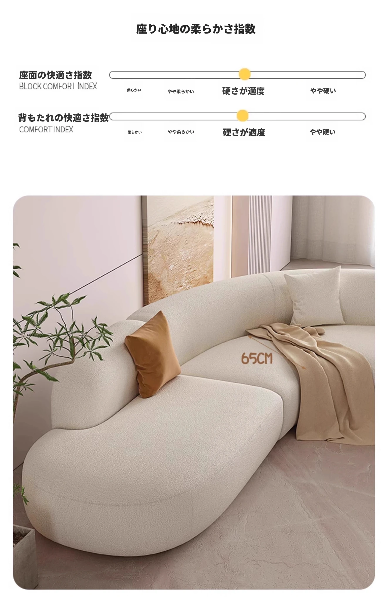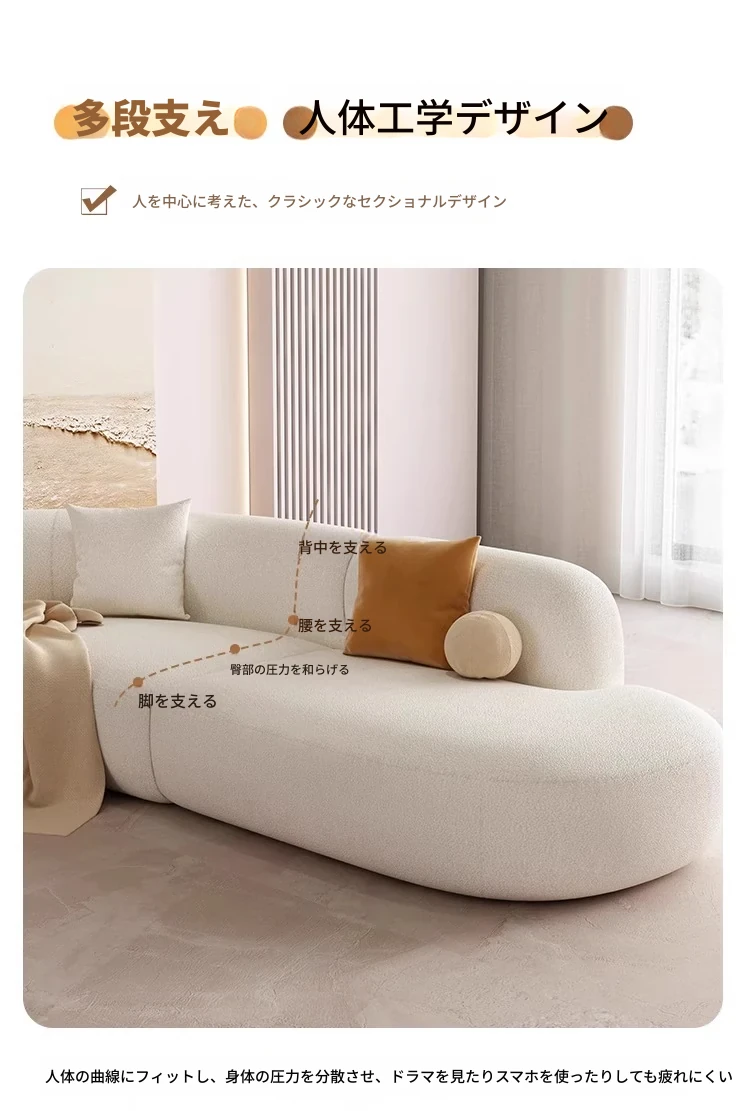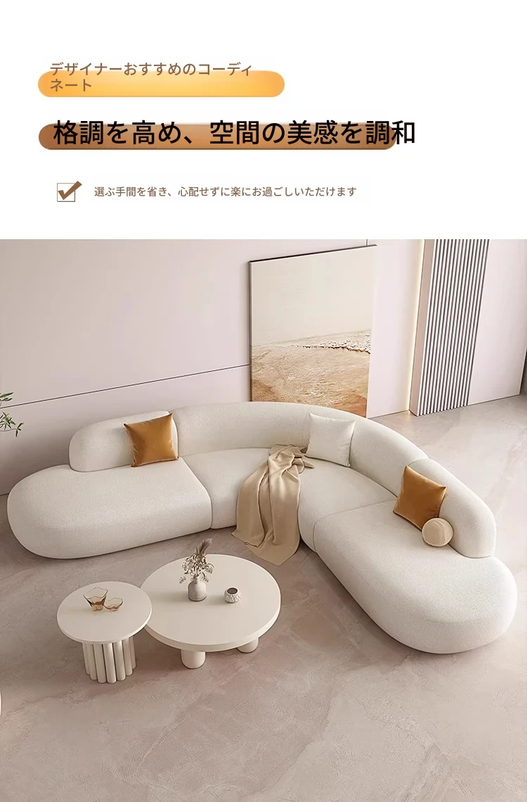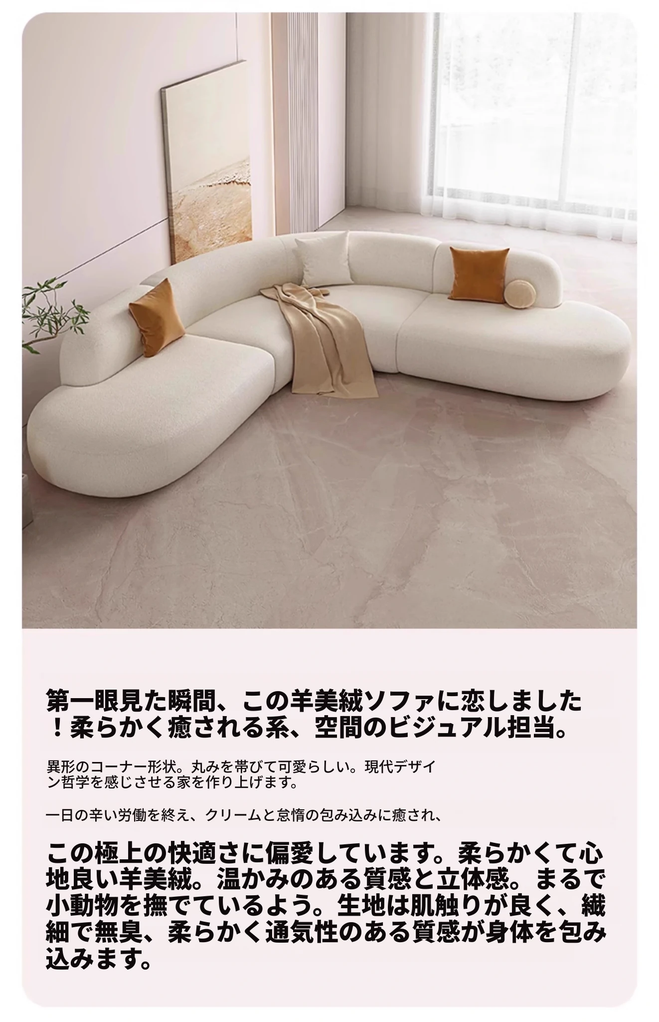 クリーム風味のネコ爪デザイン L字型ソファ 大型北欧スタイル インスタ映えするアーチ型 美容院やホテルの休憩スペースに最適!快適さとスタイルを兼ね備えた一品です。