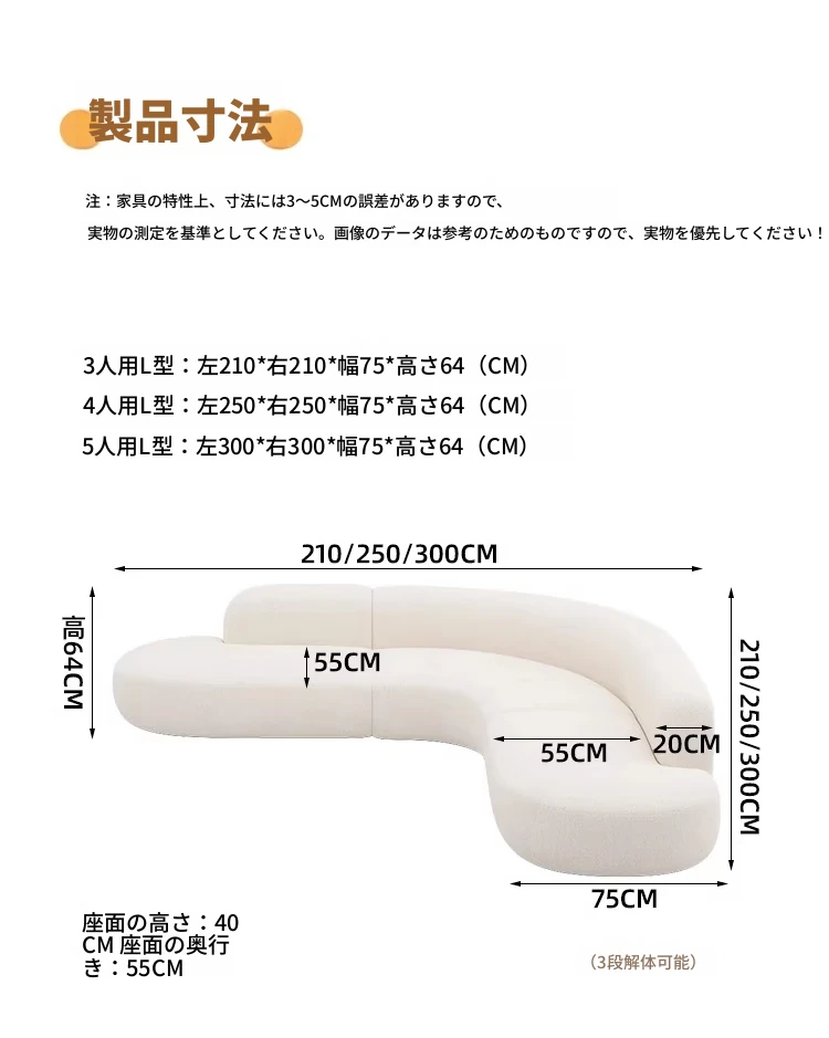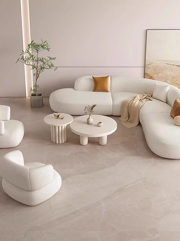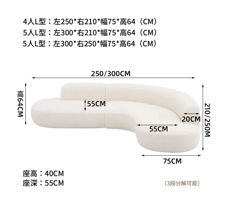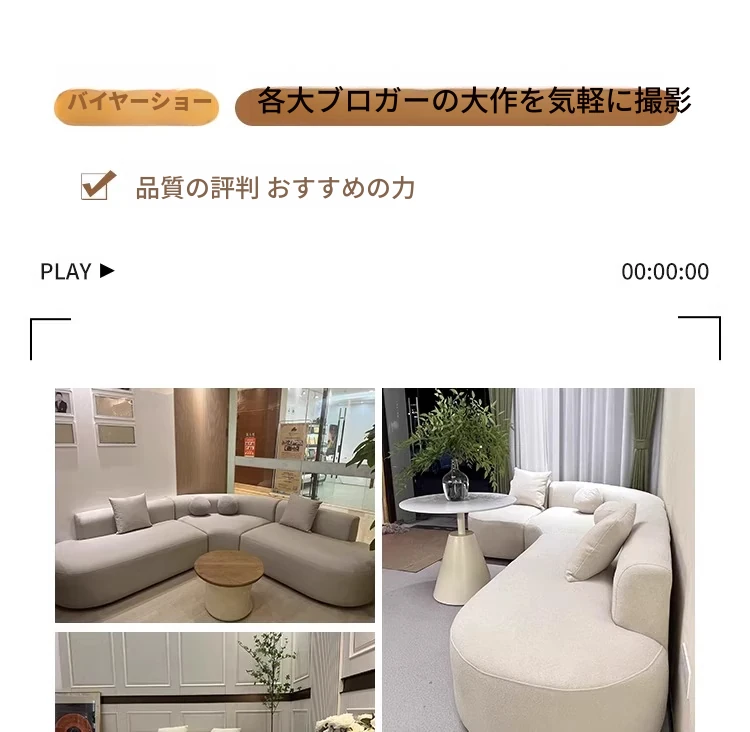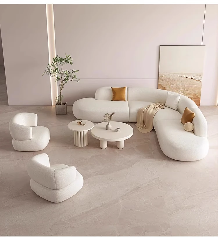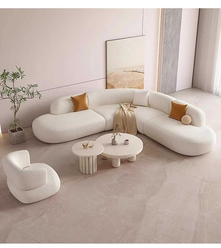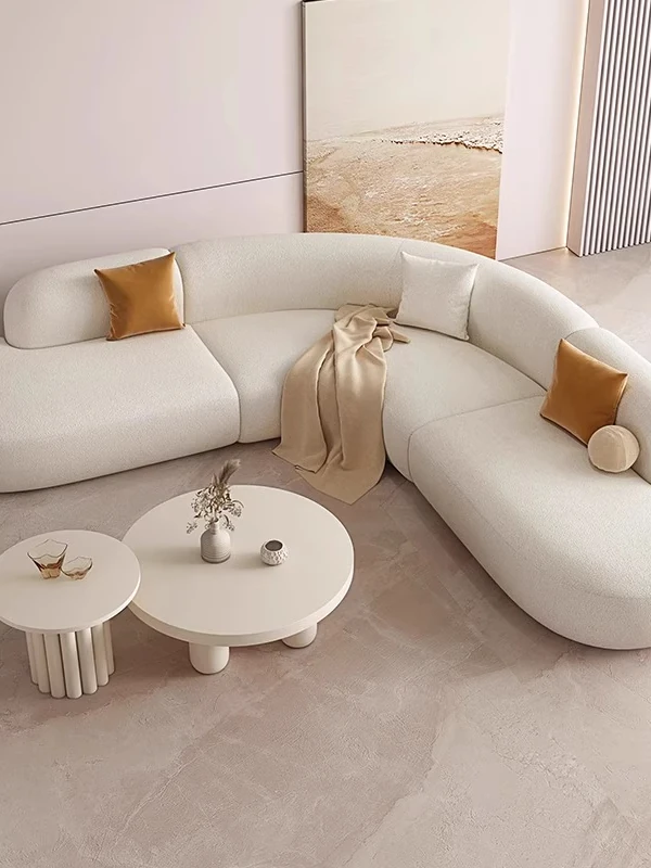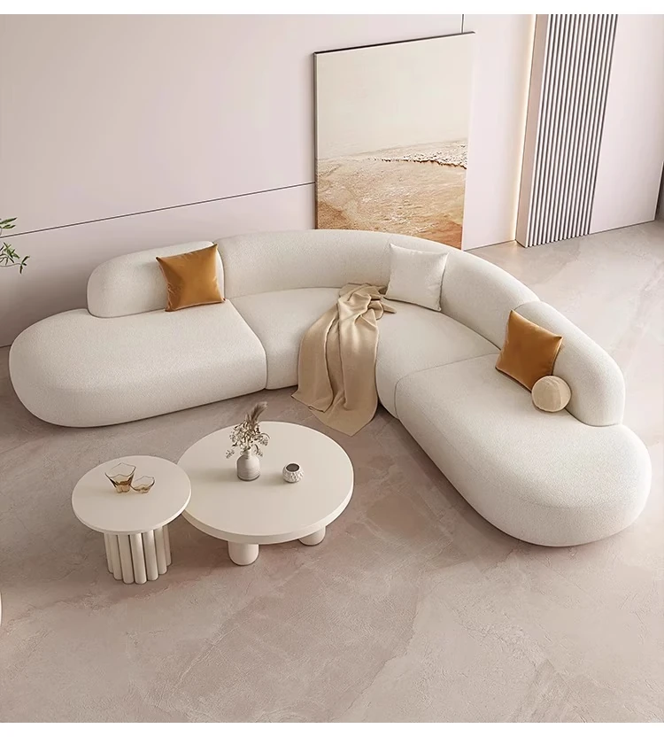 クリーム風味のネコ爪デザイン L字型ソファ 大型北欧スタイル インスタ映えするアーチ型 美容院やホテルの休憩スペースに最適!快適さとスタイルを兼ね備えた一品です。