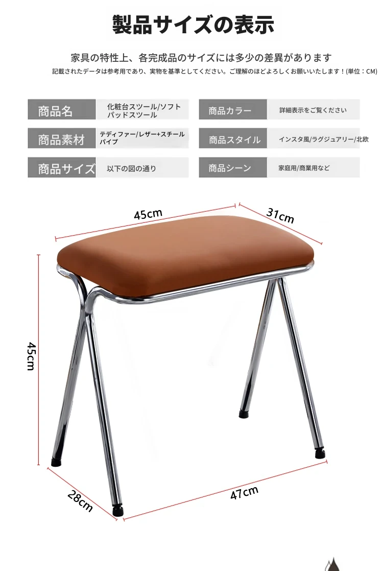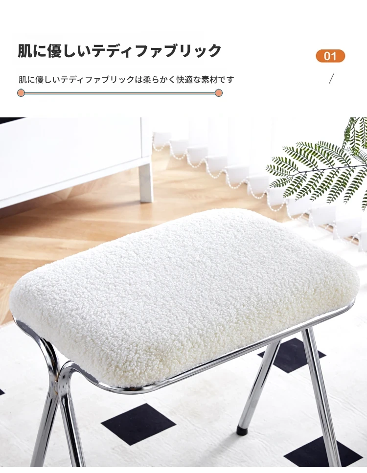 クリーム風のラグジュアリーな化粧台椅子!女性の寝室や試着室にぴったりのミニマルデザイン。おしゃれで機能的、靴を履き替えるのにも便利なコンパクトなスツールです。