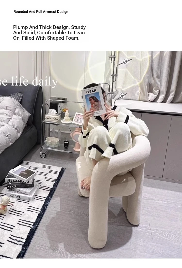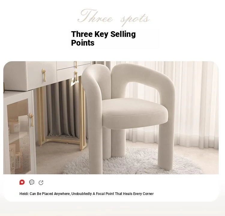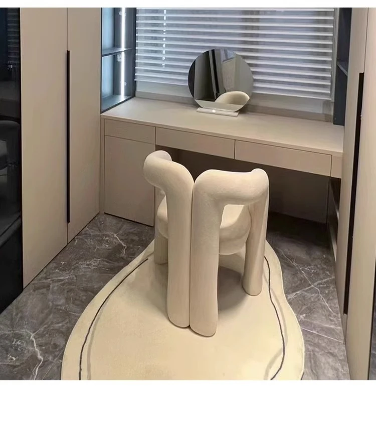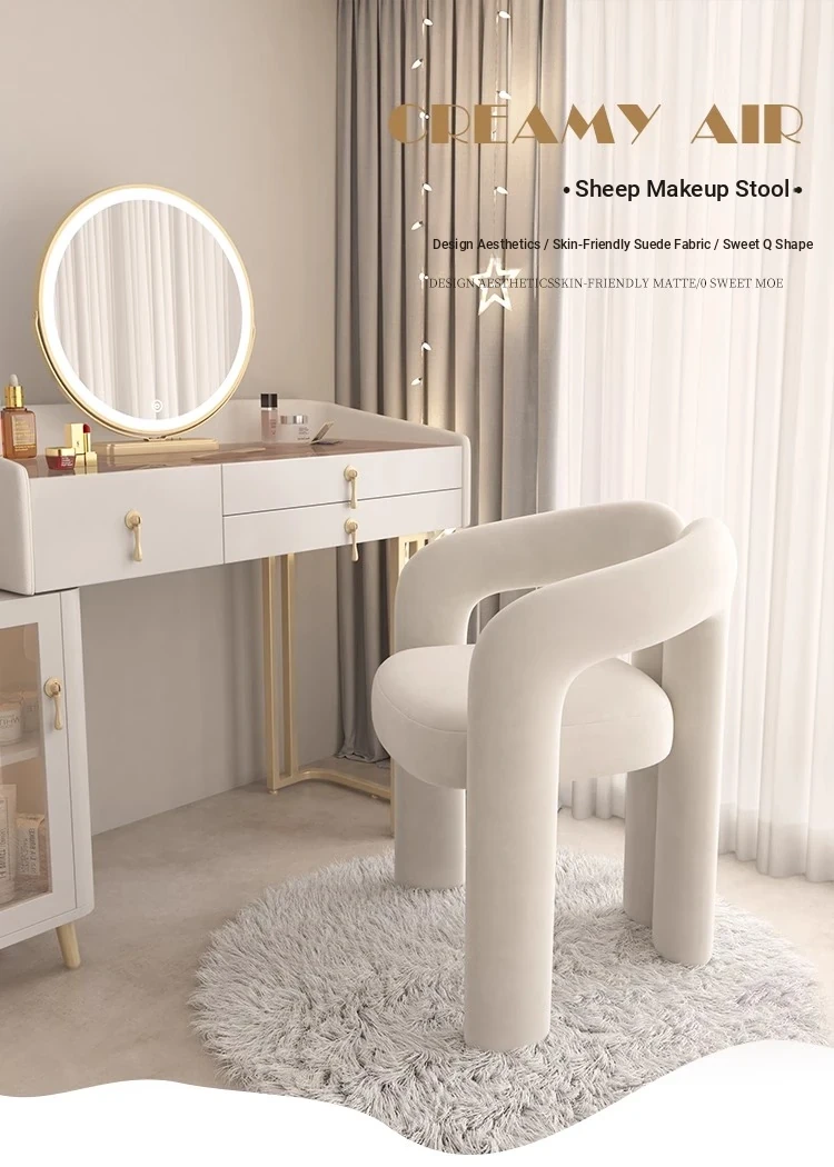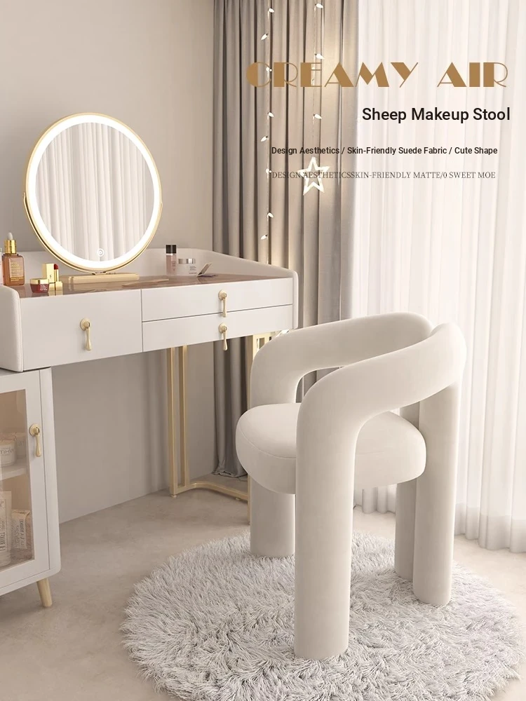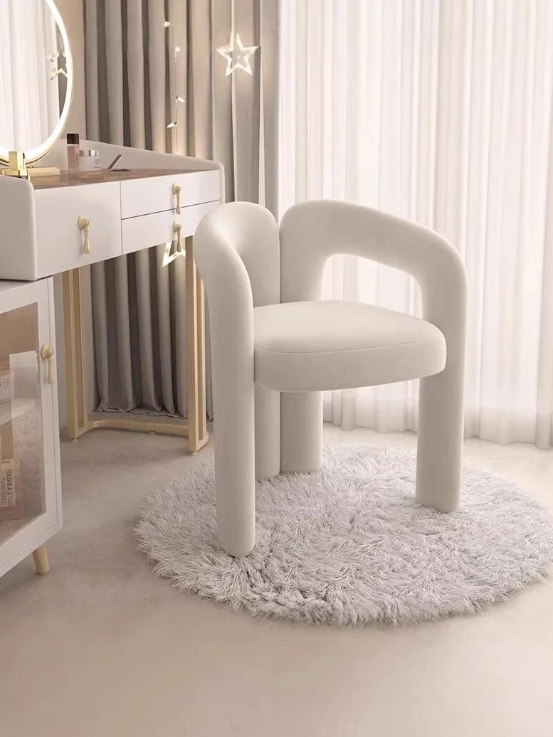 Creamy Makeup Chair for Girls' Bedroom - Stylish Home Chair with Backrest, Designer-Inspired, Luxury Vanity Stool for a Chic Touch