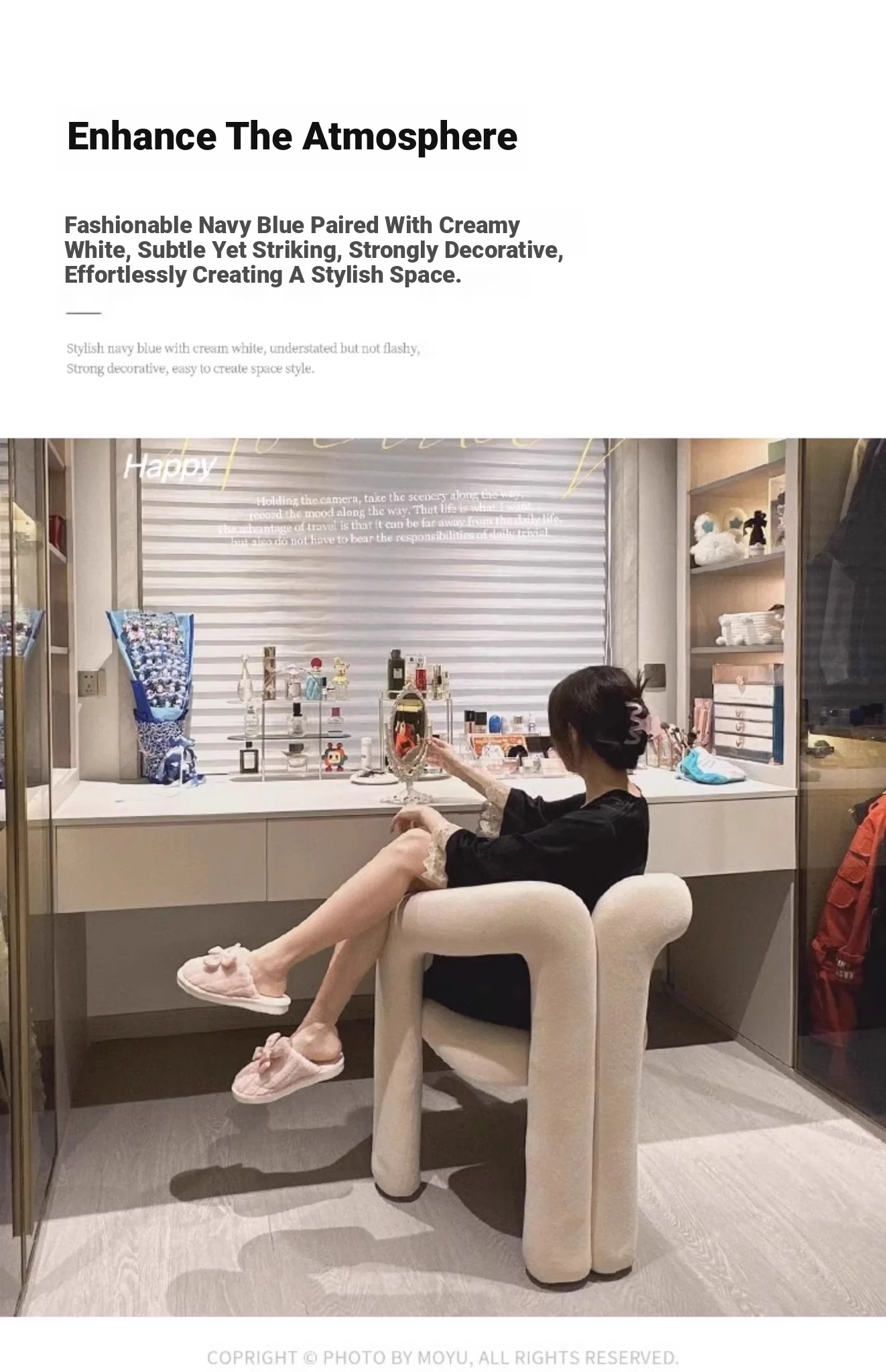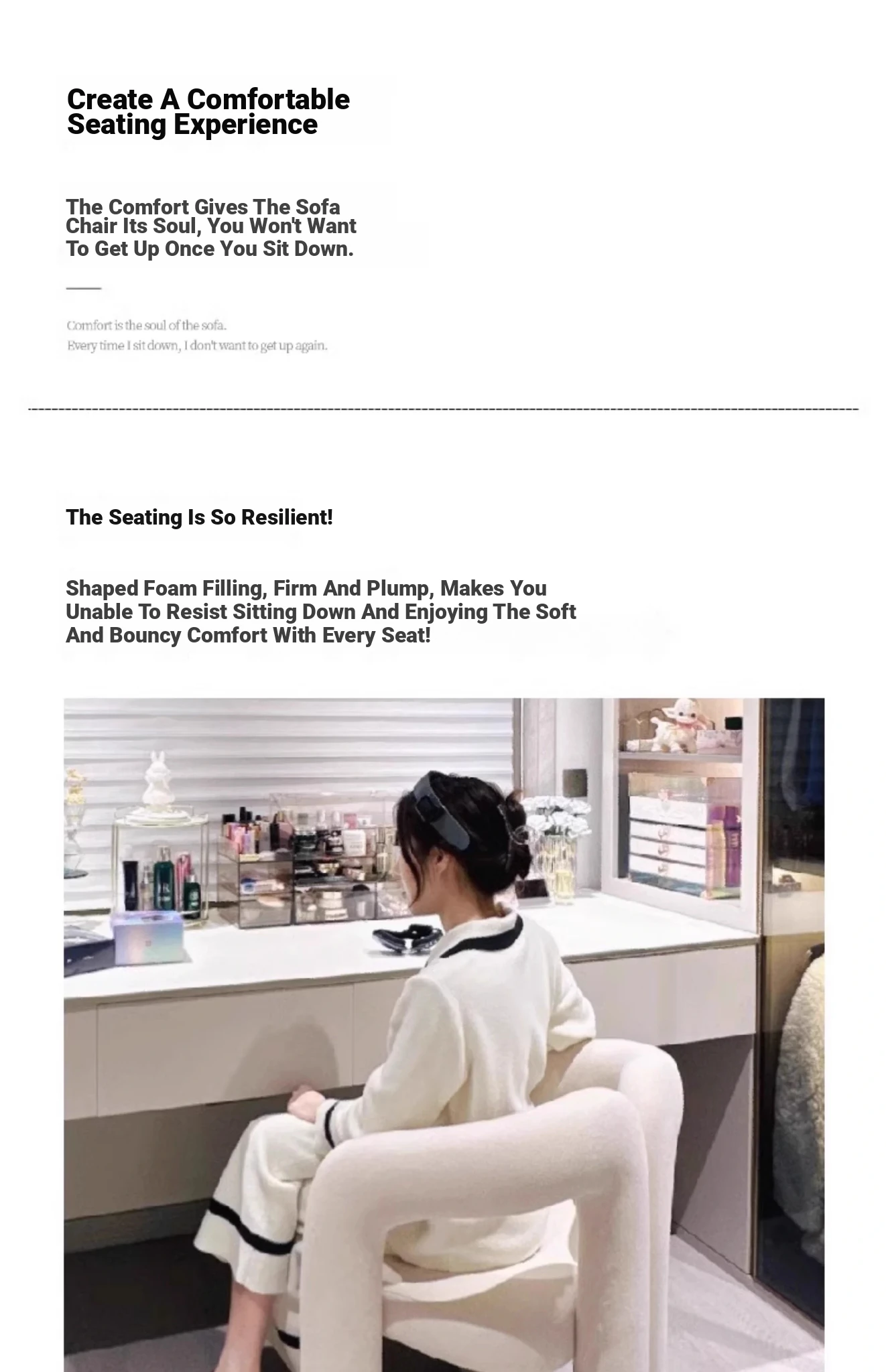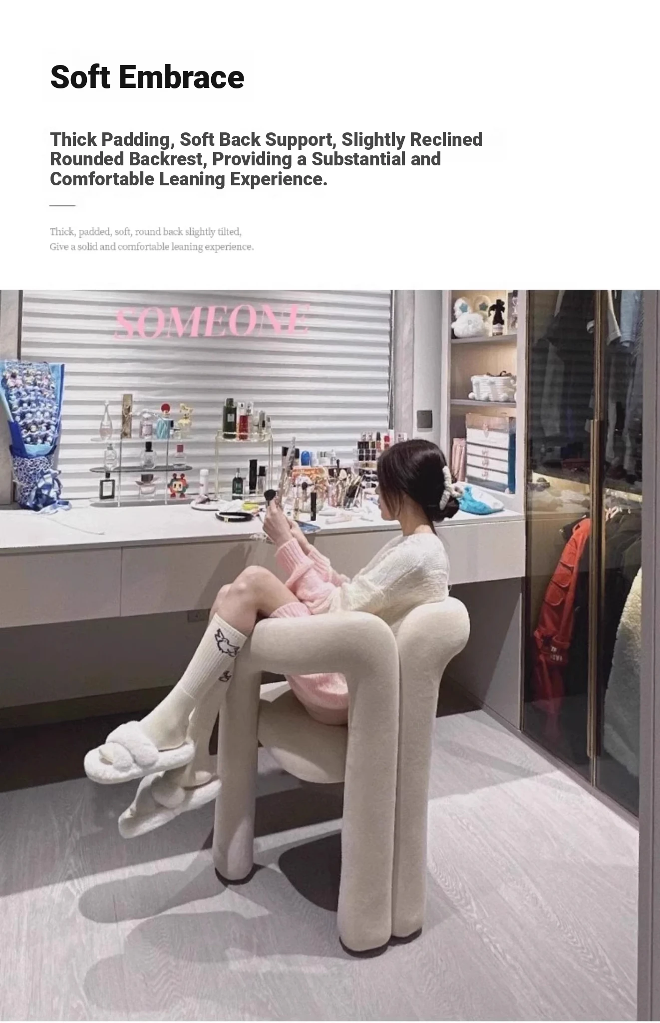 Creamy Makeup Chair for Girls' Bedroom - Stylish Home Chair with Backrest, Designer-Inspired, Luxury Vanity Stool for a Chic Touch