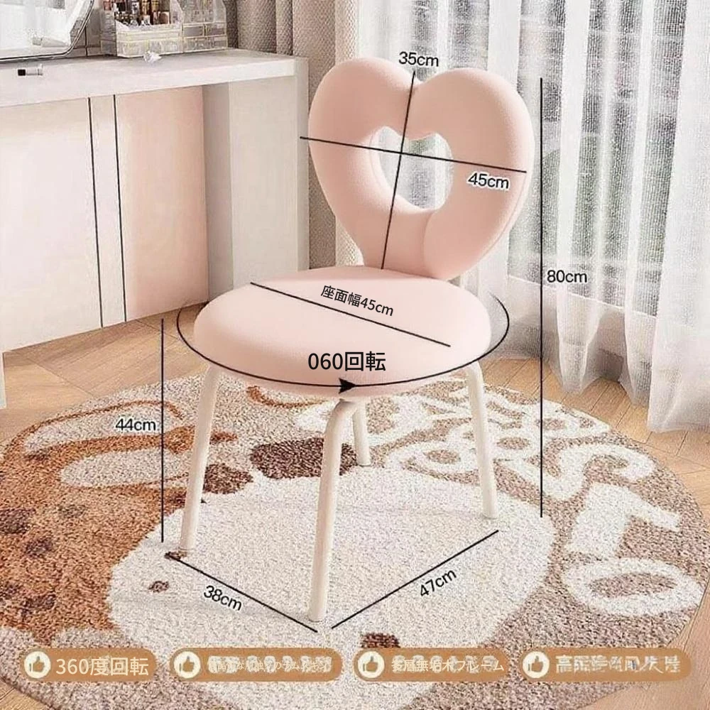 化粧椅 女の子の寝室やクローゼットにぴったり!高級感あふれるデザインの回転式メイクアップスツール。快適な背もたれ付きで、美容やネイル作業にも最適!あなたの特別な空間を演出します。