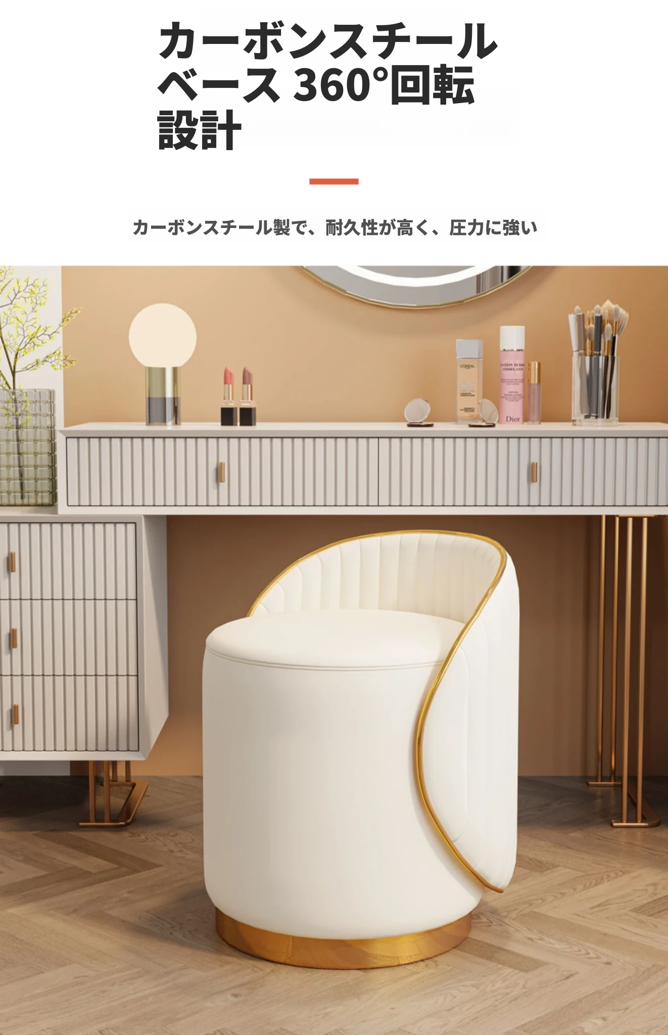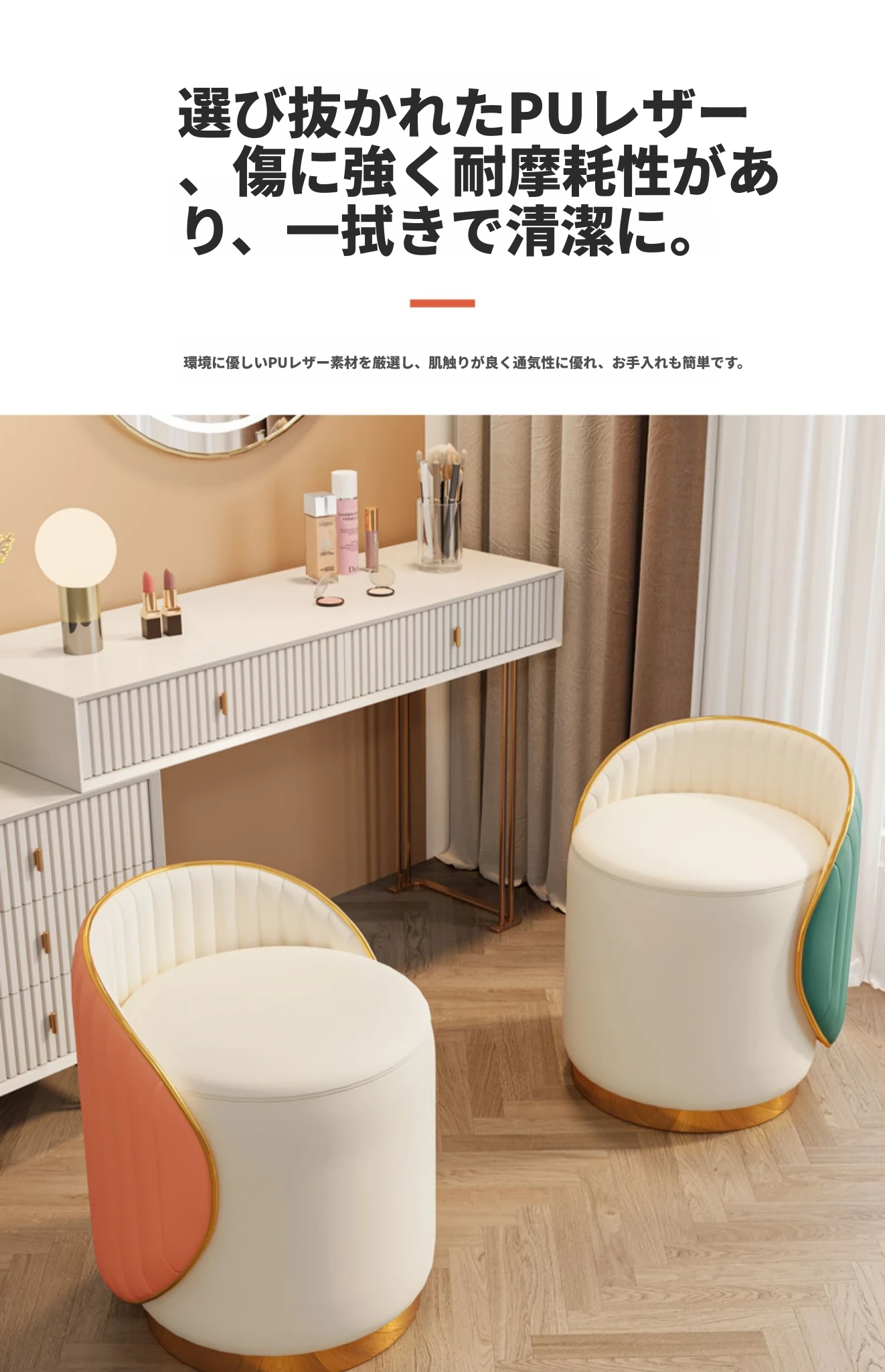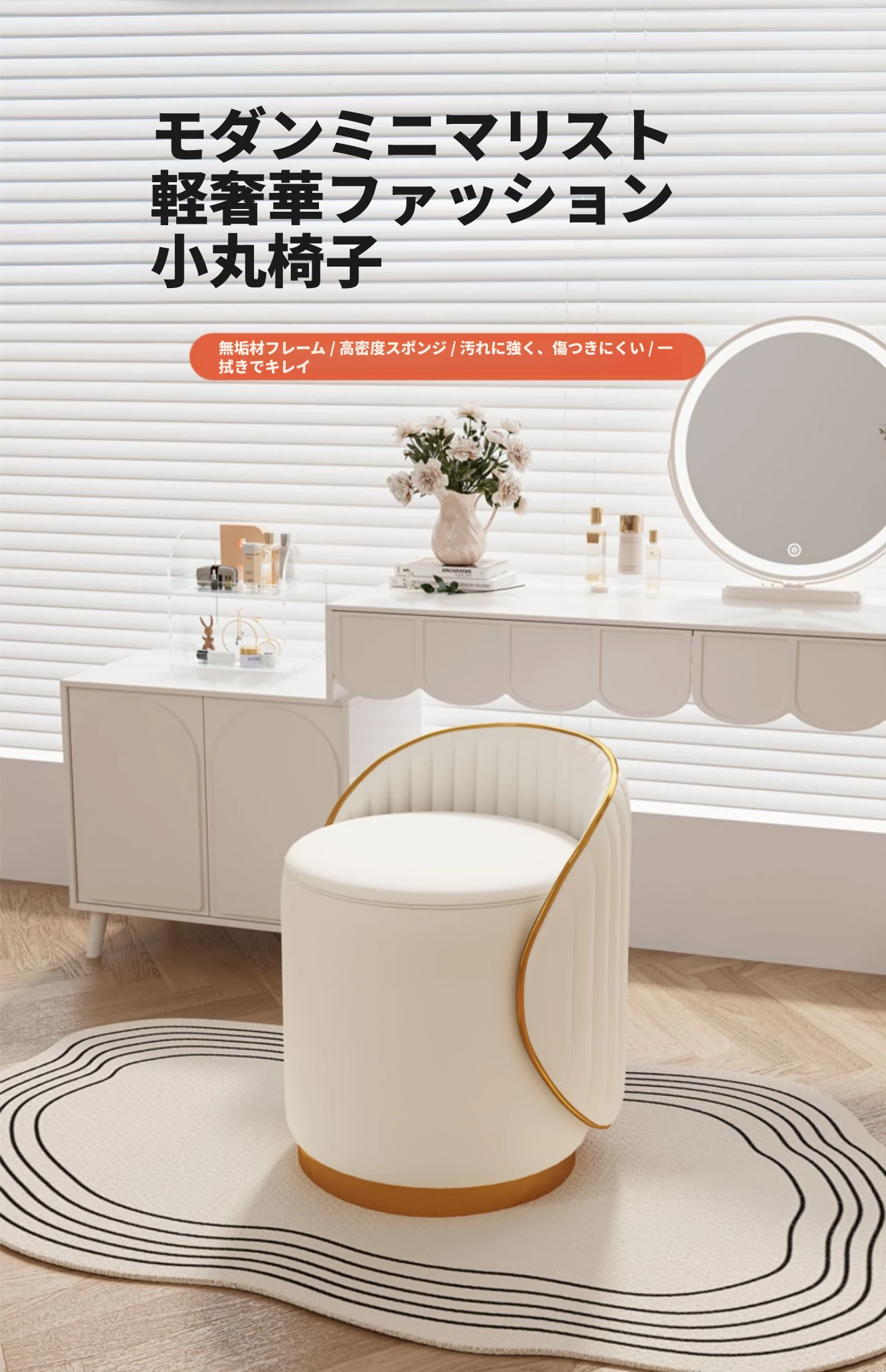 高級感漂う化粧台専用スツール - おしゃれな寝室やリビングにぴったりの軽やかなデザイン!ネイルやメイクにも最適なコンパクトな円形チェア。あなたの美を引き立てるアイテムです。