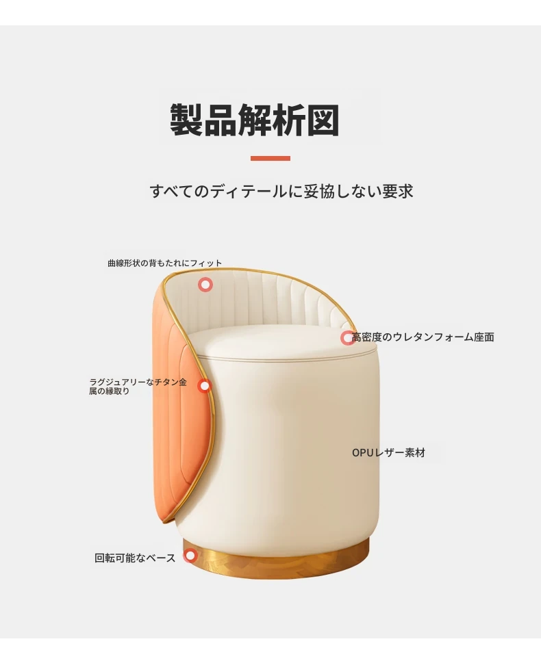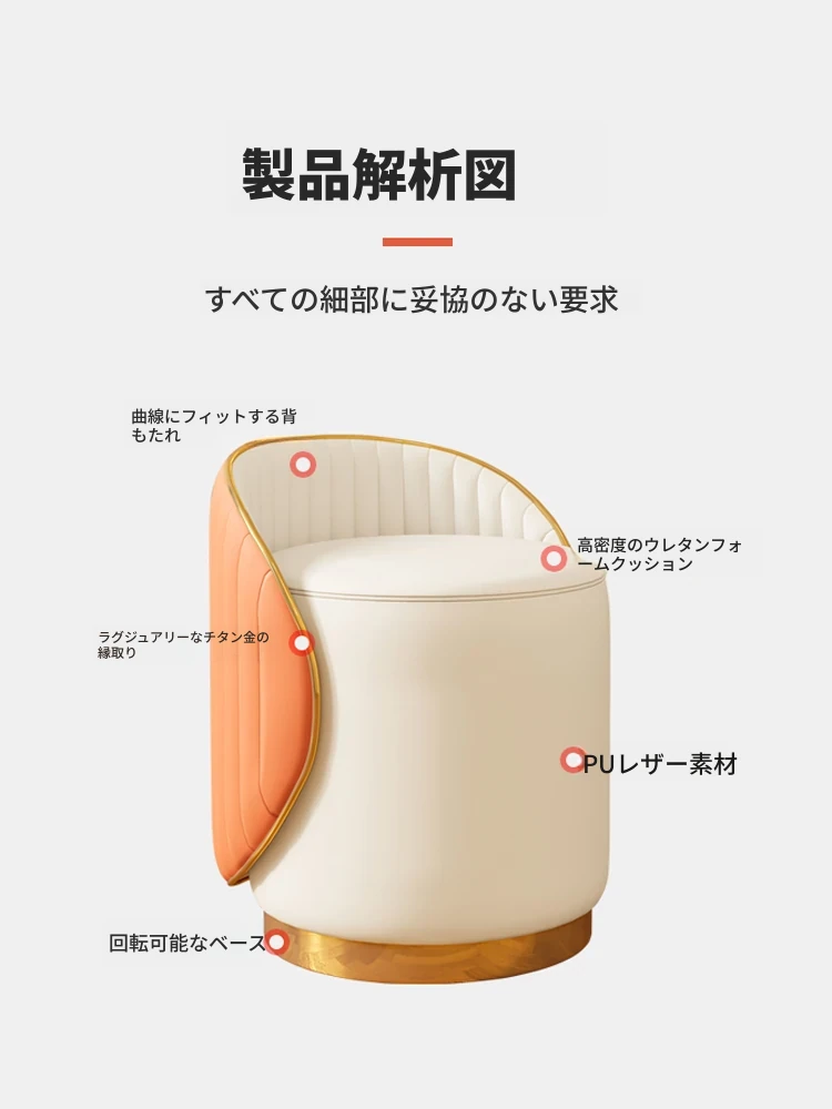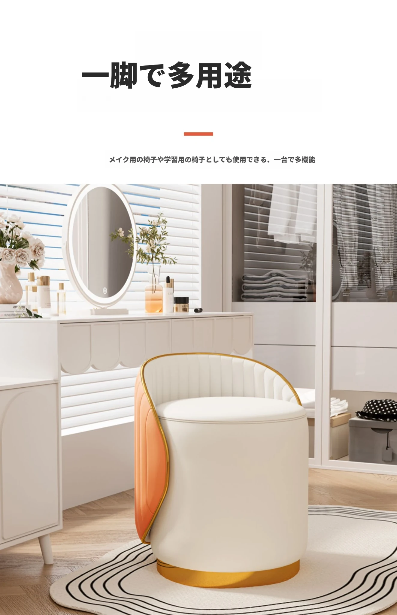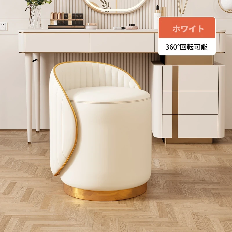 高級感漂う化粧台専用スツール - おしゃれな寝室やリビングにぴったりの軽やかなデザイン!ネイルやメイクにも最適なコンパクトな円形チェア。あなたの美を引き立てるアイテムです。