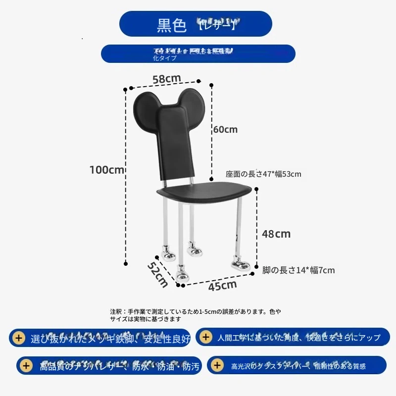 【ミッキーチェア】黒-アップグレード厚手強化版-輸入高品質パナ皮