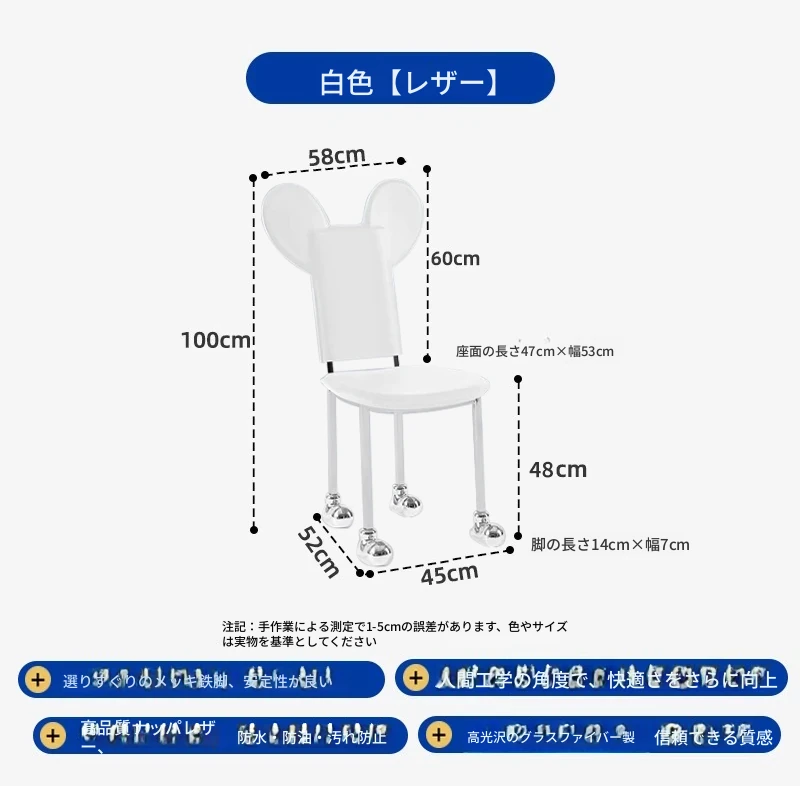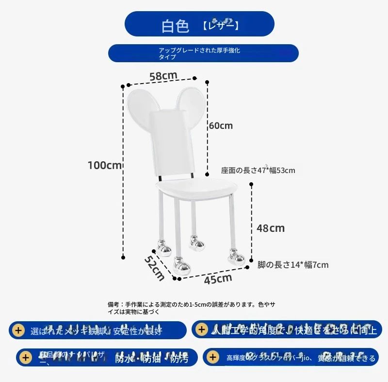 【ミッキーチェア】白-アップグレード厚手強化版-輸入高品質パナ皮