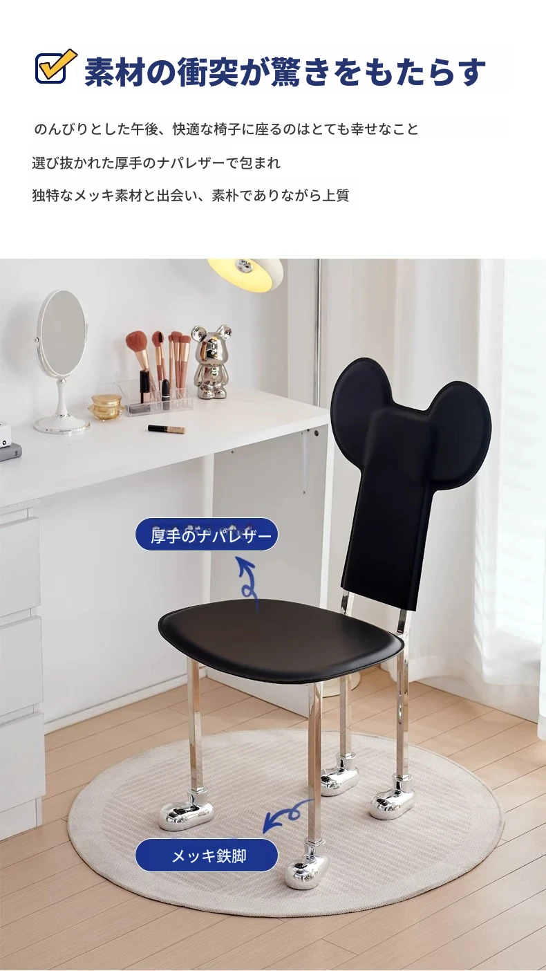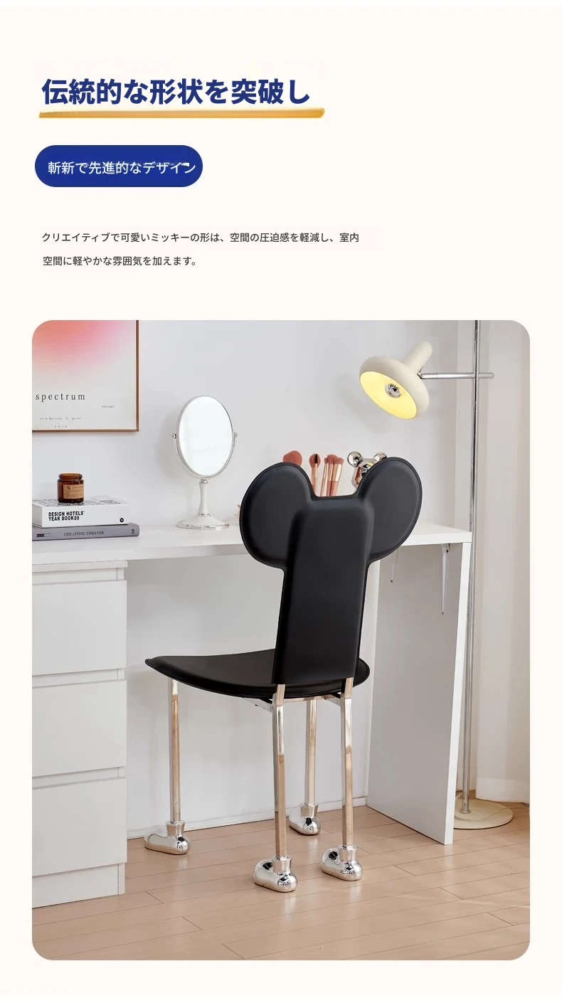 軽やかな高級感を演出する化粧台用椅子!背もたれ付きで快適な座り心地、女の子の寝室にぴったり。ミッキーのデザインが可愛らしく、特別なメイクアップタイムを演出します。