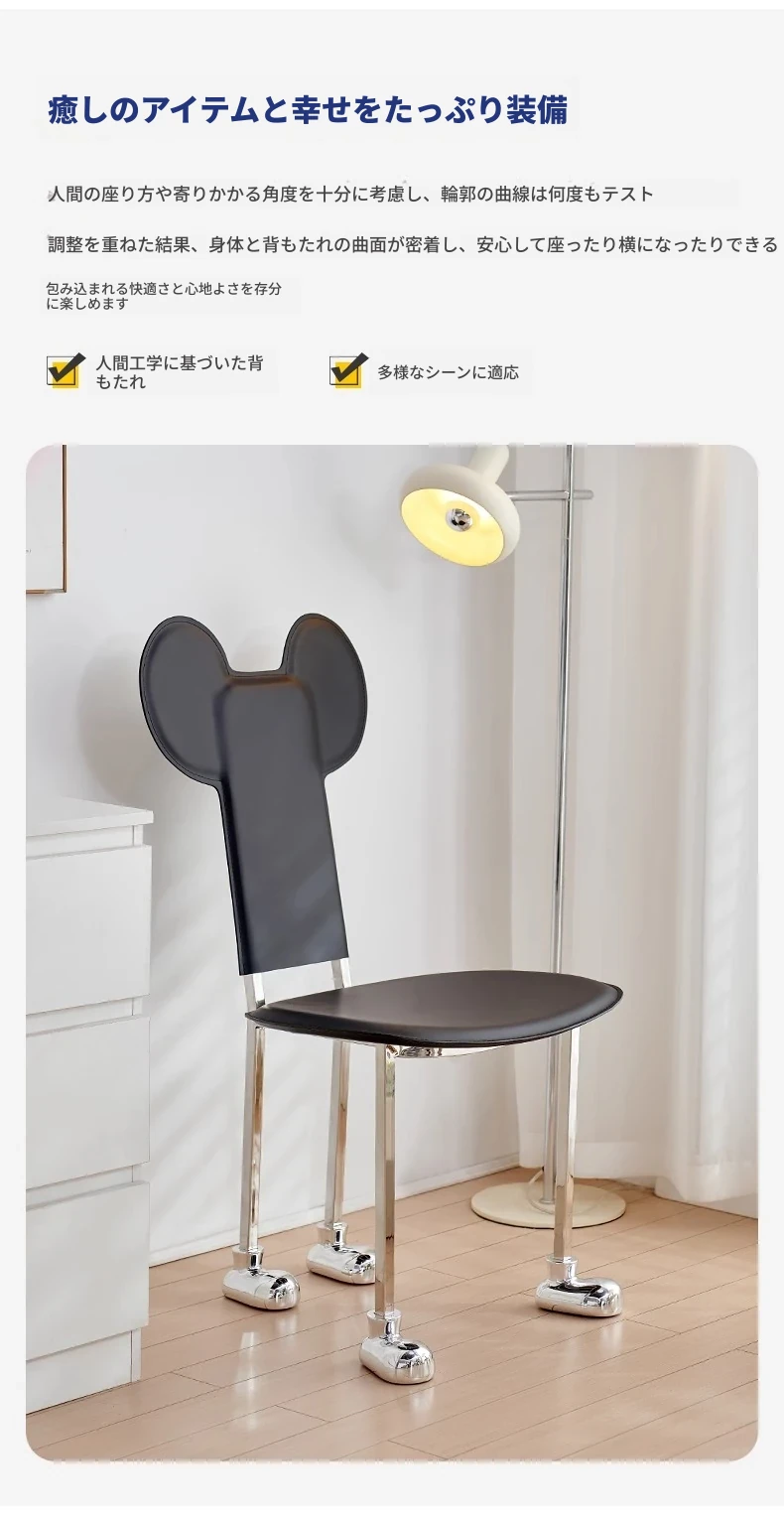 【ミッキーチェア】黒-輸入高品質パナ皮