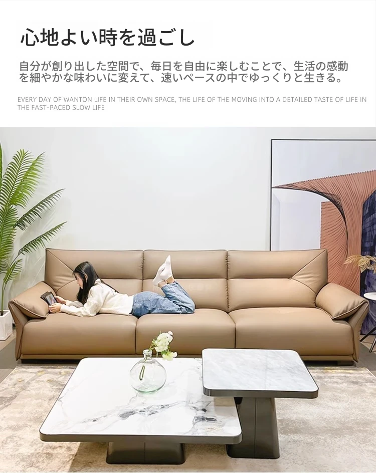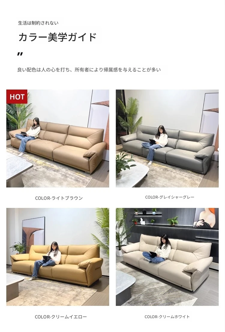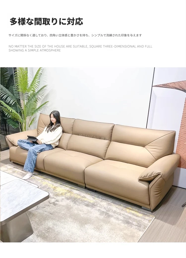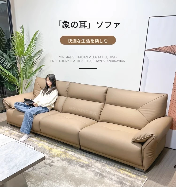 軽奢小型ハウス向け!大きな象耳デザインのイタリアンミニマル現代風ストレートリビングソファ。高級感あふれる本革使用で、快適な座り心地を提供します。おしゃれな空間を演出し、リラックスしたひとときをお楽しみください!