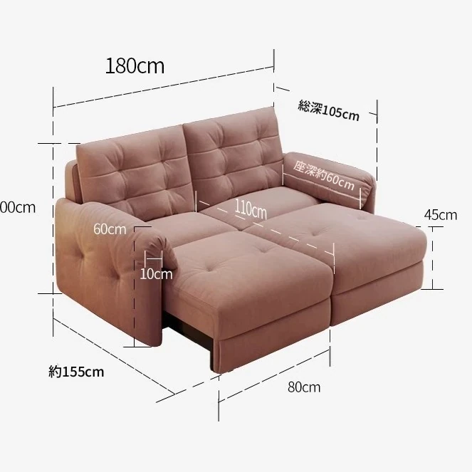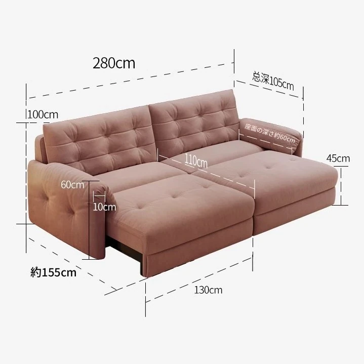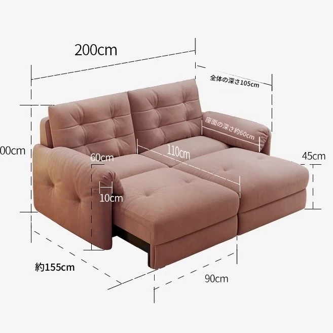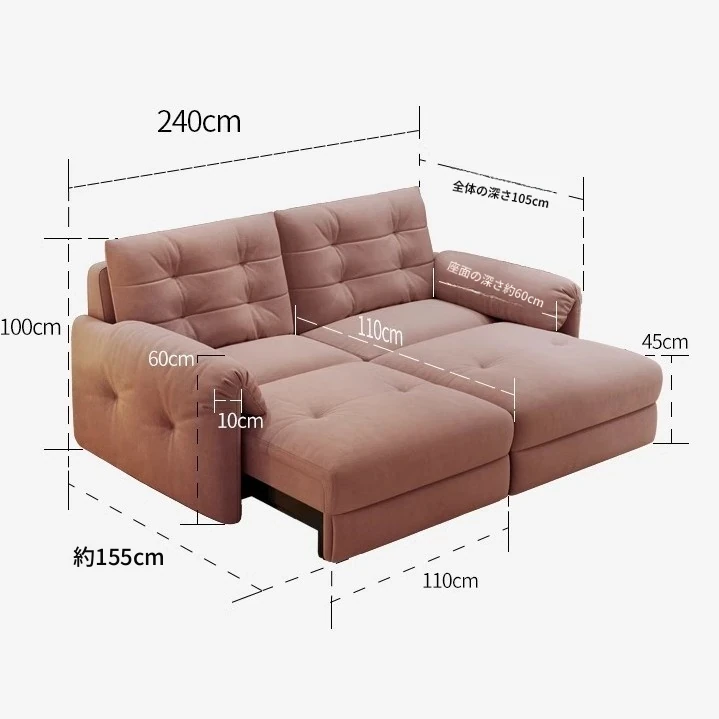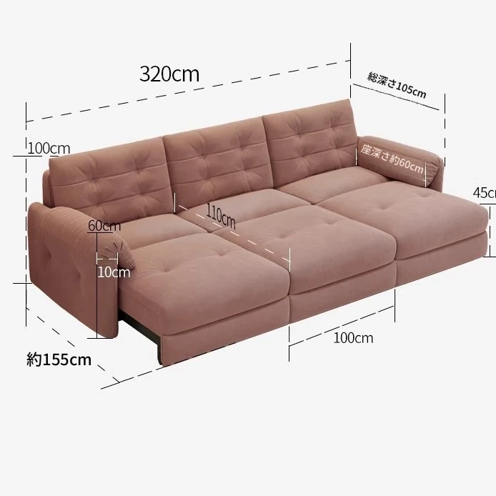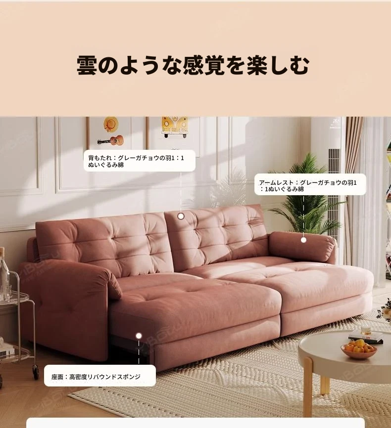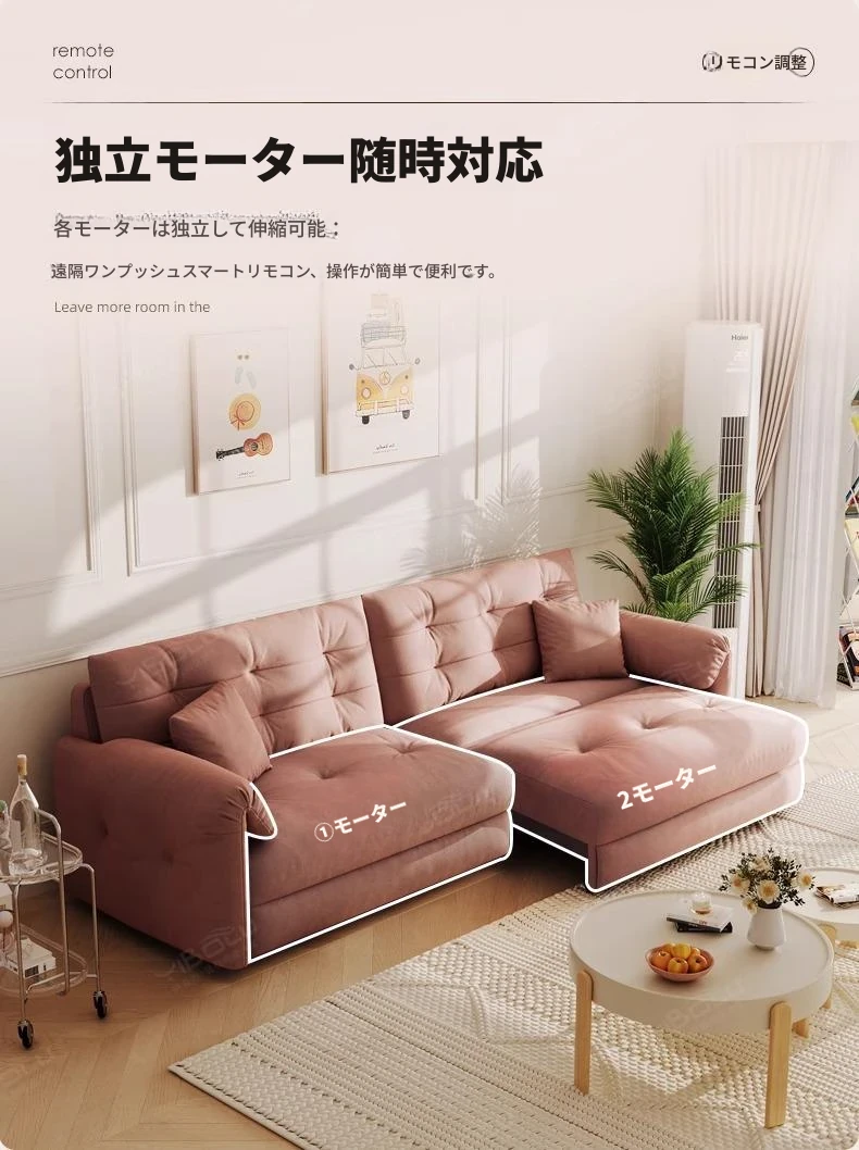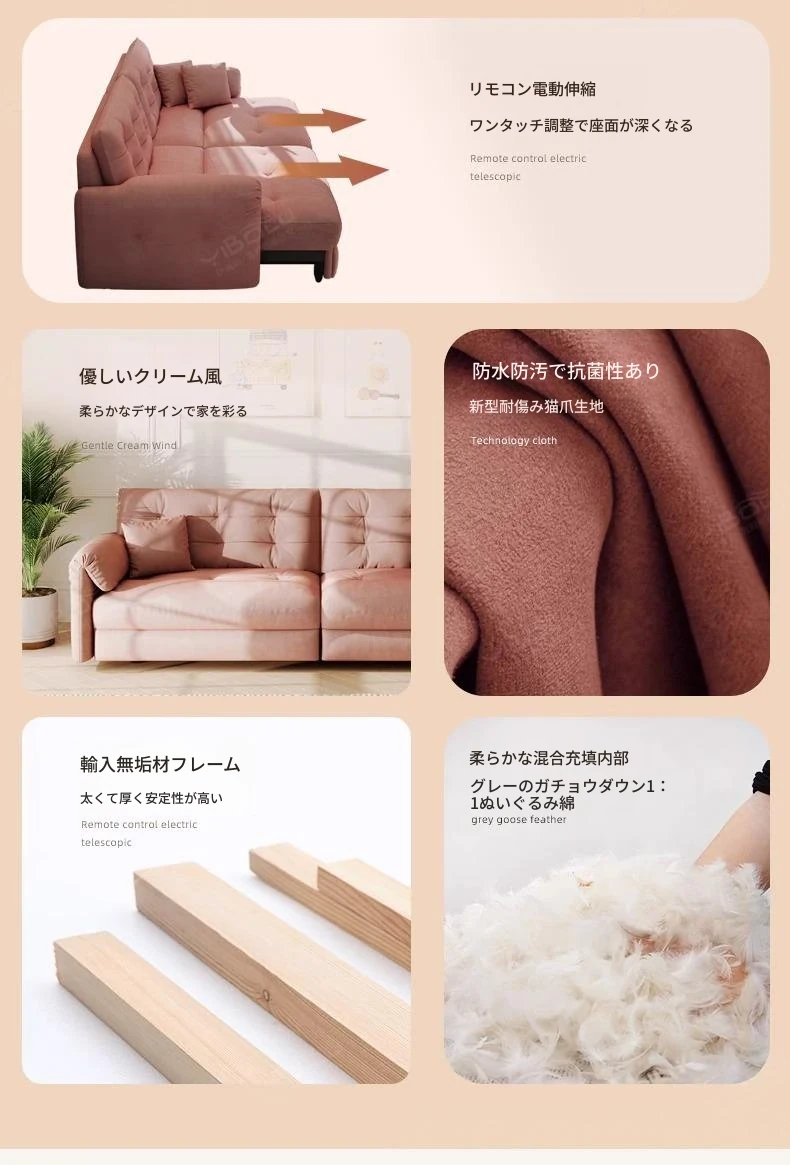 佛山製エレファントイヤー雲型電動ソファベッド - クリーム風現代的シンプルデザイン、リビングルームにぴったりの3人掛けソファ!快適な寝心地とスタイリッシュな見た目を兼ね備えた贅沢なアイテム!