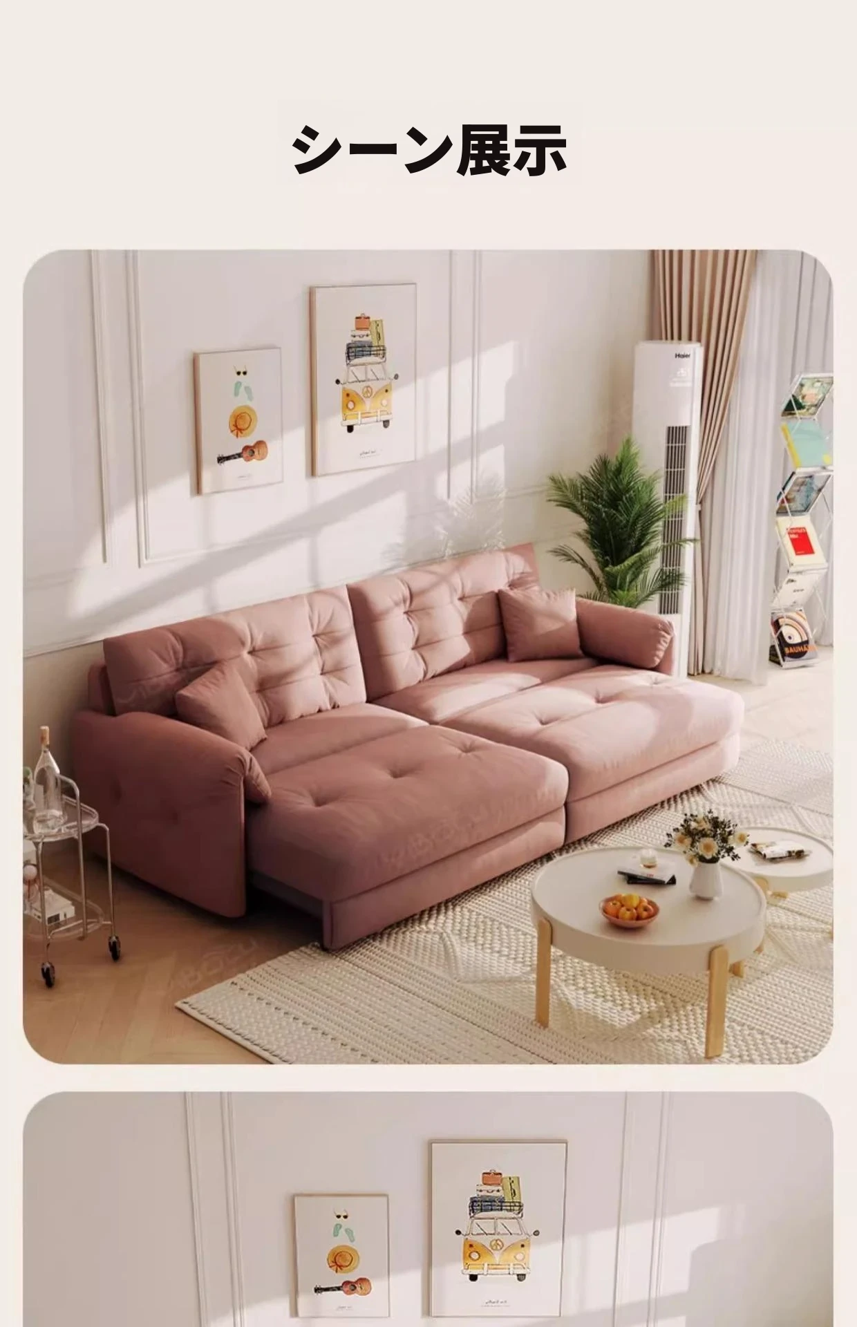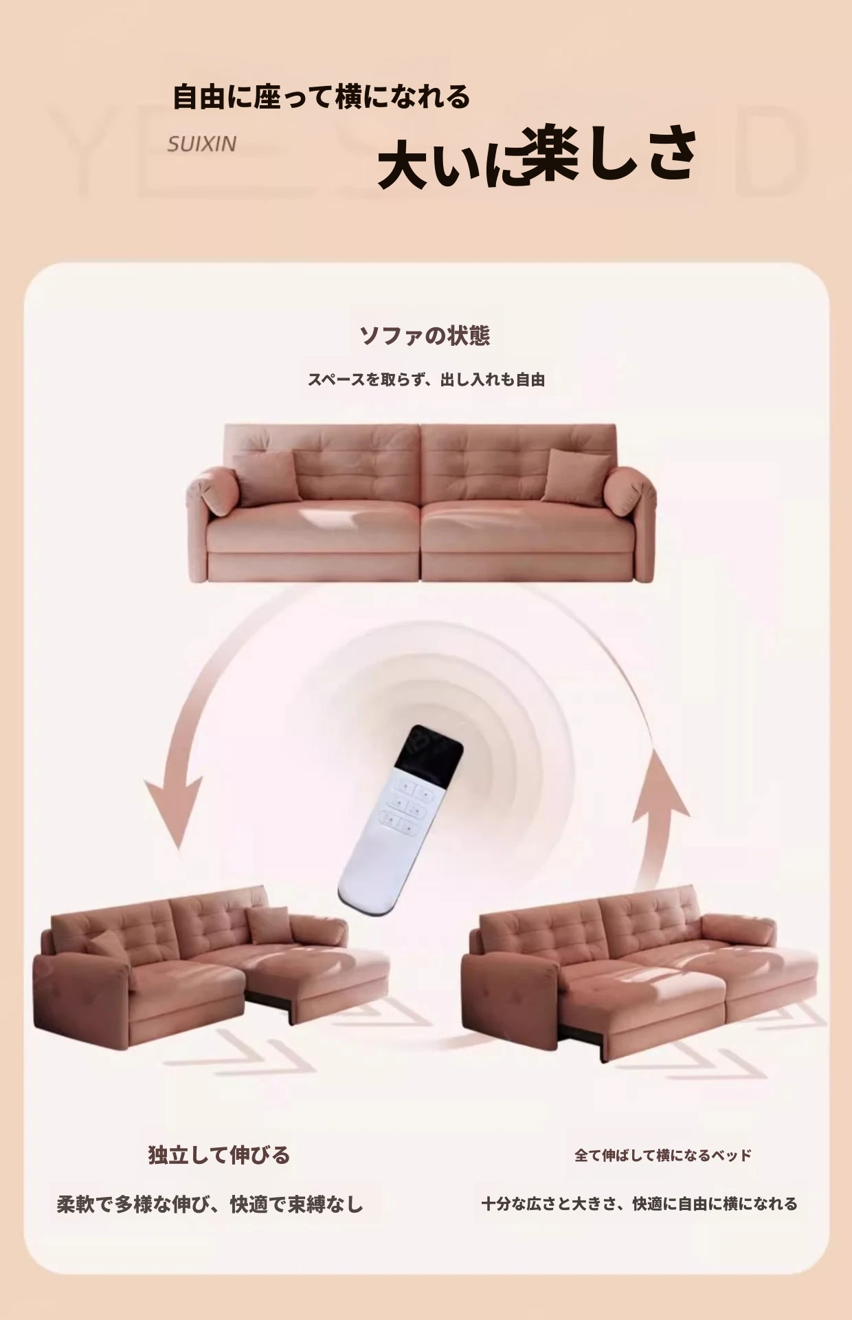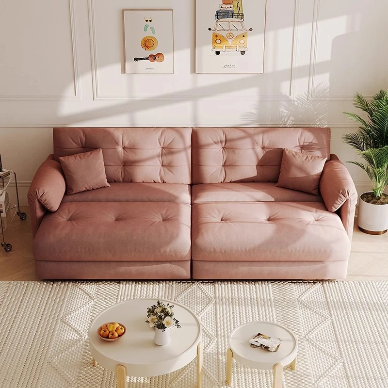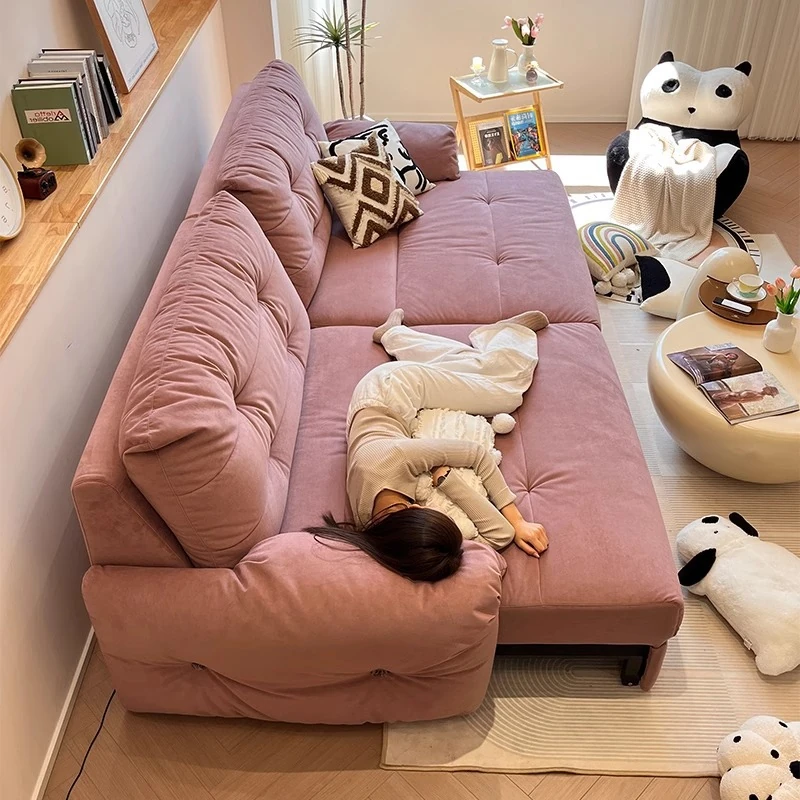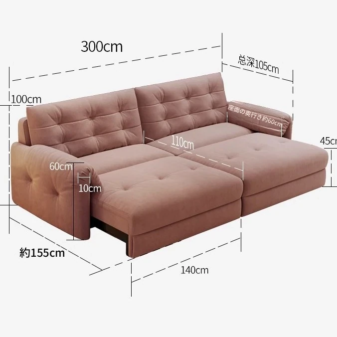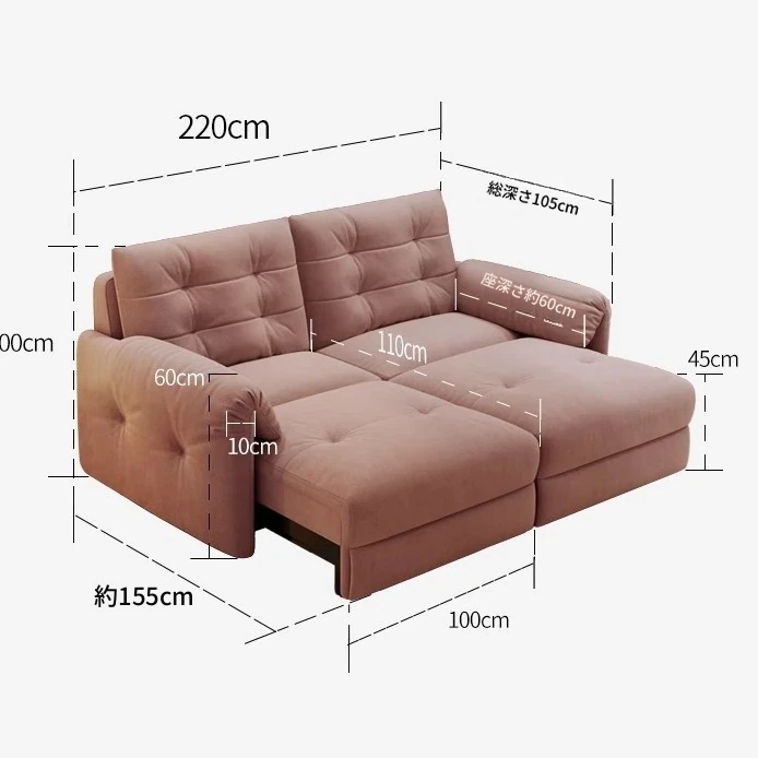 佛山製エレファントイヤー雲型電動ソファベッド - クリーム風現代的シンプルデザイン、リビングルームにぴったりの3人掛けソファ!快適な寝心地とスタイリッシュな見た目を兼ね備えた贅沢なアイテム!
