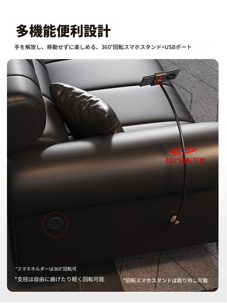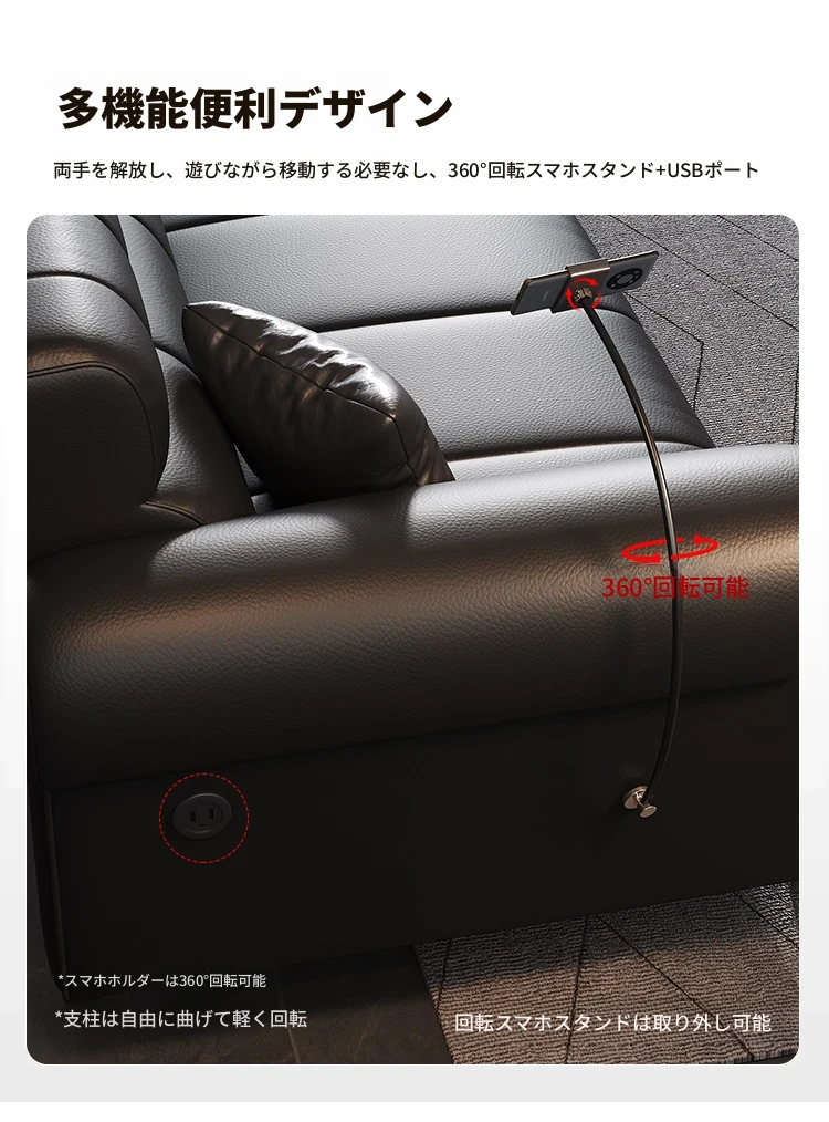 S級ナッパ本革丨耐摩耗、手入れ簡単【スマホスタンド付き+多機能充電】