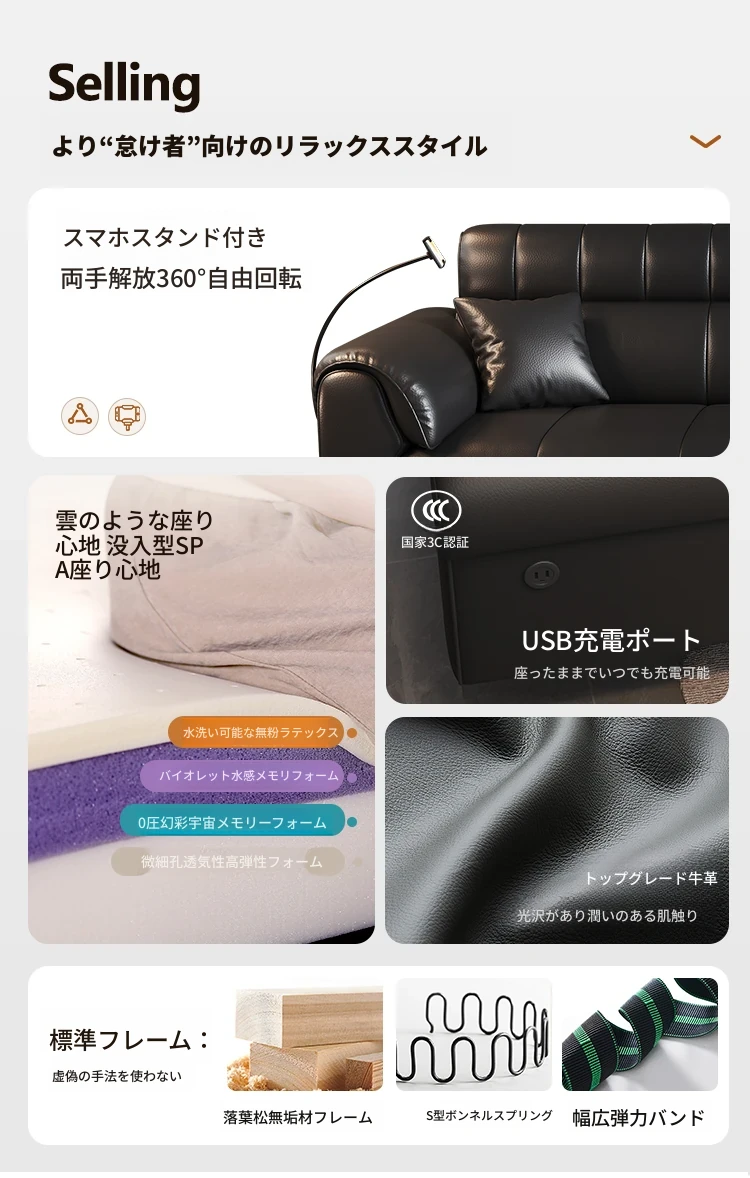 2.3メートル3人掛け【55D宇宙座感】0圧満点サポート