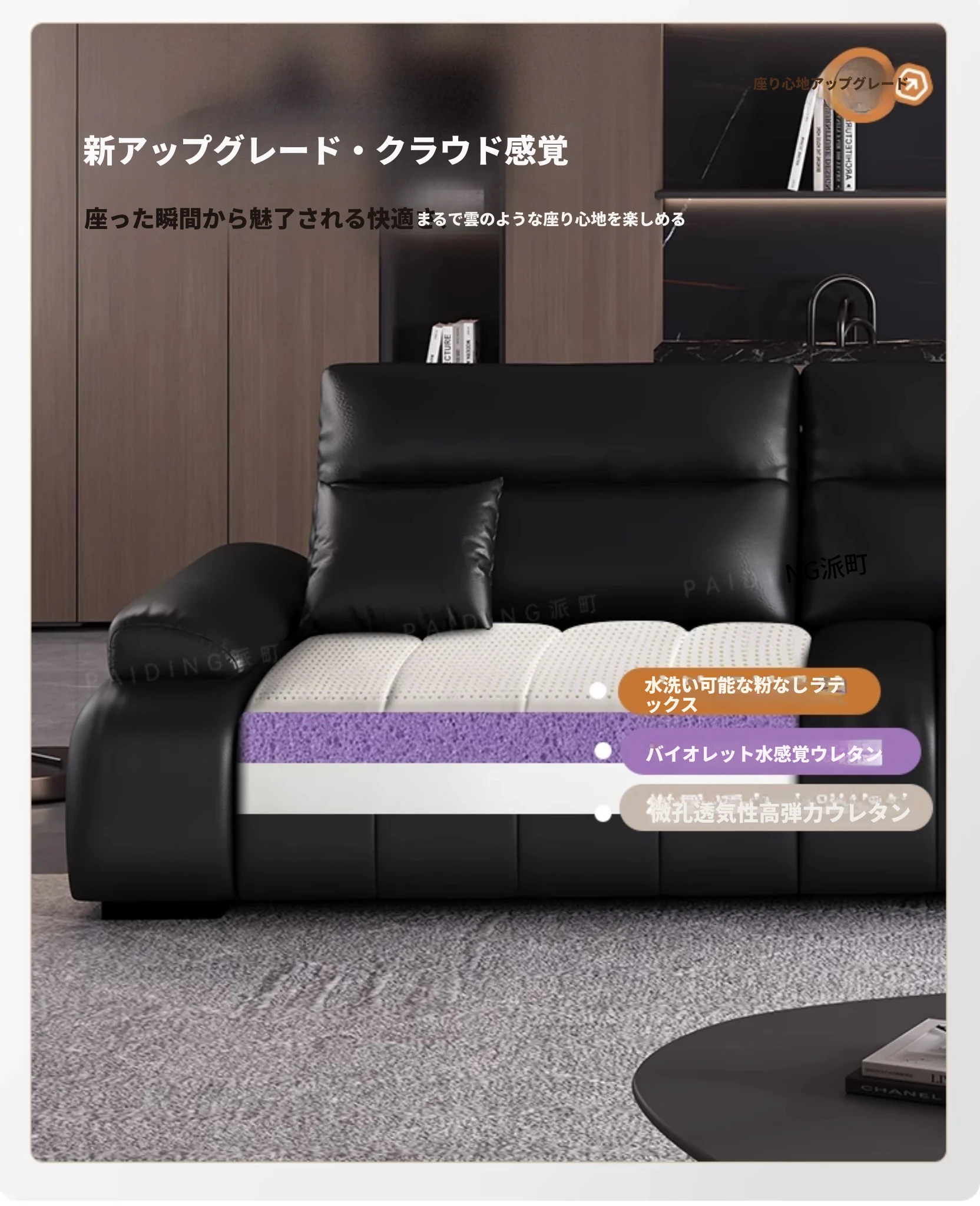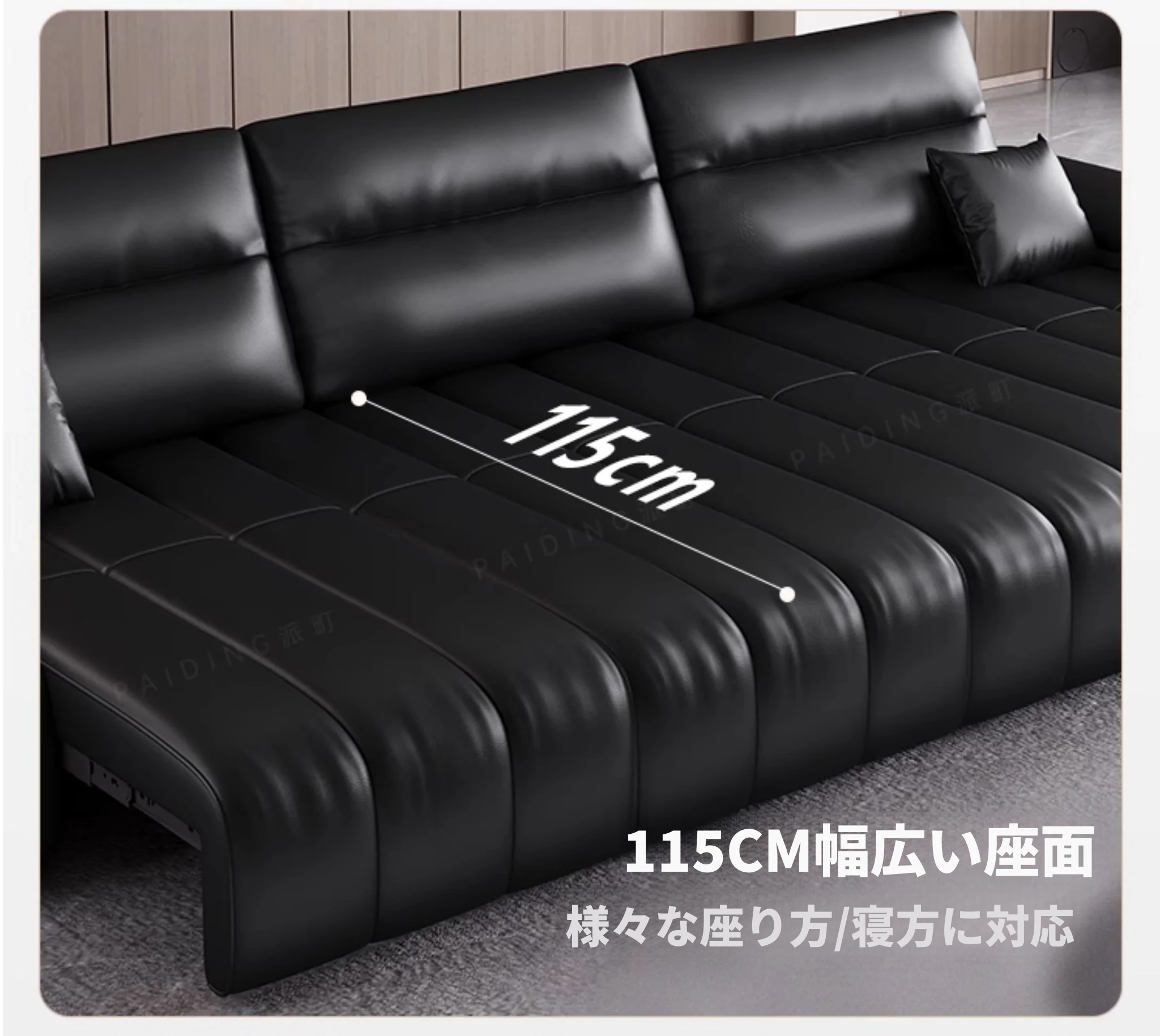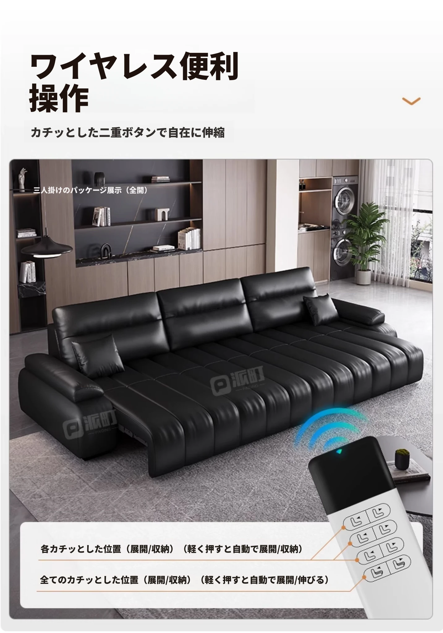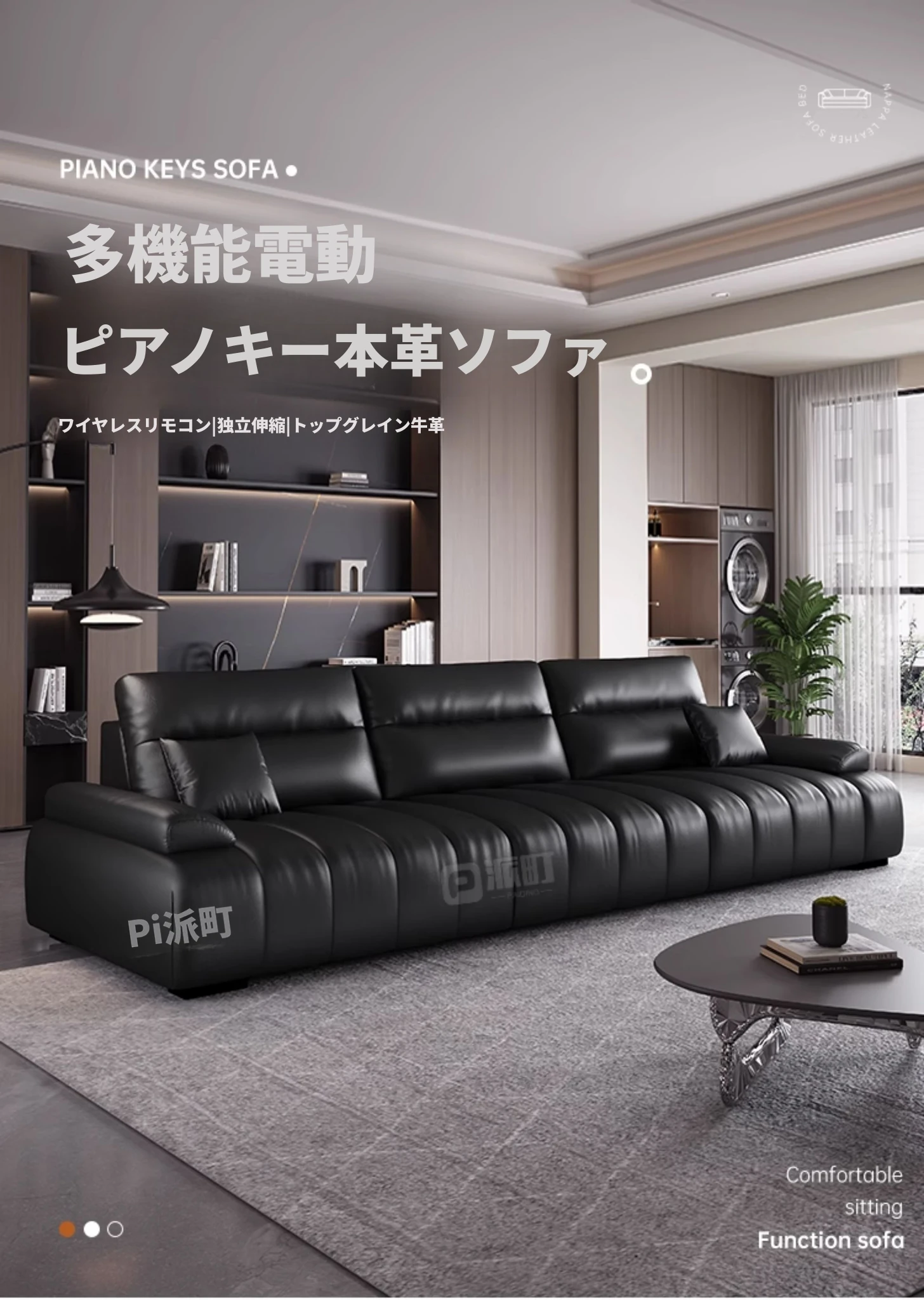 ピアノキー電動ソファ 高級本革 一文字型収納付き 壁に寄せられるイタリアンミニマリズム 大座面 深いデザイン - 贅沢なリラックス空間を実現!