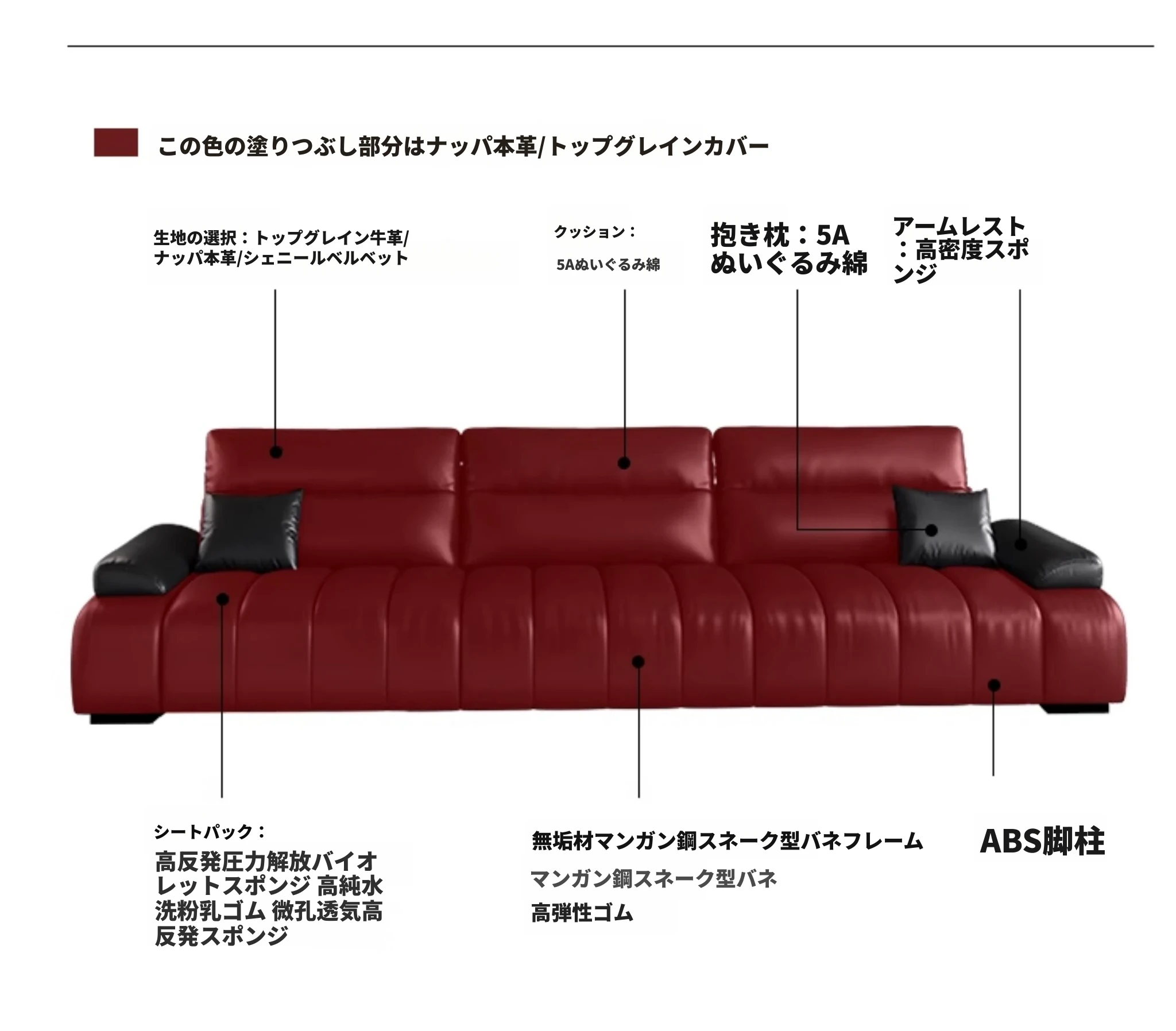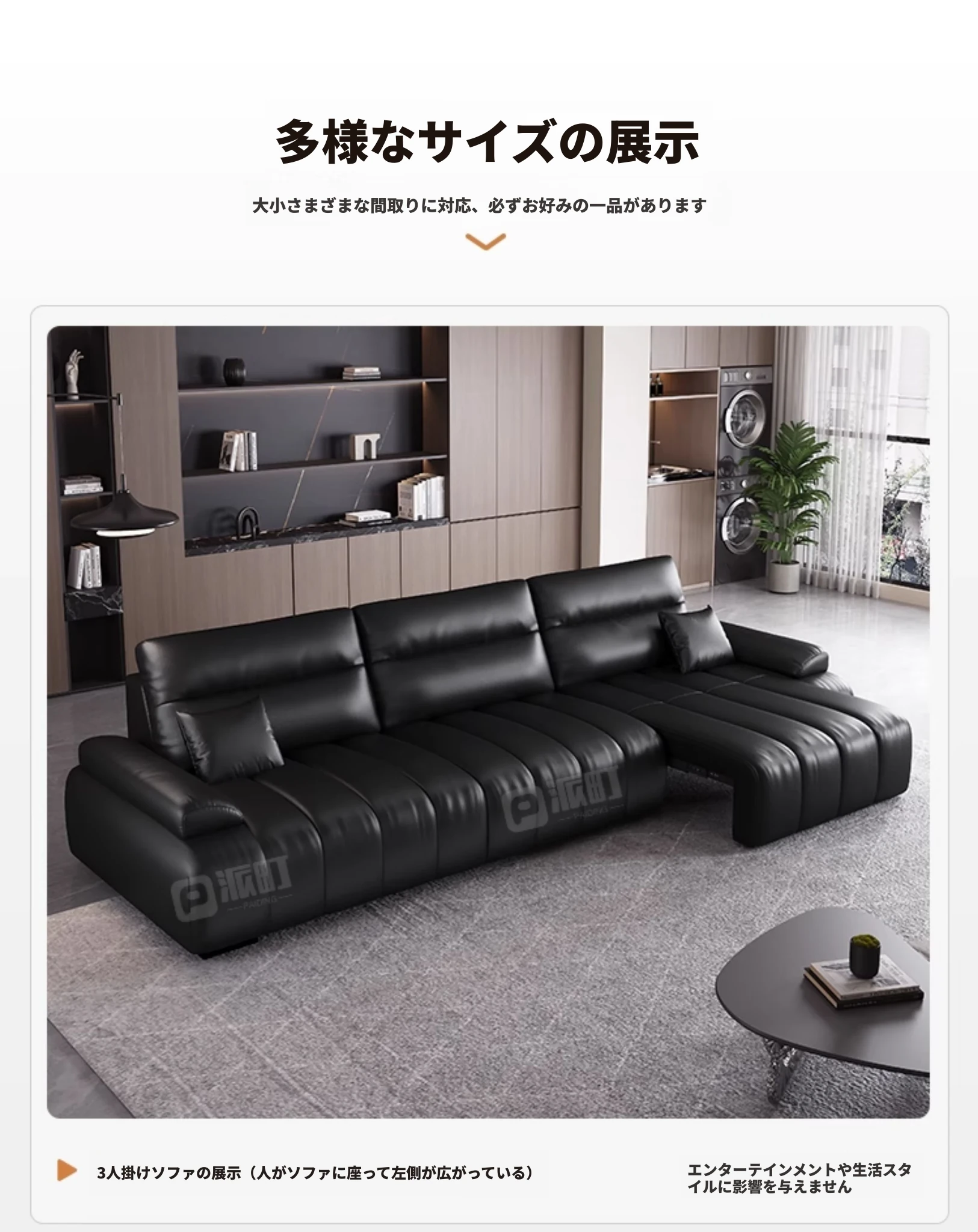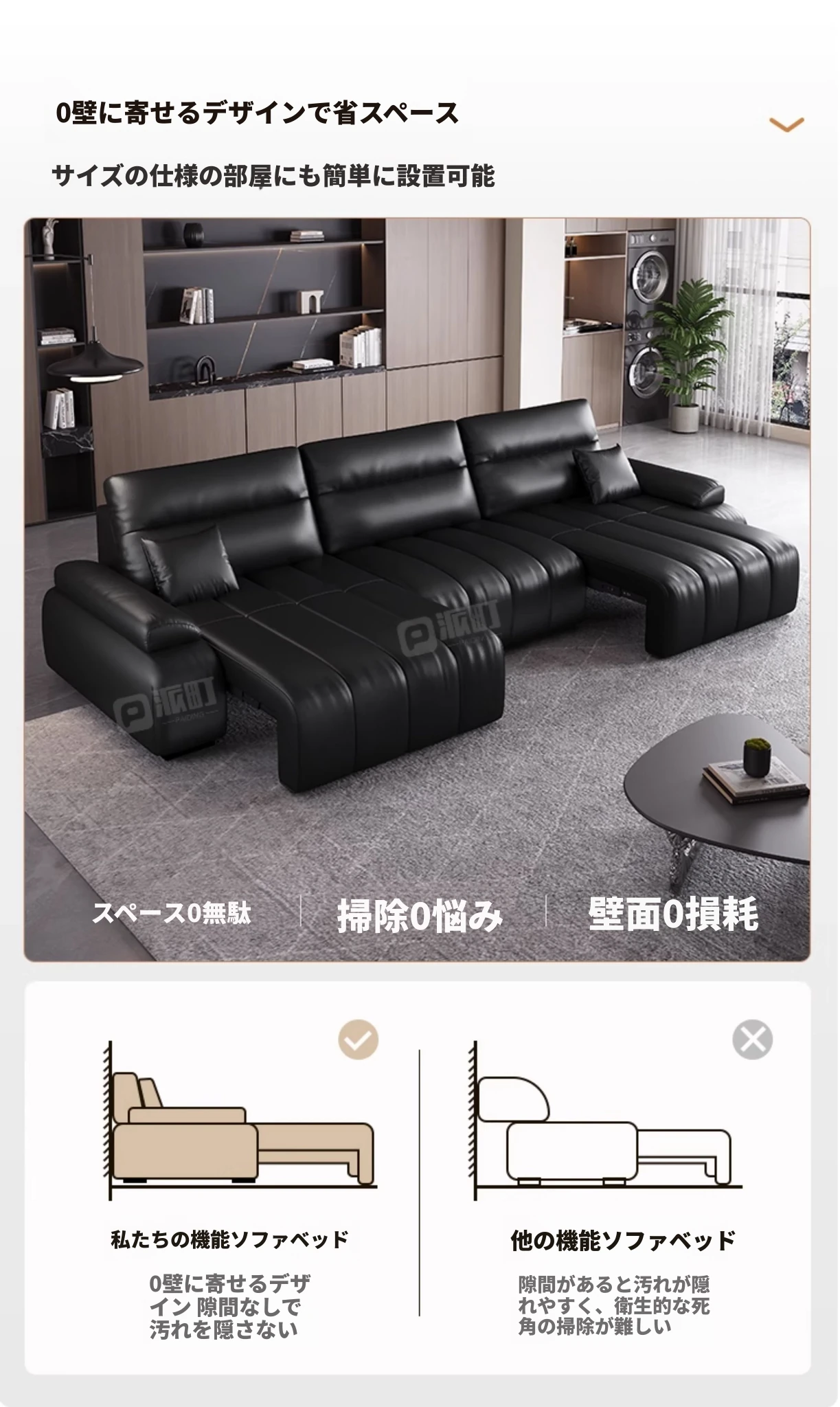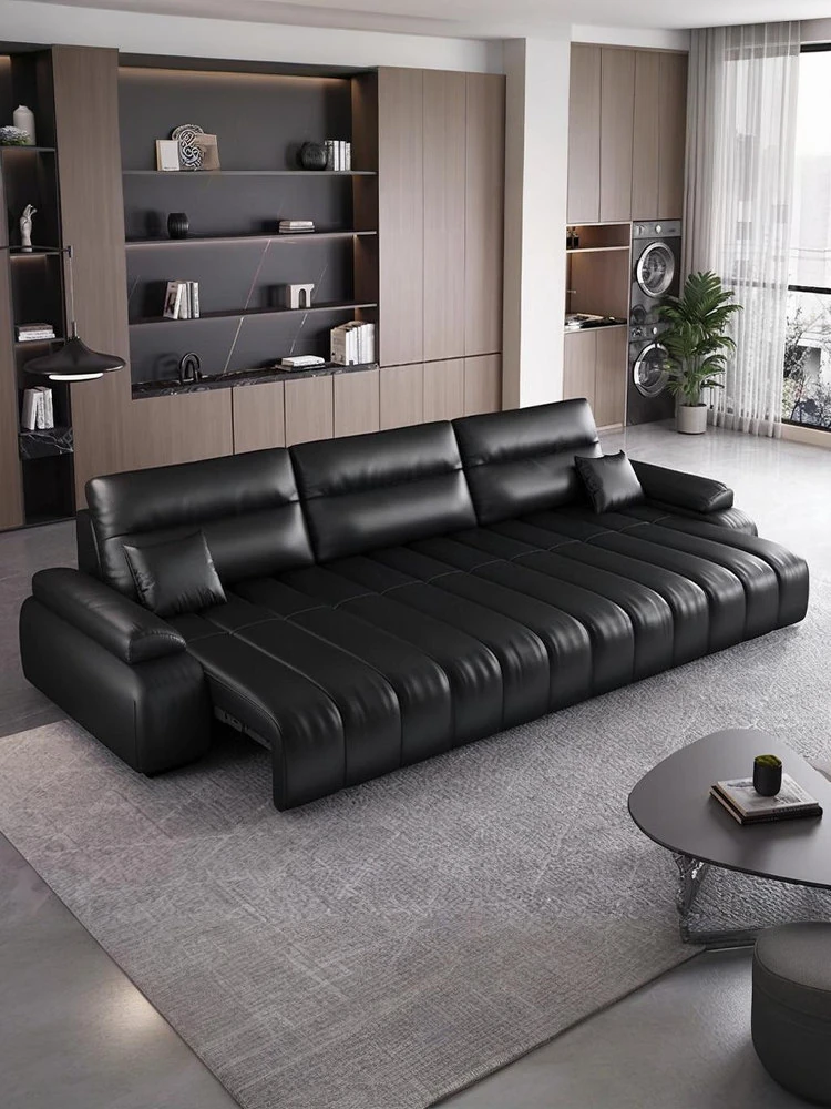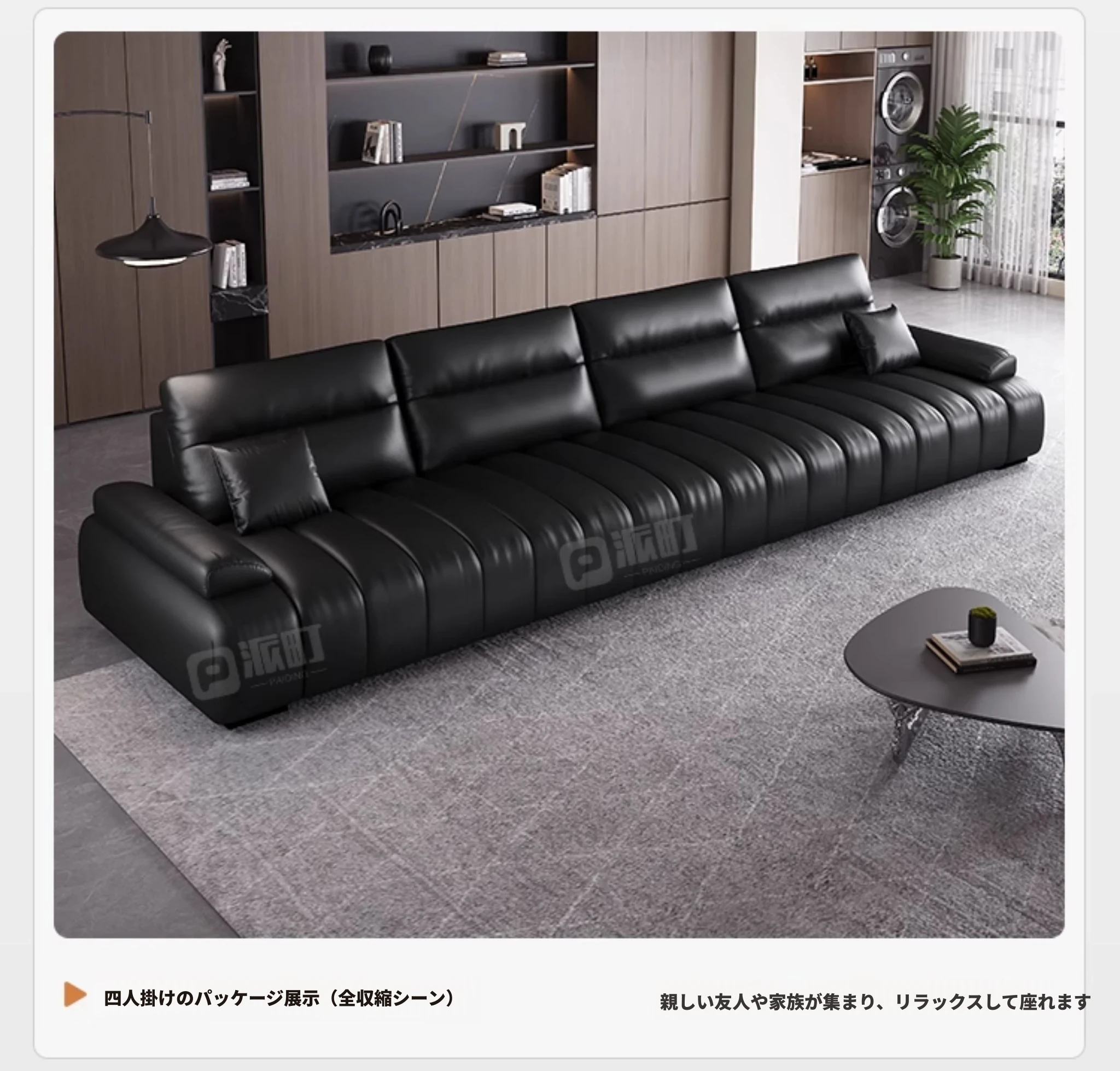 ピアノキー電動ソファ 高級本革 一文字型収納付き 壁に寄せられるイタリアンミニマリズム 大座面 深いデザイン - 贅沢なリラックス空間を実現!