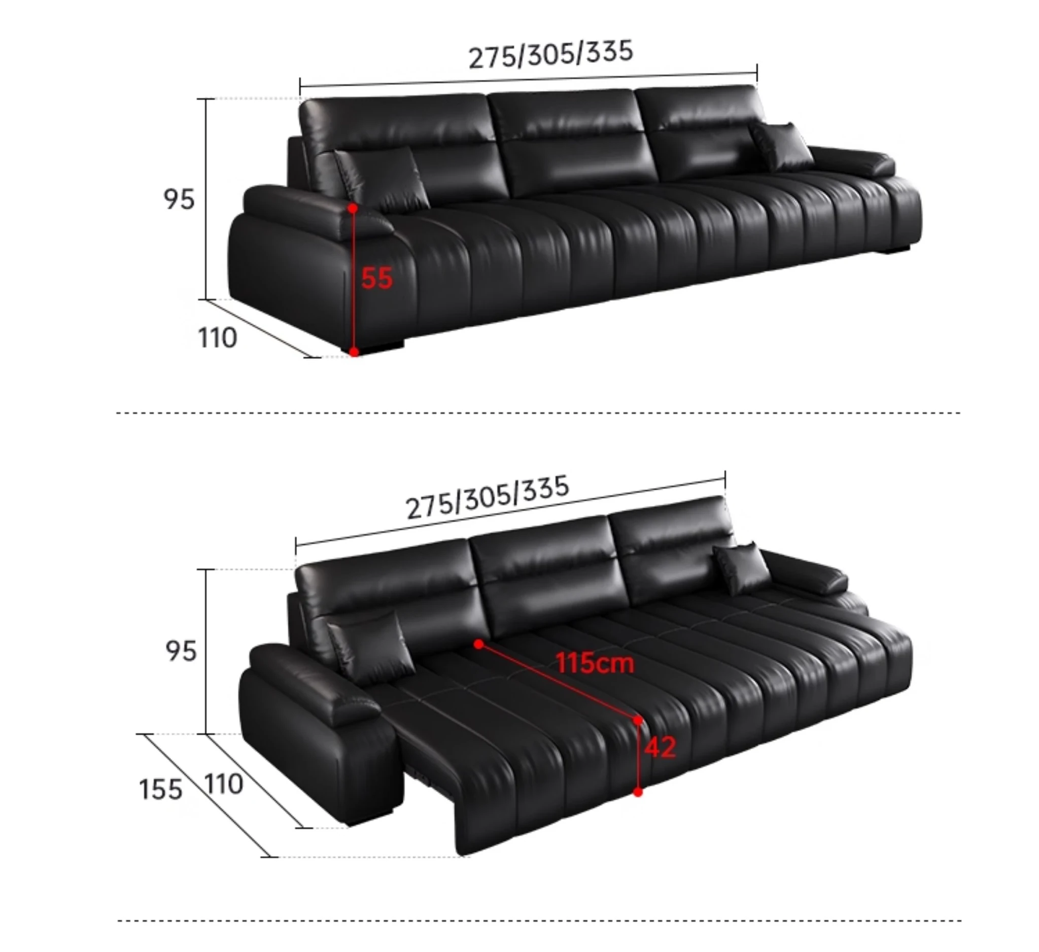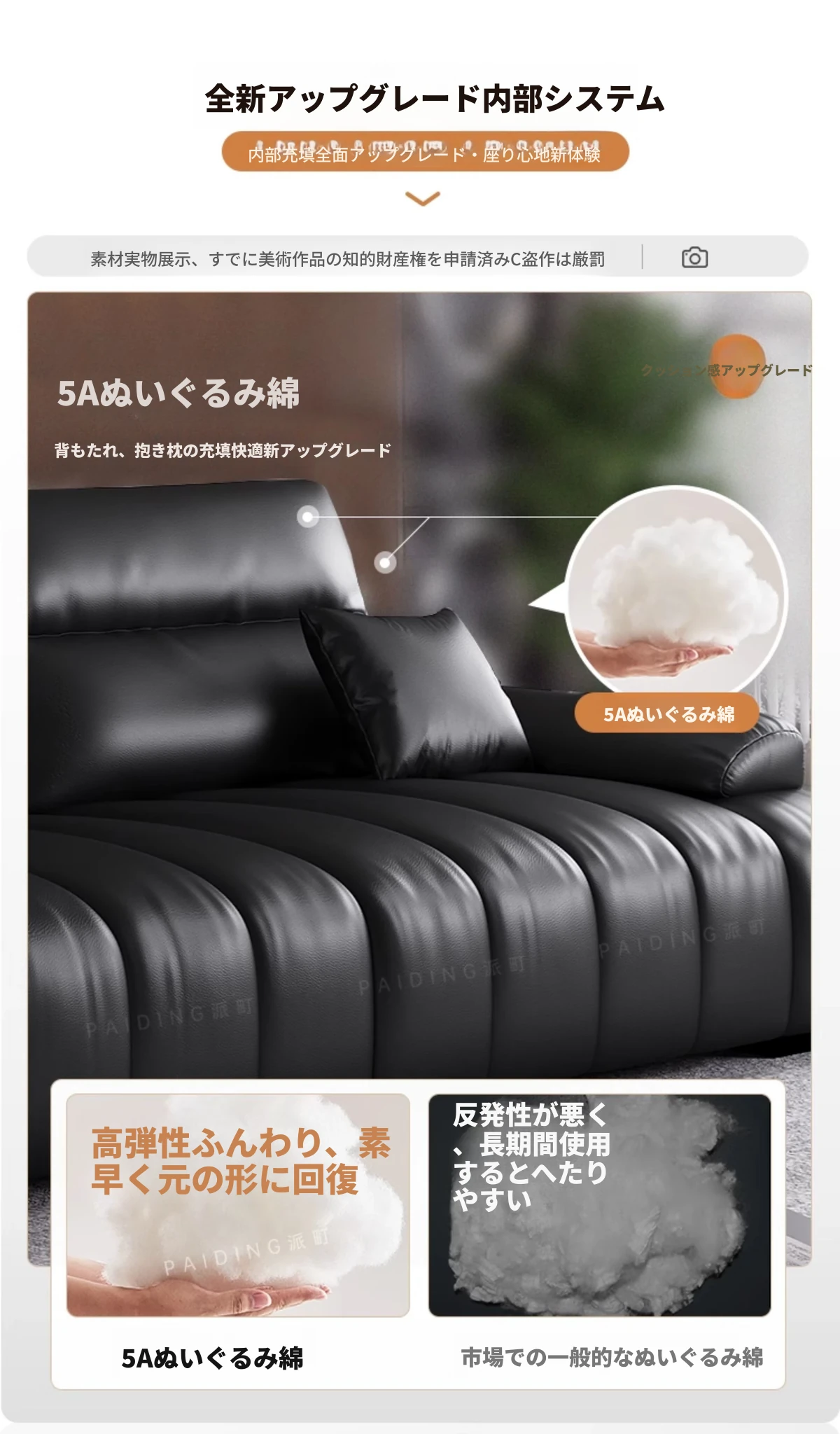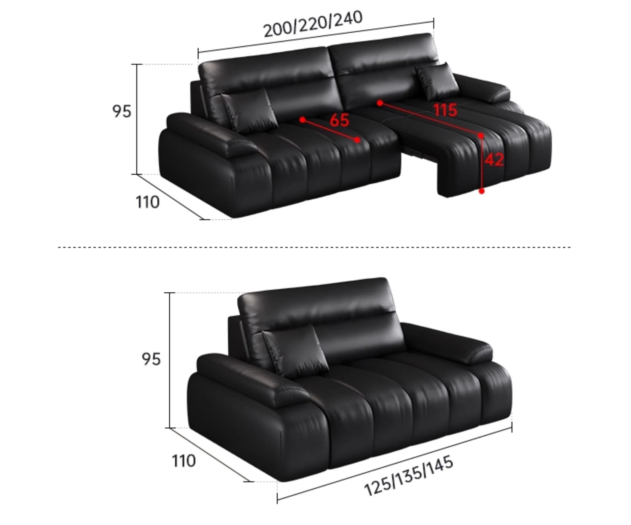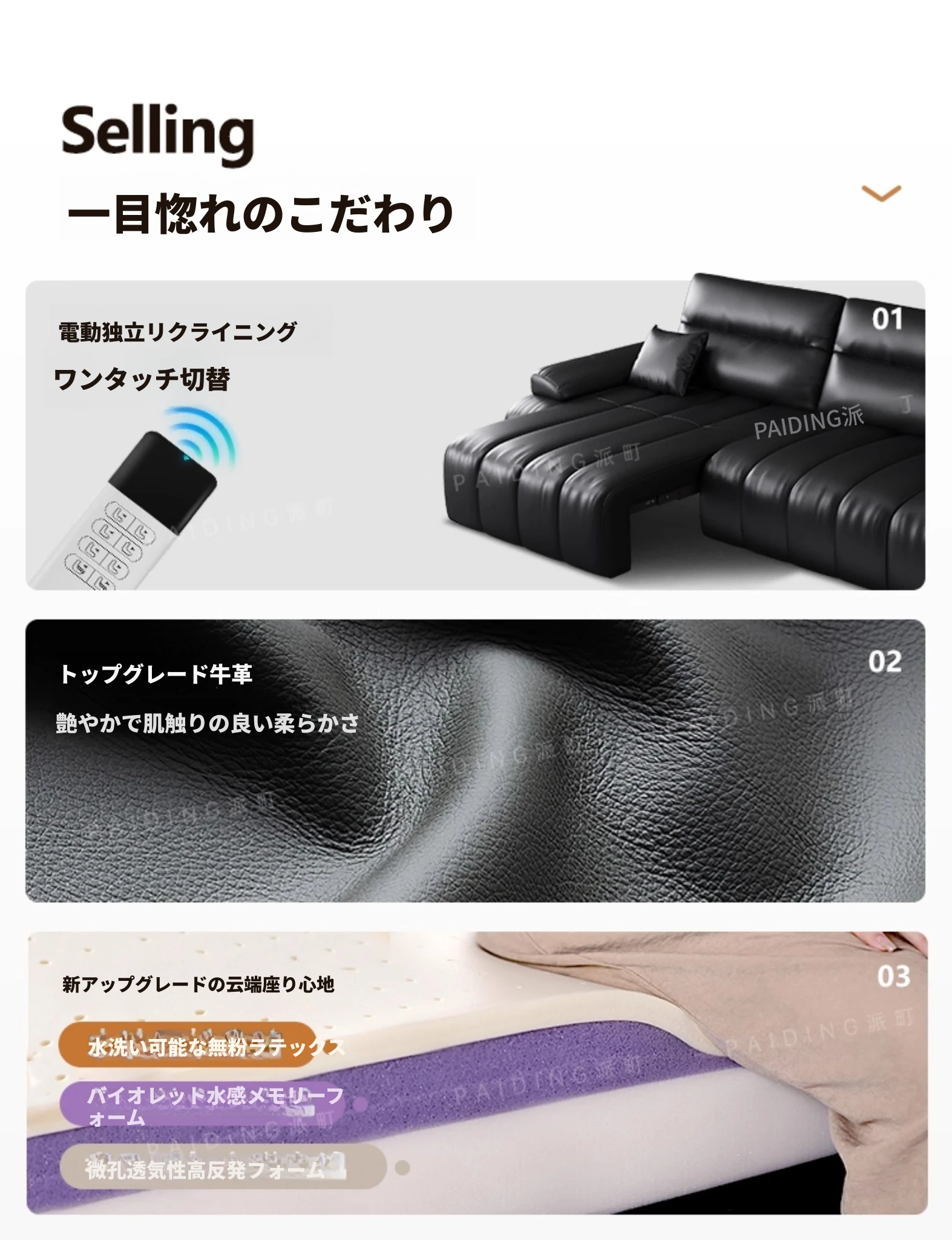 ピアノキー電動ソファ 高級本革 一文字型収納付き 壁に寄せられるイタリアンミニマリズム 大座面 深いデザイン - 贅沢なリラックス空間を実現!