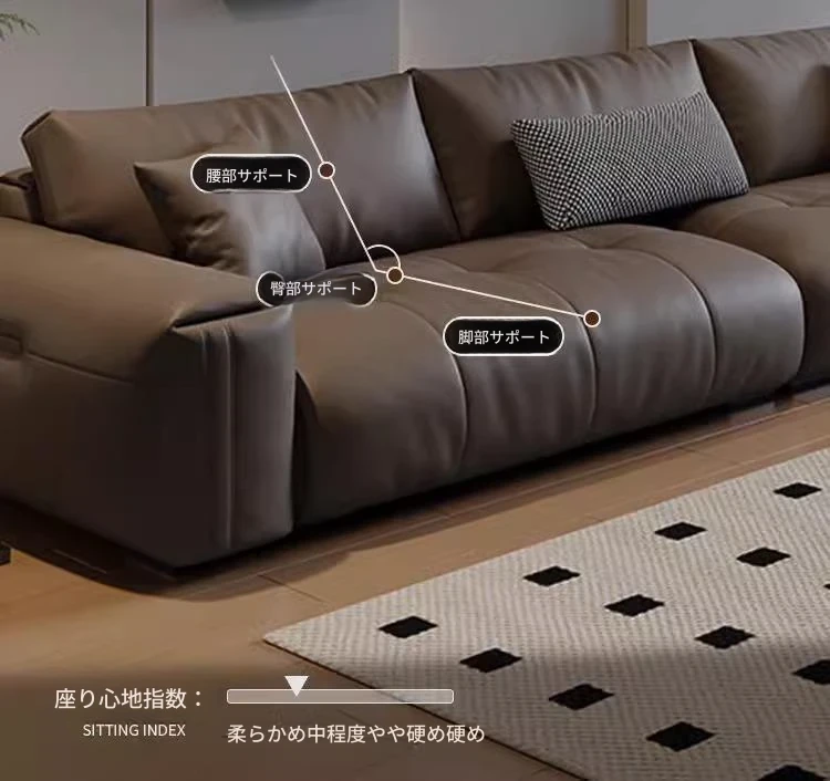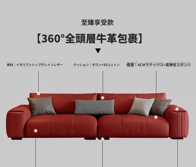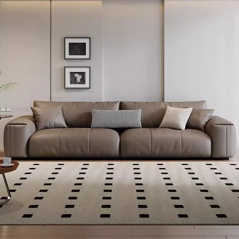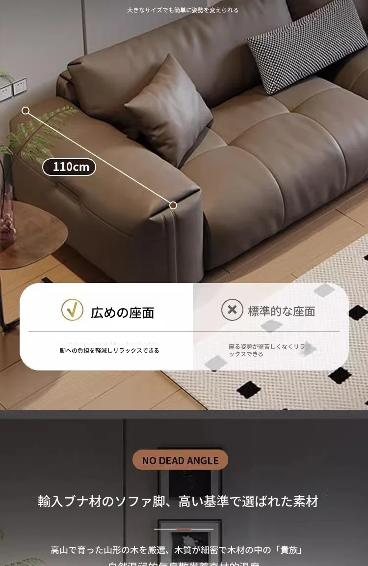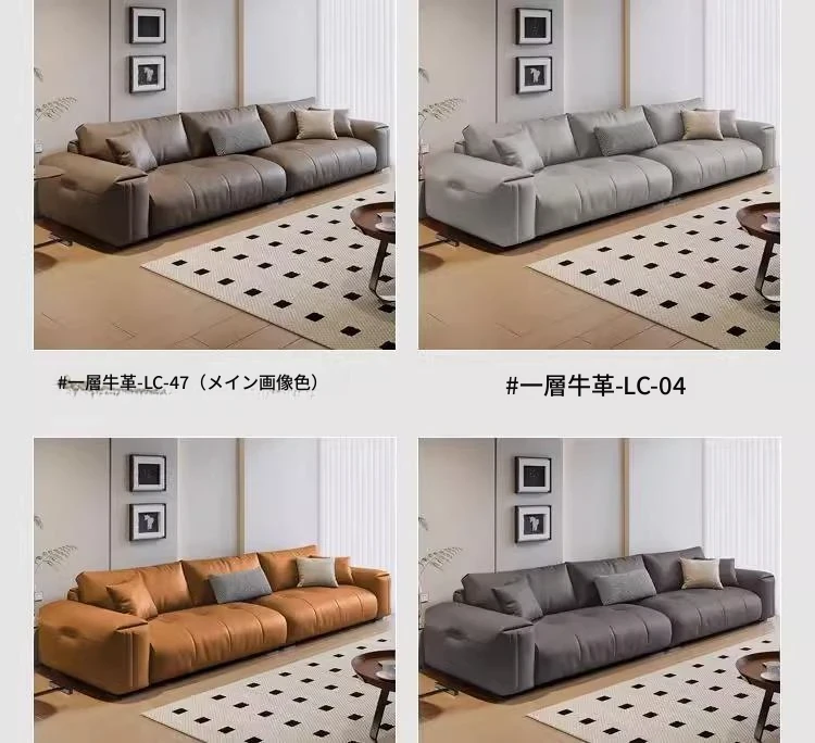 イタリアンミニマリズムの本革ソファ - 豆腐ブロックスタイルで、シンプルでモダンなデザイン。広々とした座面と深い背もたれで、リビングルームにぴったりの大人のための贅沢なブラック&グレー。あなたの空間を洗練された雰囲気に変えます!