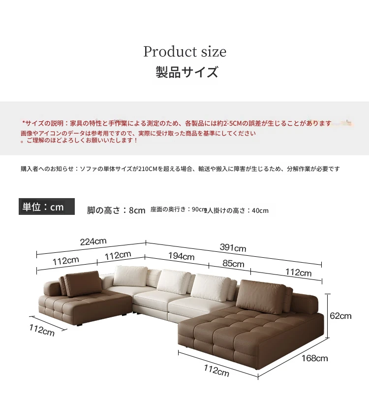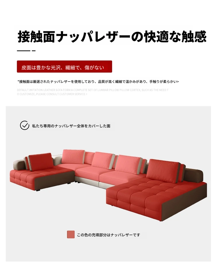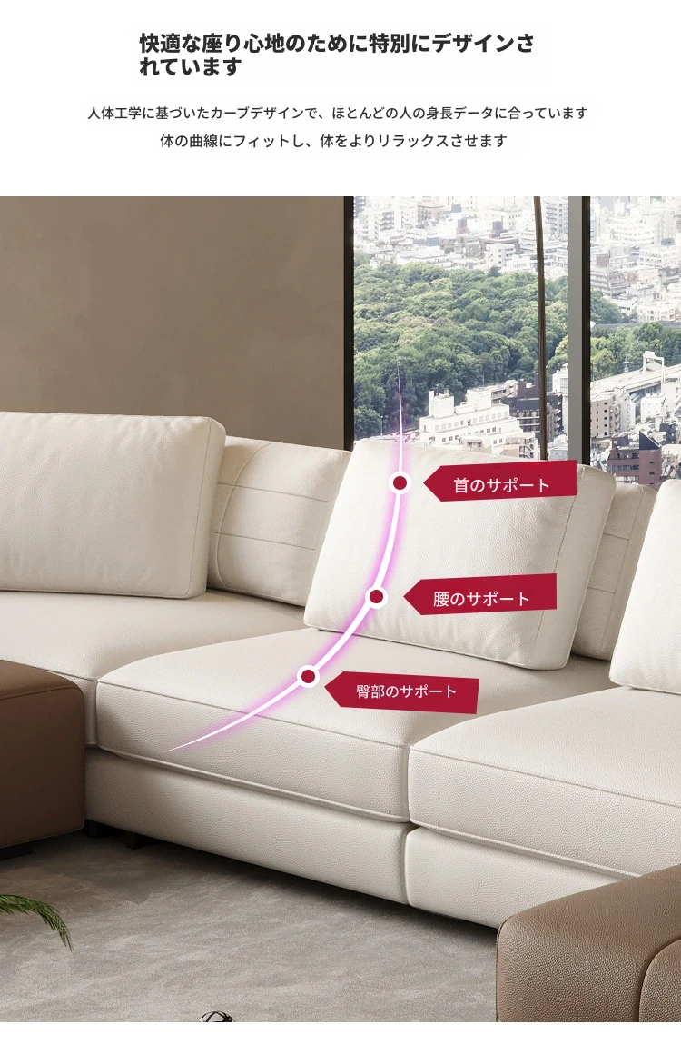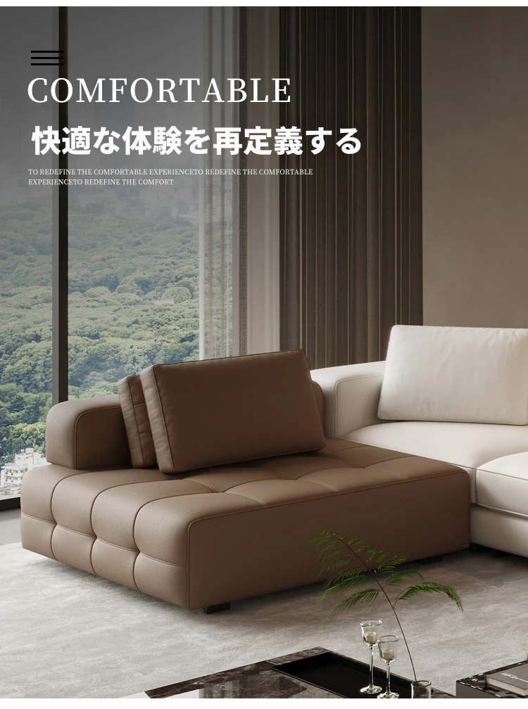 ローレンス ブレザーソファ 本革 イタリアンミニマリズム デザイン モジュール式 ヴィラ向け 大平面用 高級感あふれるシンプルさを追求した逸品!