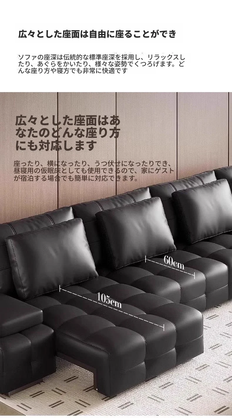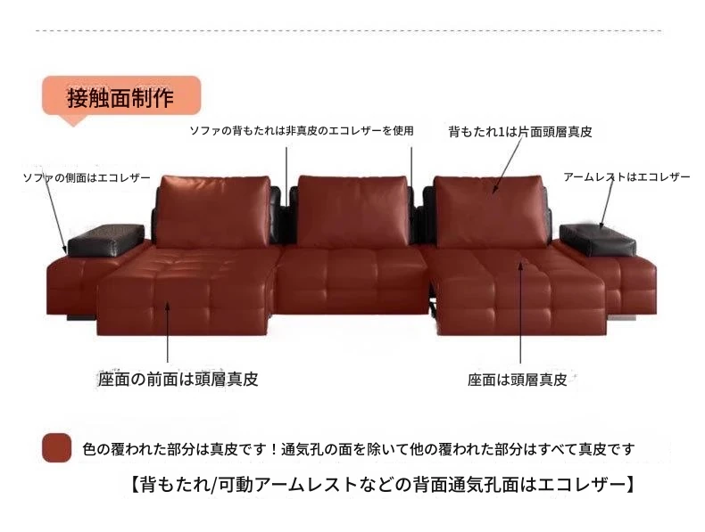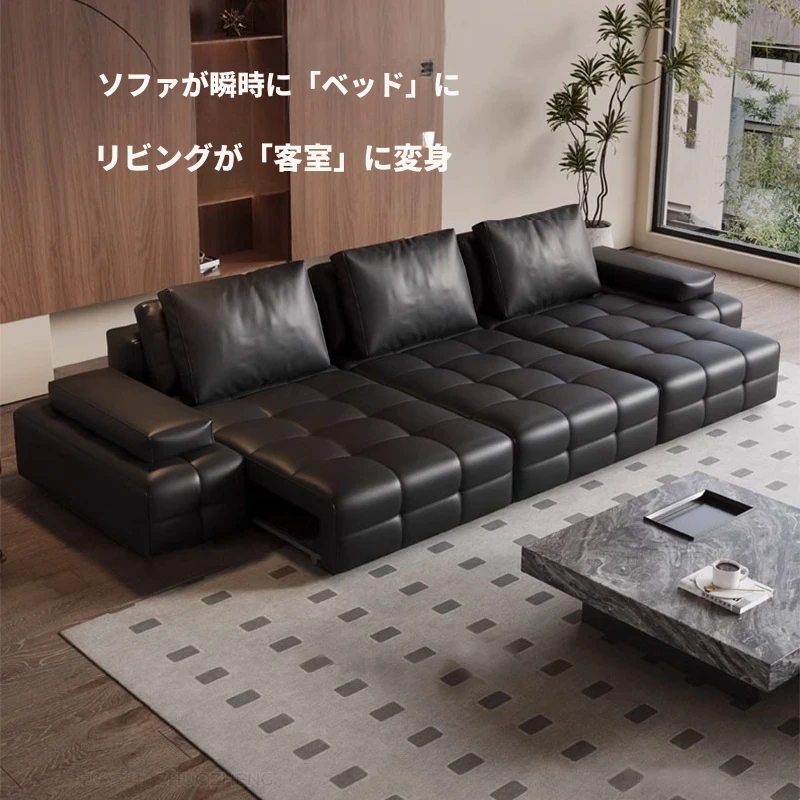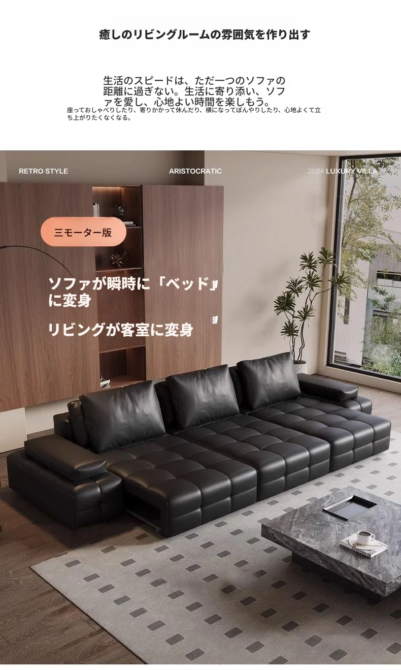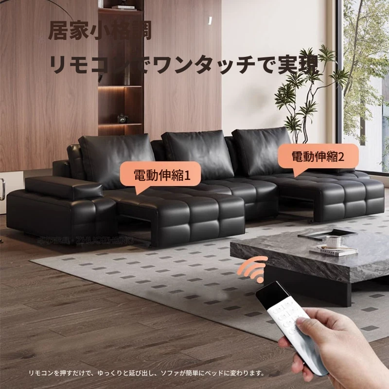 ローレンス本革電動機能ソファ - スマートリモコン付き、ラグジュアリーなデザインで、快適なリビング空間を演出。多機能ソファベッドとしても使用可能!