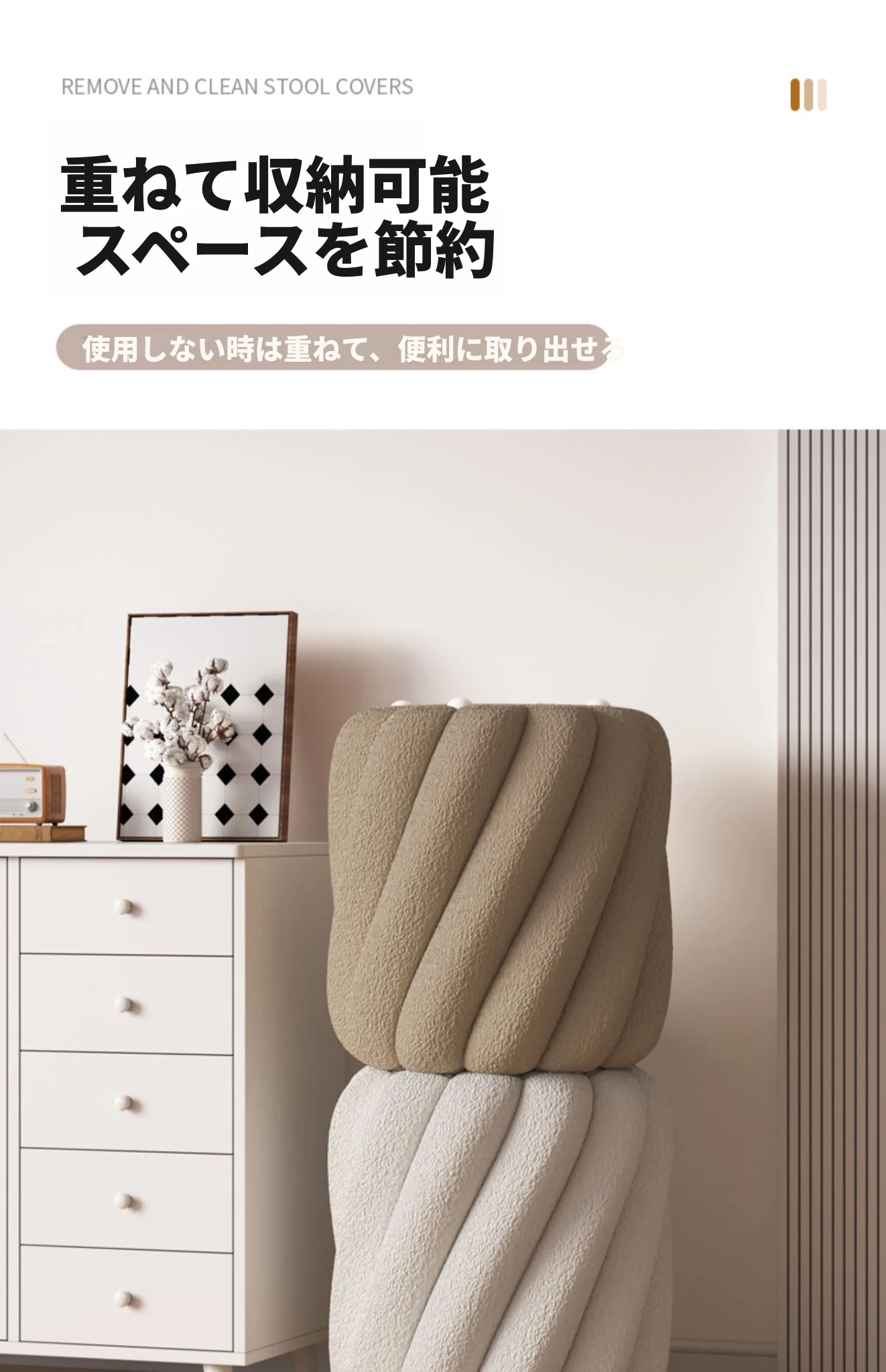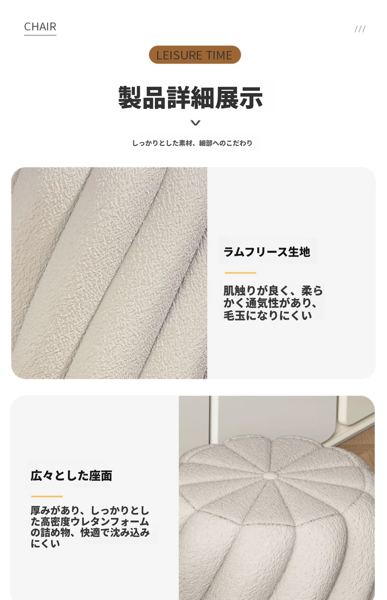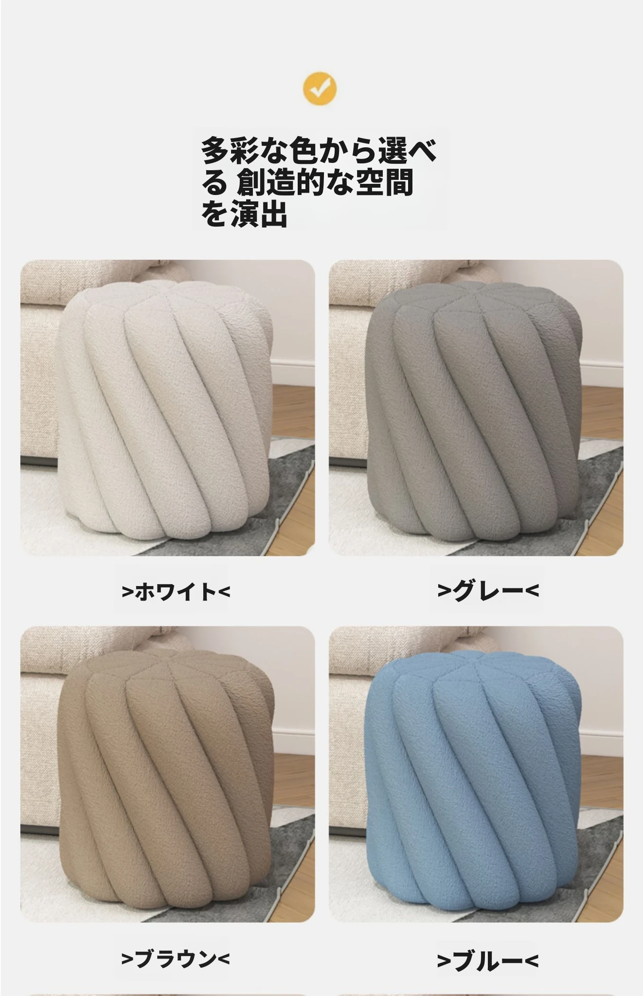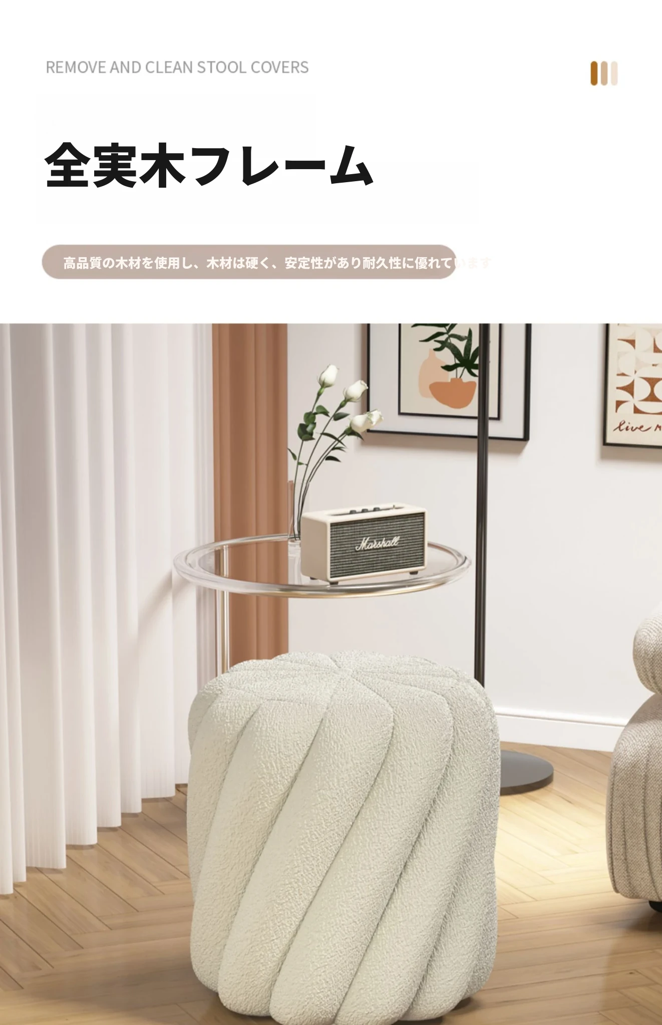 ラグジュアリー感溢れるシープスキンメイクアップスツール|女性のための上品な化粧台椅子|寝室やドレッシングルームにぴったりの丸型スツール|靴を履き替える時にも使える便利なアイテム!