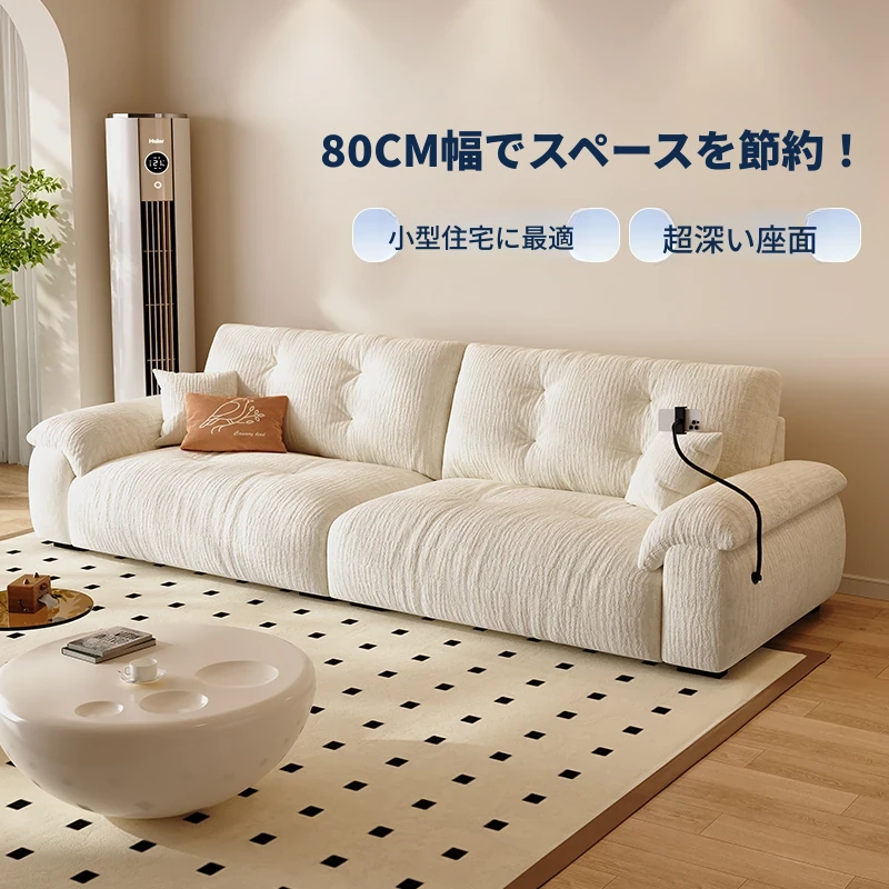 国補の80cm幅の猫の爪研ぎ布製ソファ!小さなリビングにぴったりな最新モダンシンプルデザイン、クリーミーな雲のようなソファで、快適な座り心地をお楽しみください。