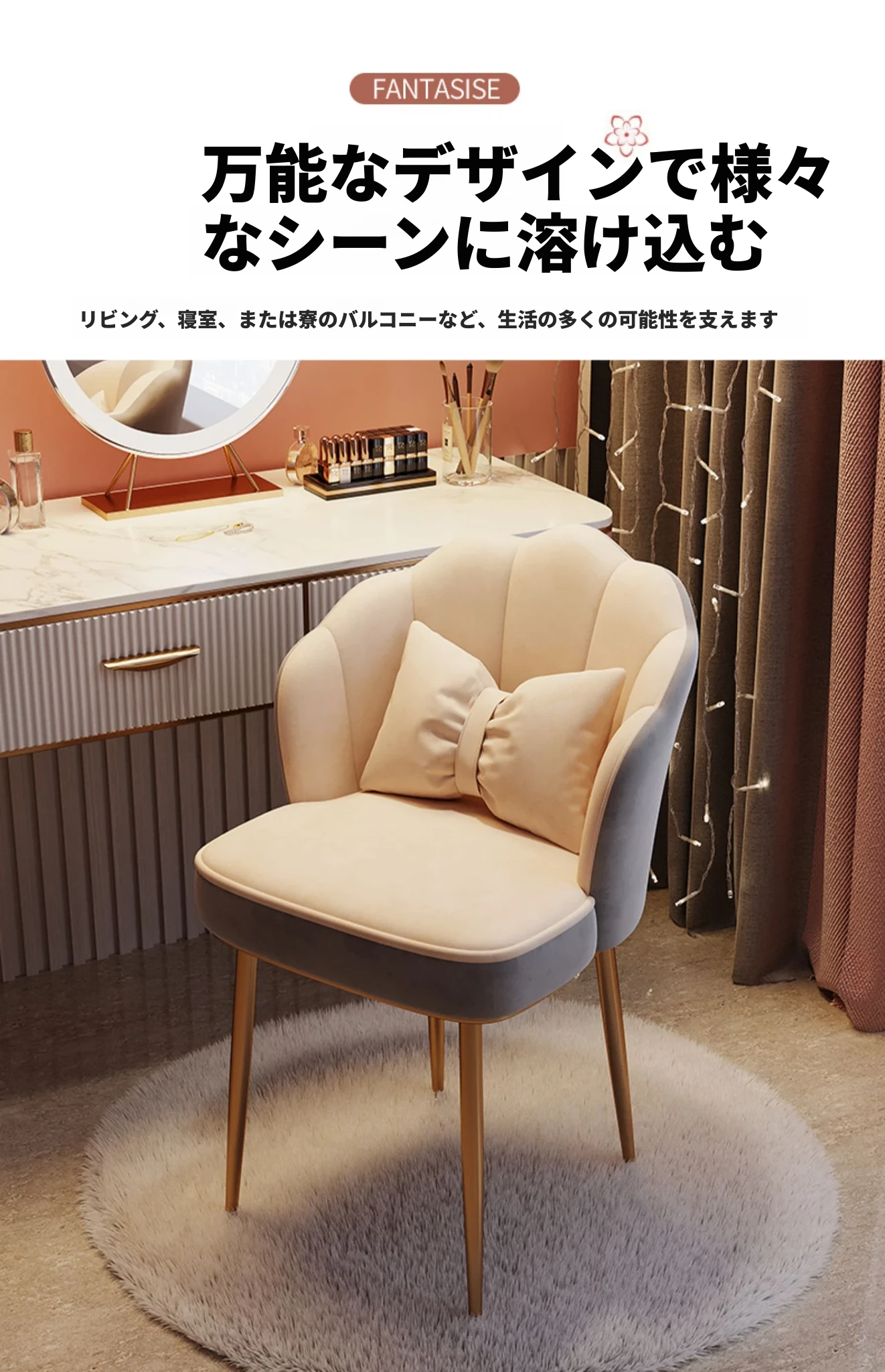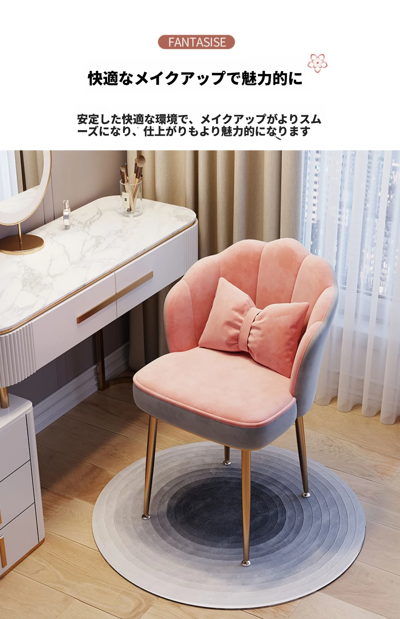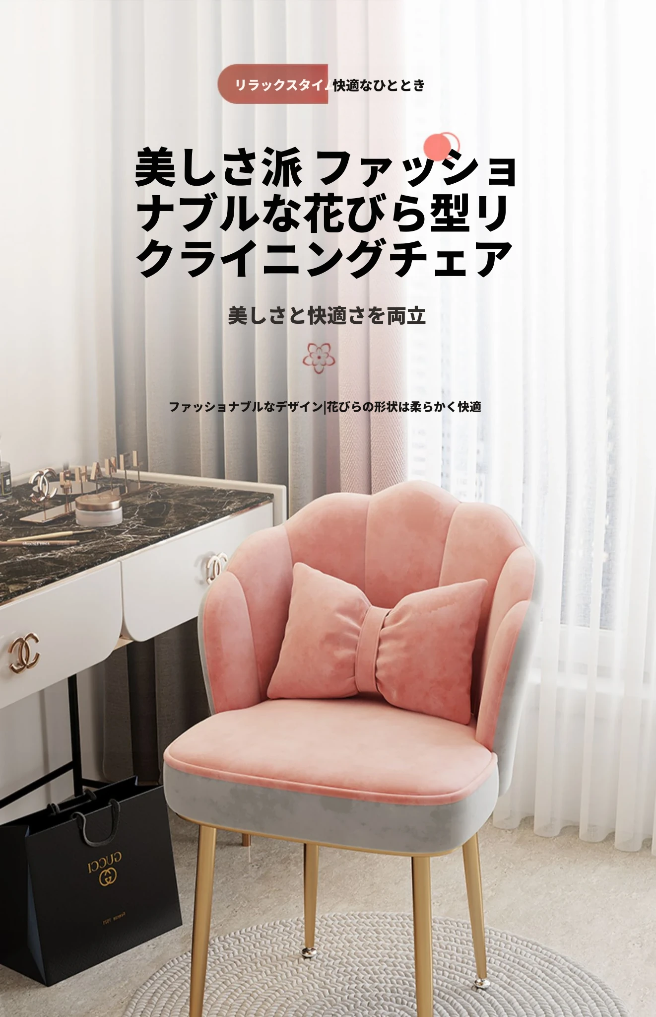 モダンでシンプルなインテリアにぴったり!女性のための寝室用ドレッシングテーブルチェア、背もたれ付きの軽やかなデザイン。ネイルアートにも最適な花びら型の化粧椅子で、毎日のビューティータイムを特別に演出します。